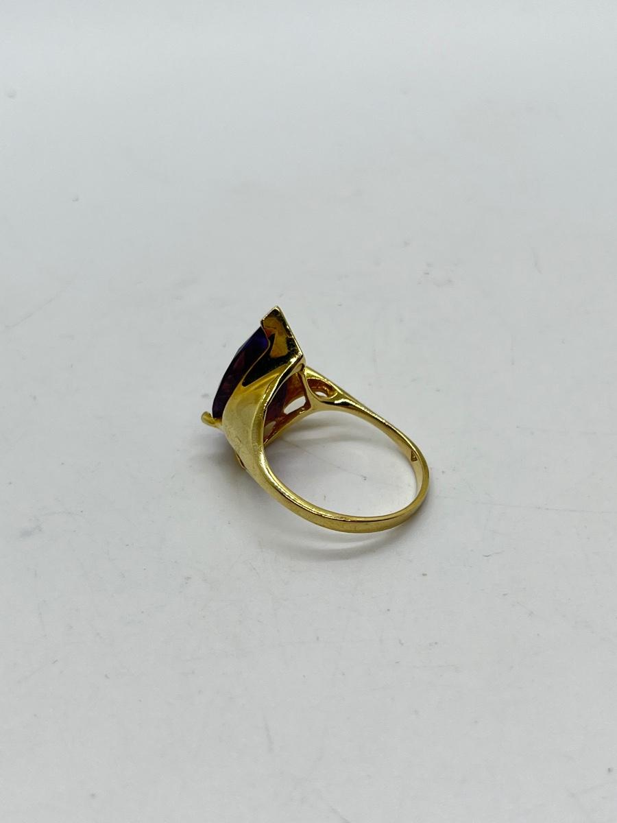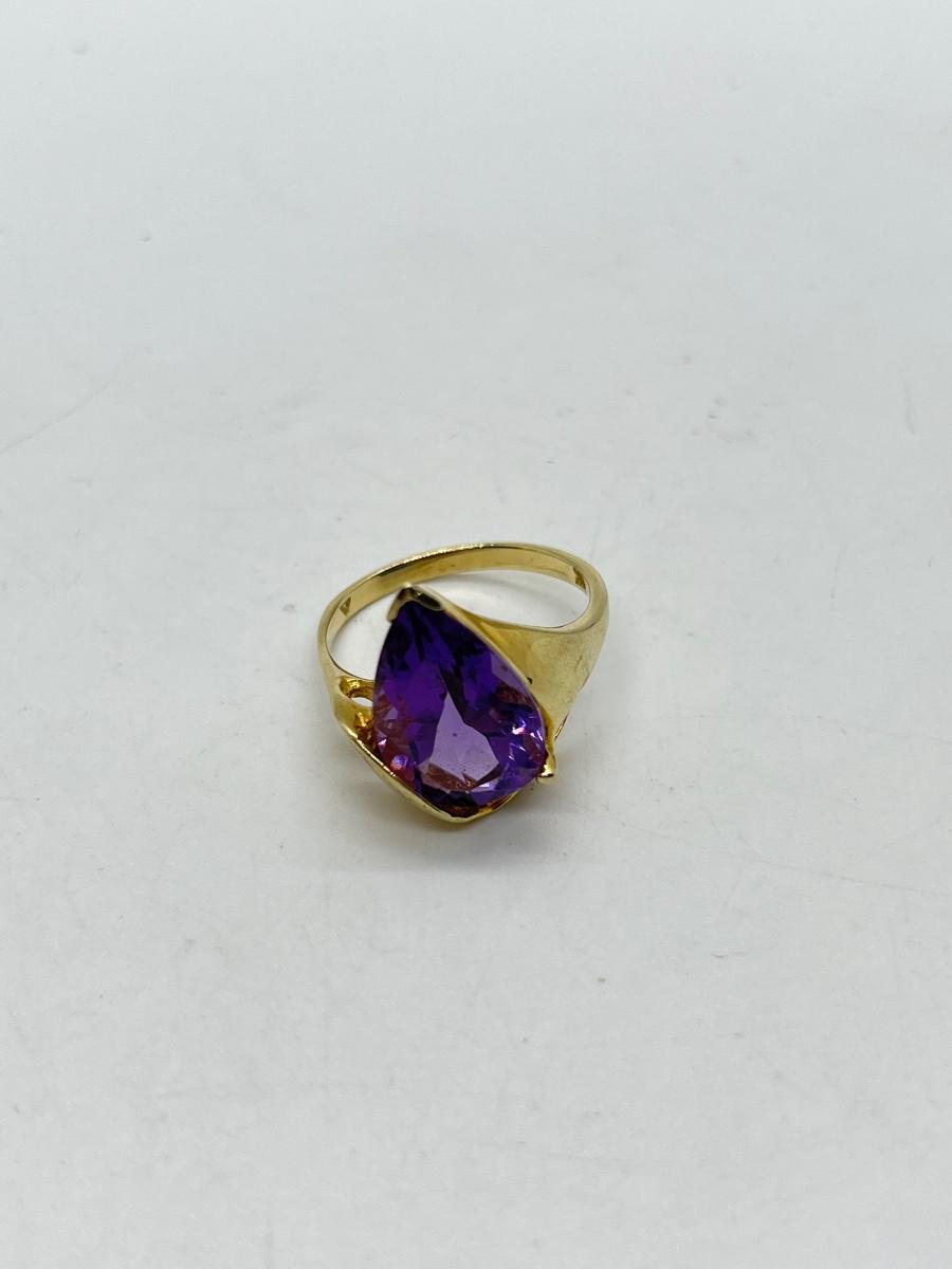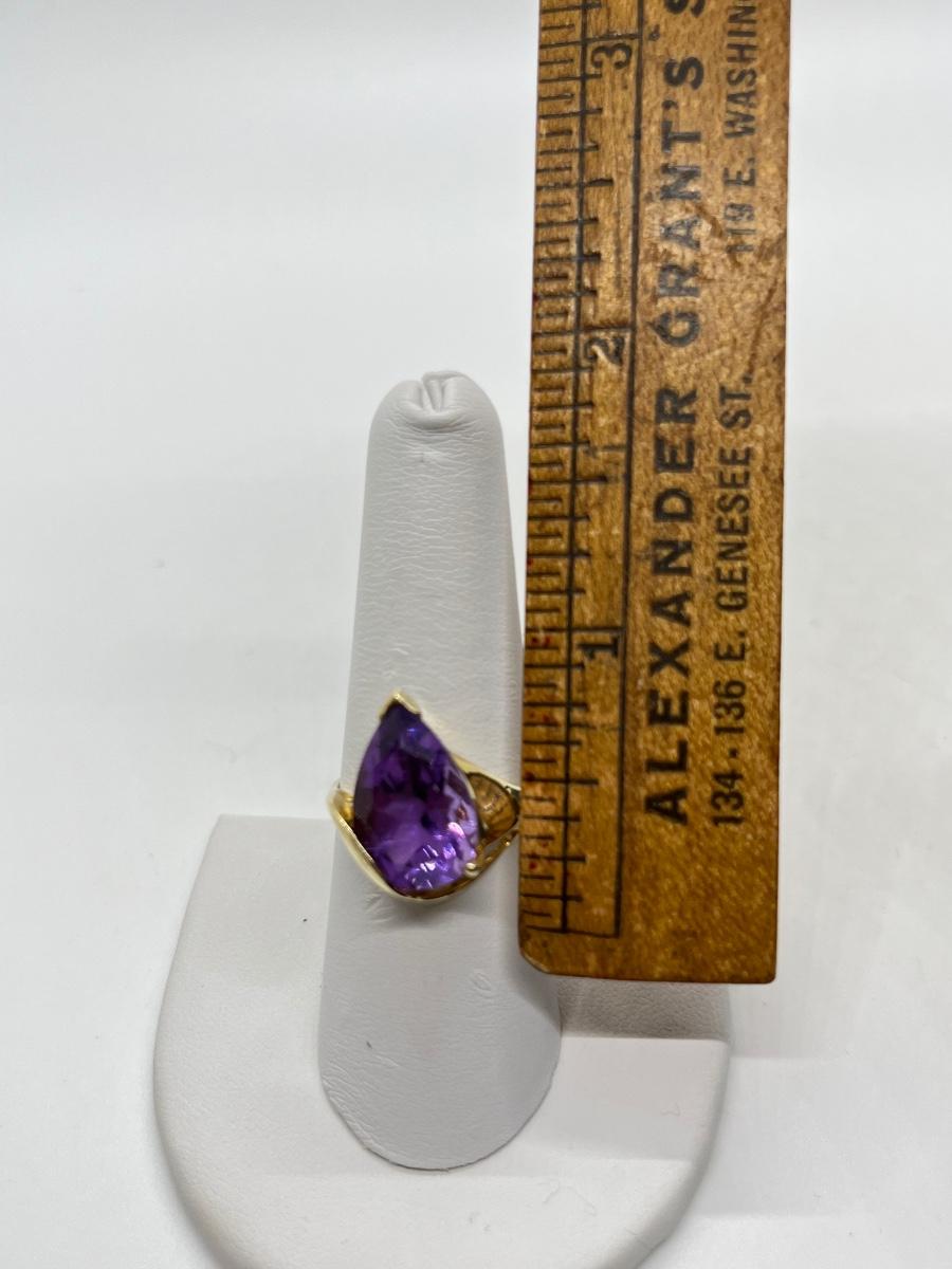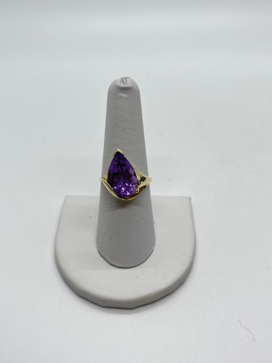 LOT 119: 10K Gold Amethyst Teardrop Size 8 Ring - 4.1 gtw