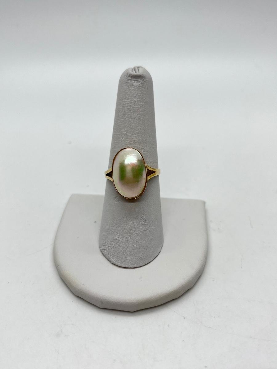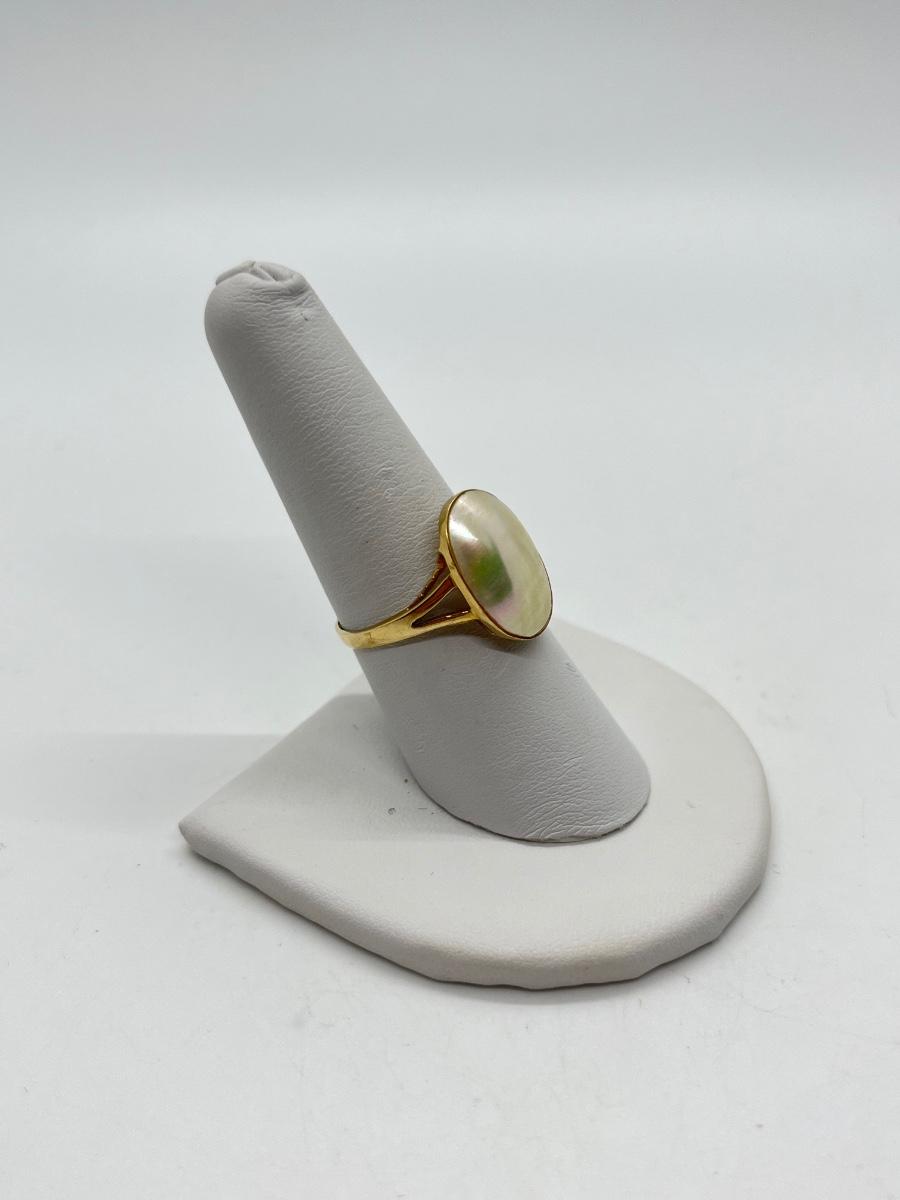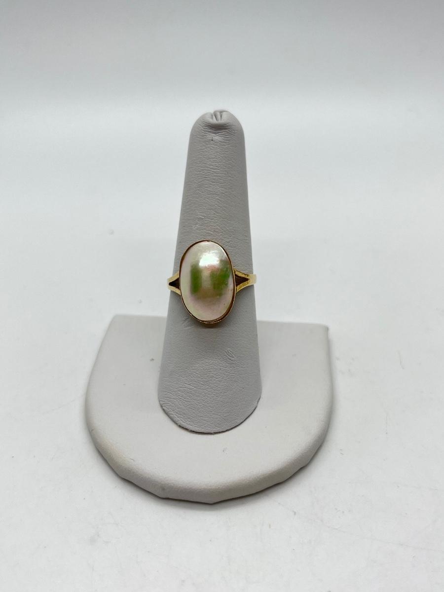 LOT 132: 14K Gold Mother Of Pearl Size 8 Ring - 2.16 gtw
