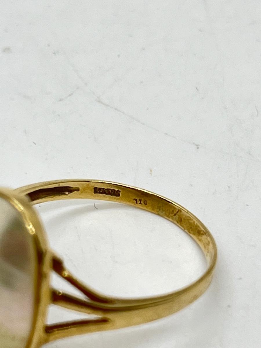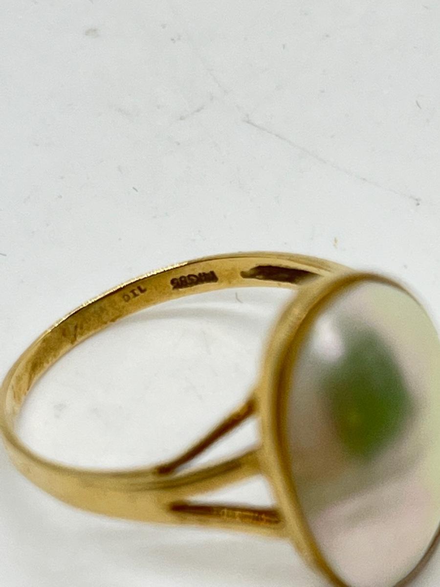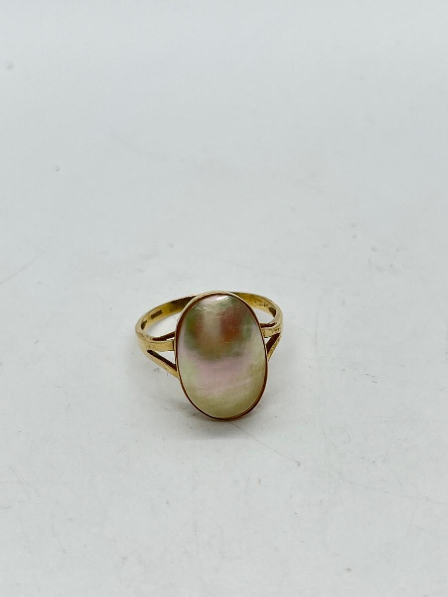 LOT 132: 14K Gold Mother Of Pearl Size 8 Ring - 2.16 gtw