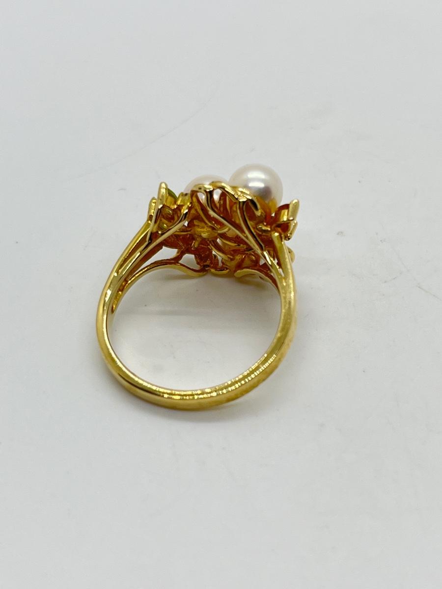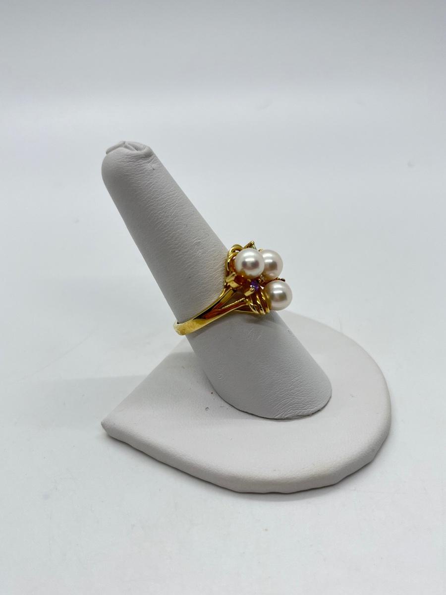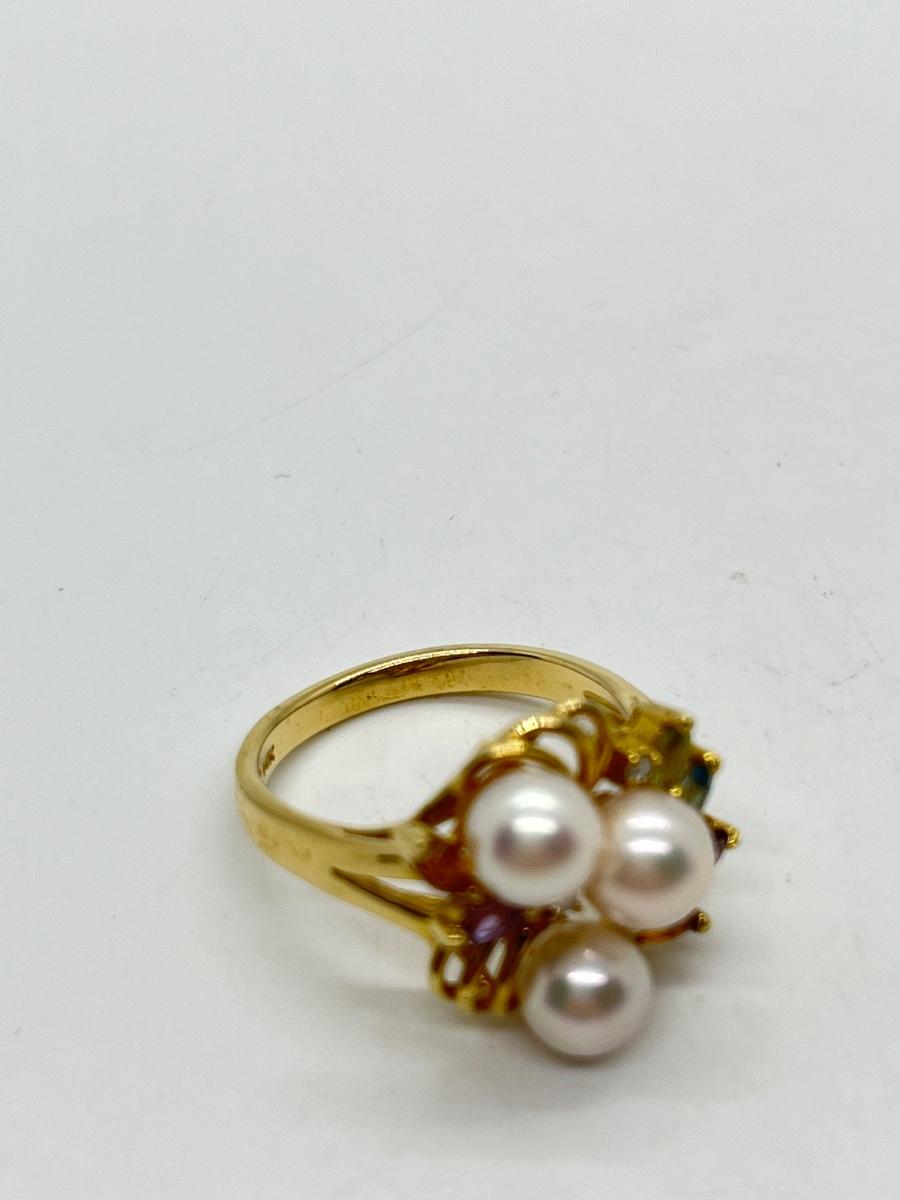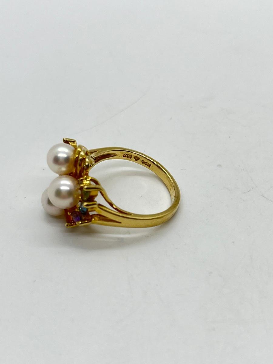 LOT 133: 14K Gold Marked "SIN"  Size 8 Ring with Cultured Pearls, Diamonds, Amethyst, Citrine, Peridot, Blue Topaz
