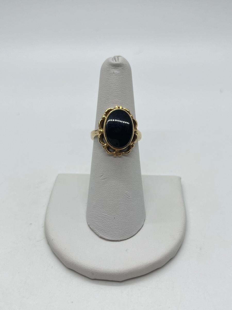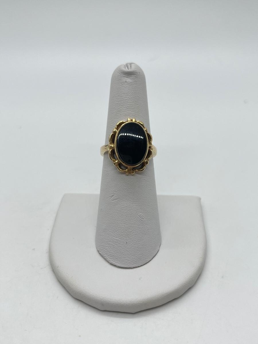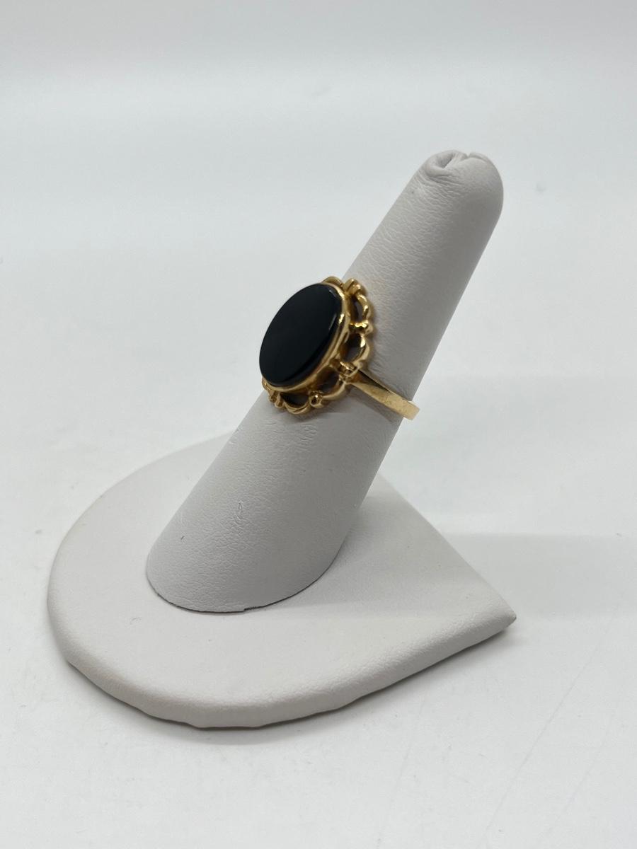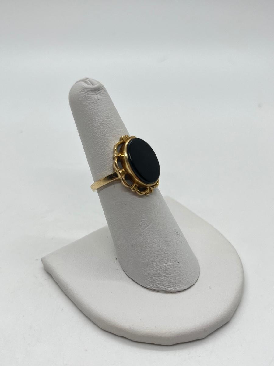 LOT 137: 14K Gold Black Onyx Size 7 Ring - 4.12 gtw