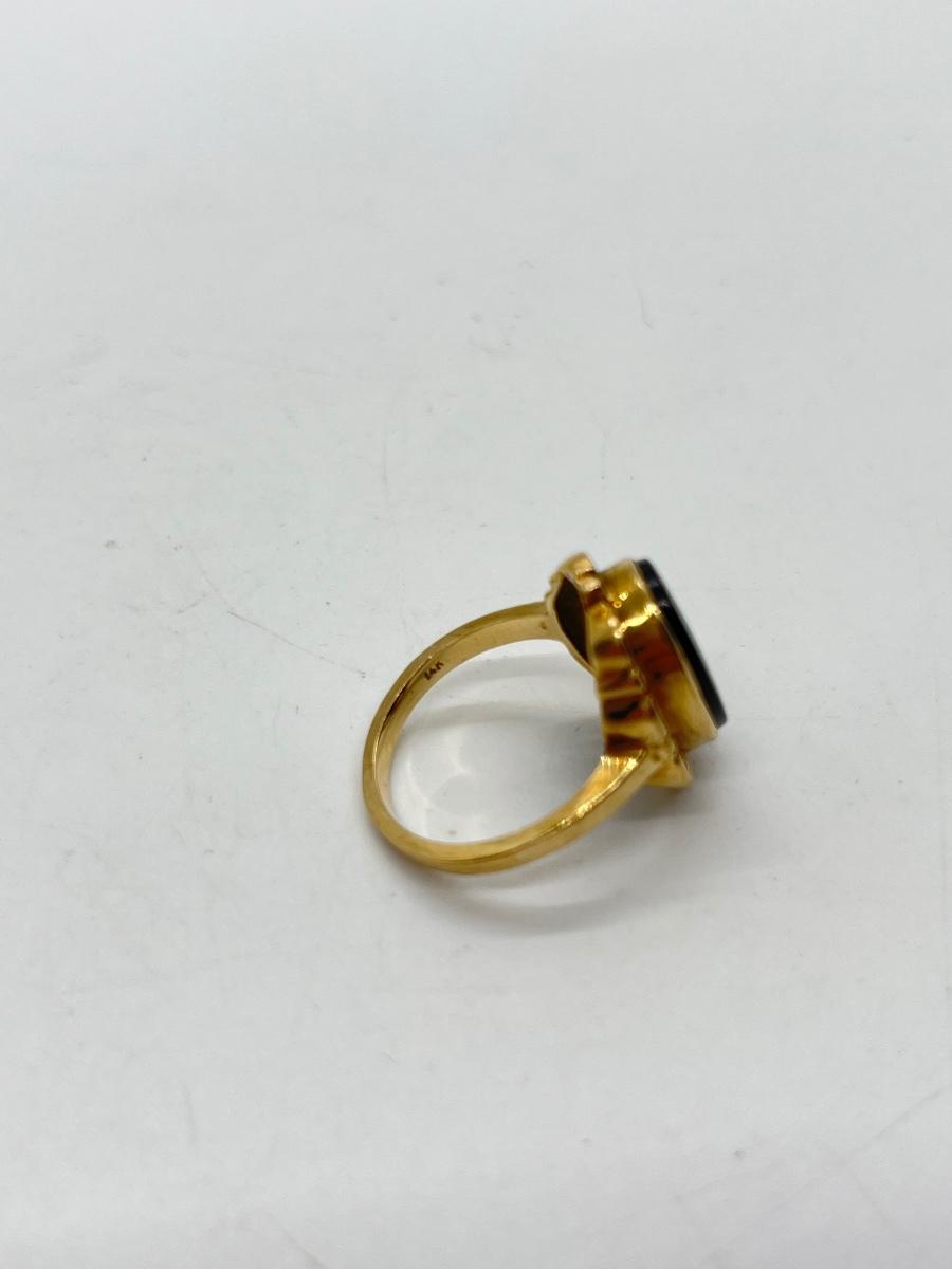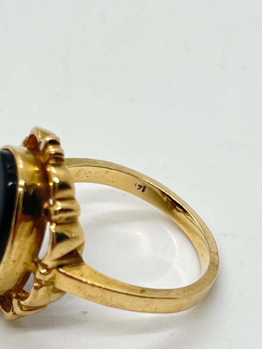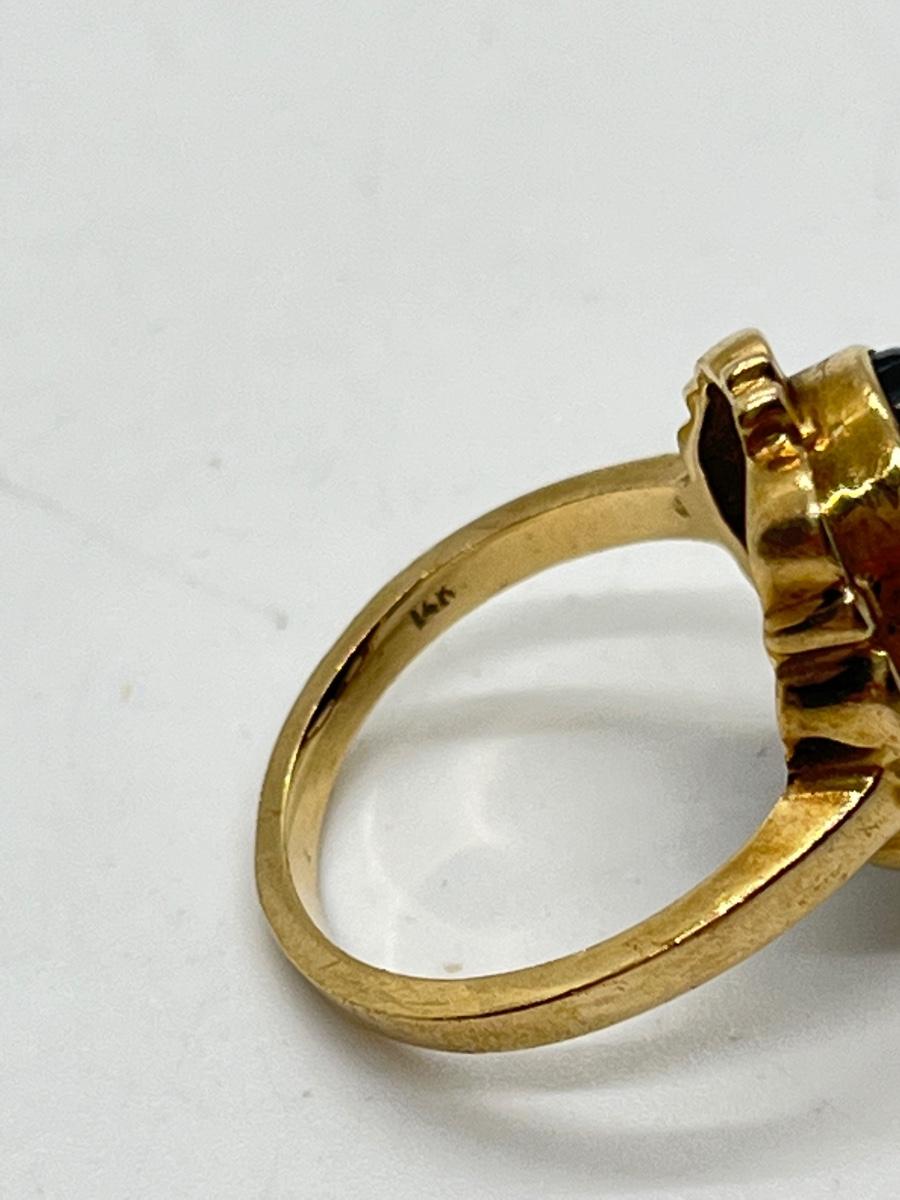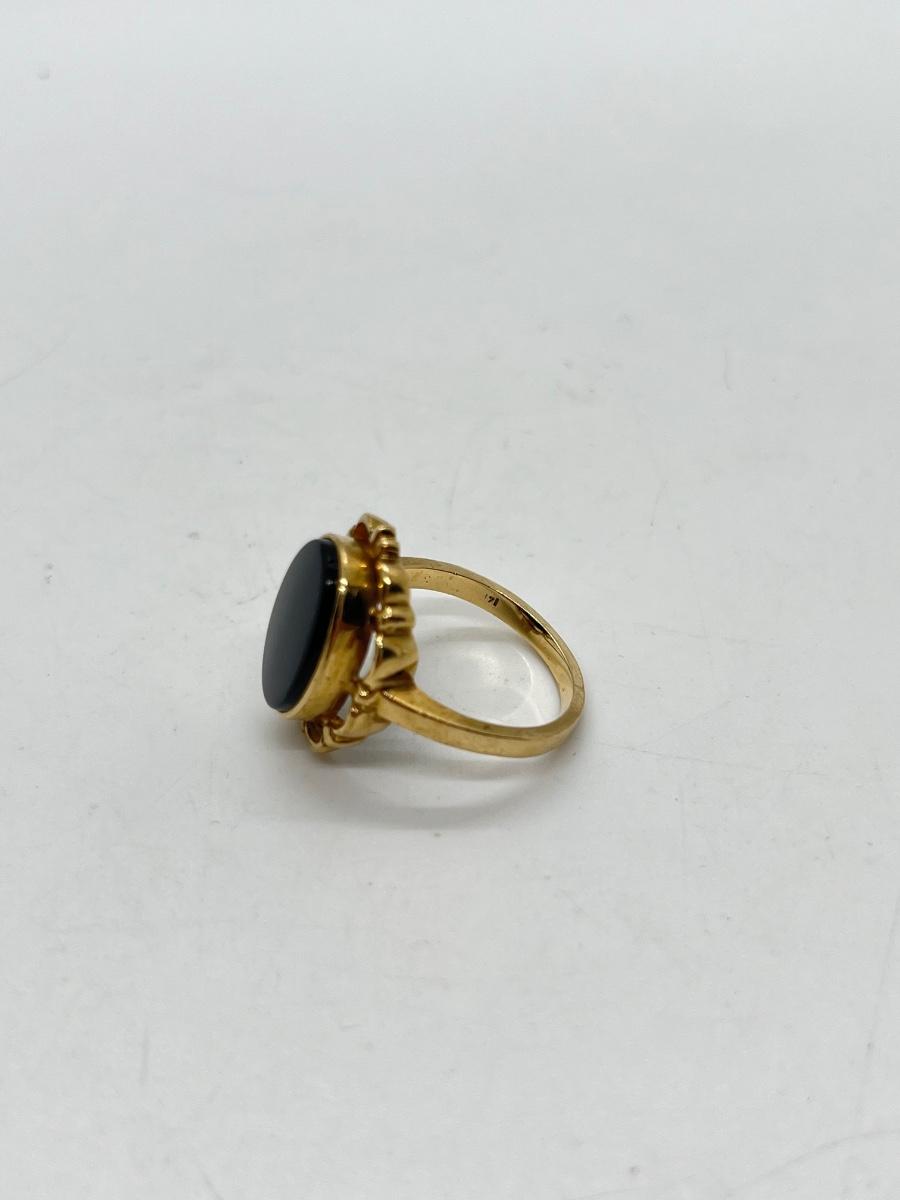LOT 137: 14K Gold Black Onyx Size 7 Ring - 4.12 gtw