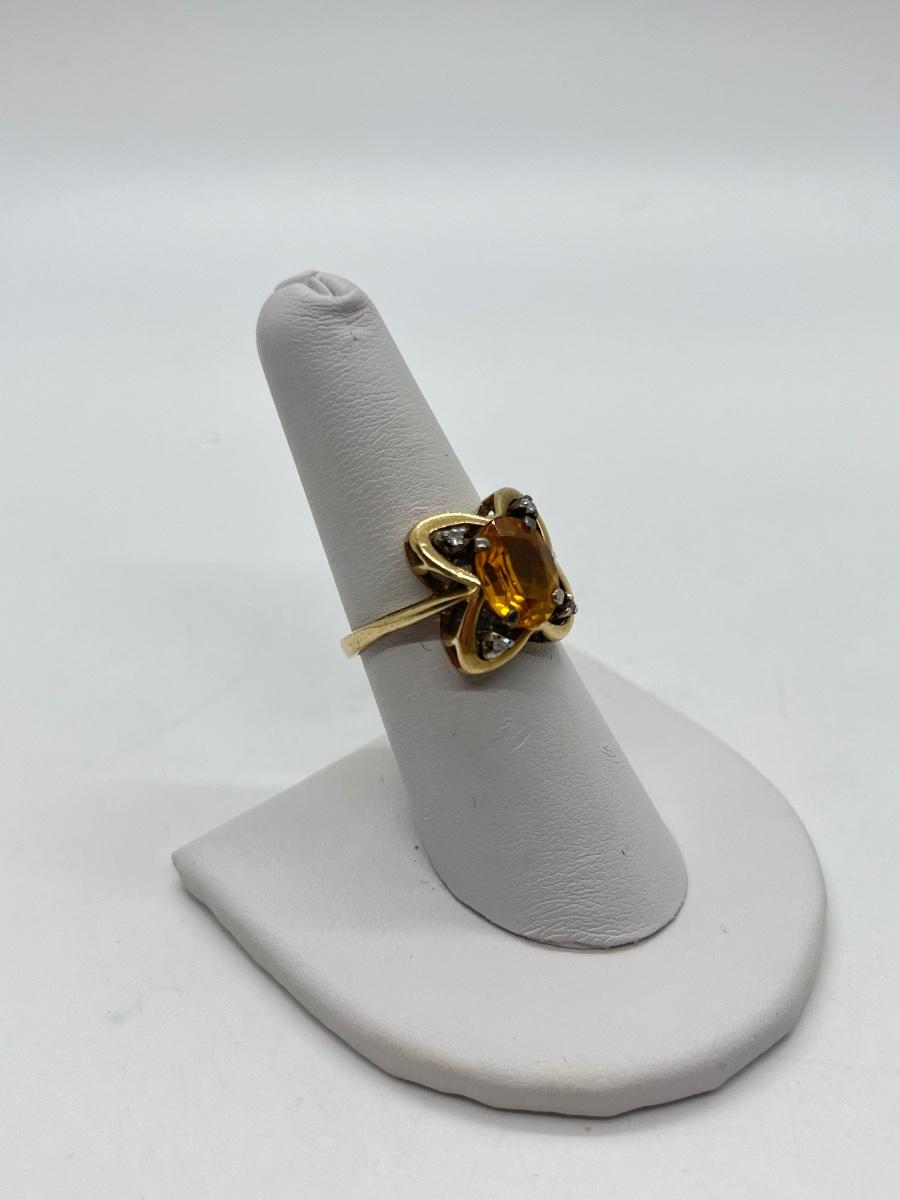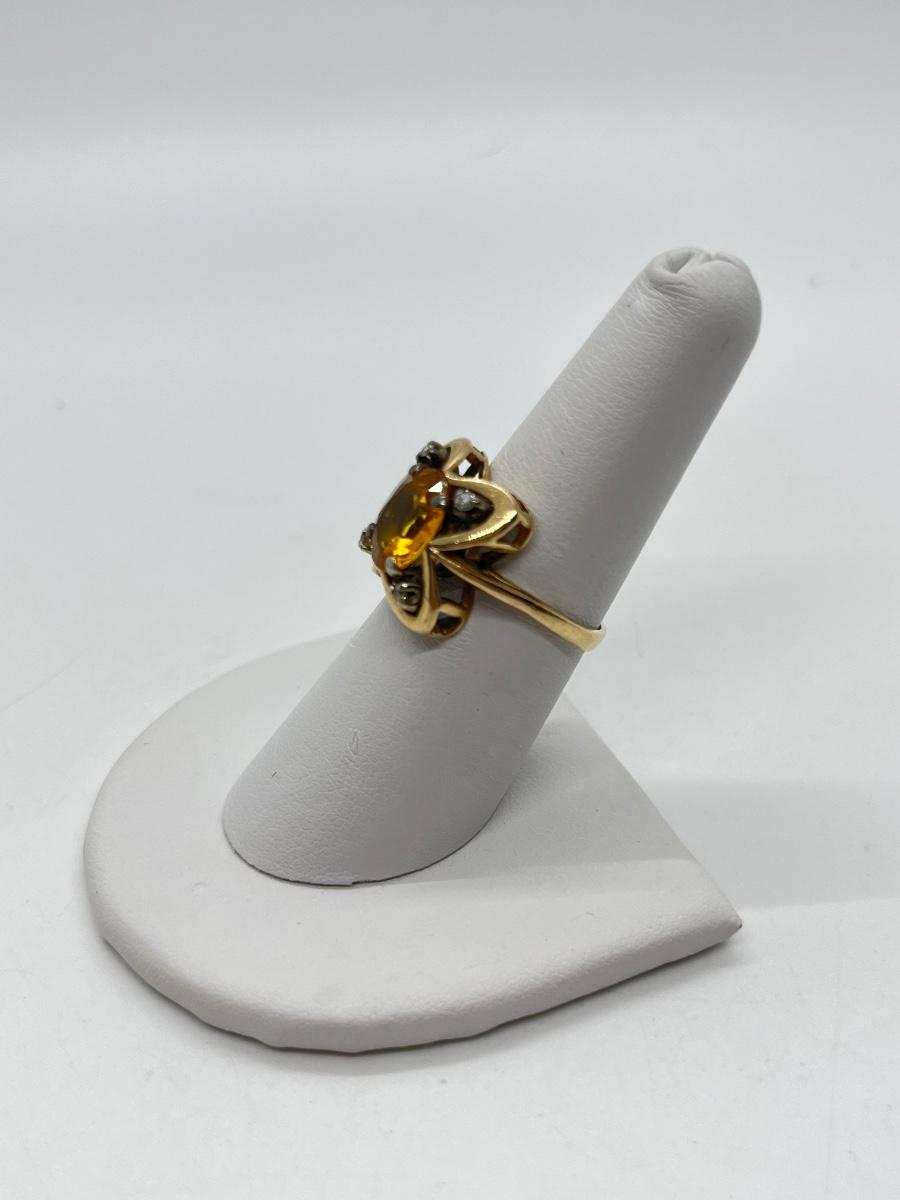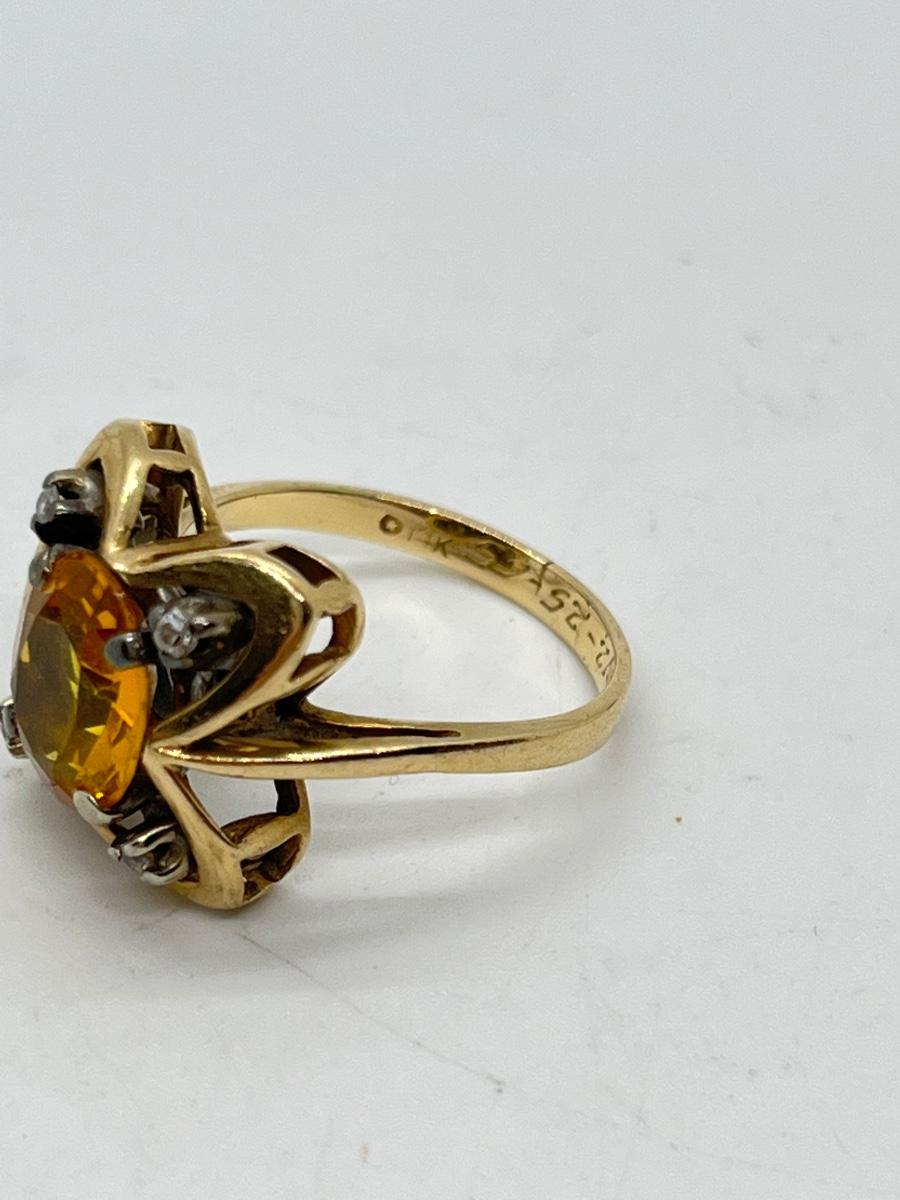 LOT 138: 14K Gold Citrine Diamond Size 7 Ring - 4.95 gtw