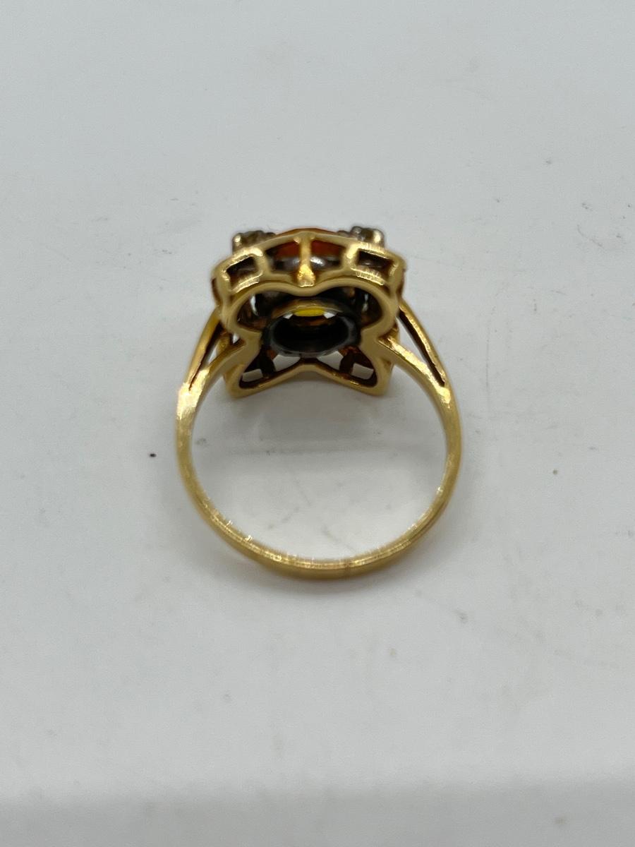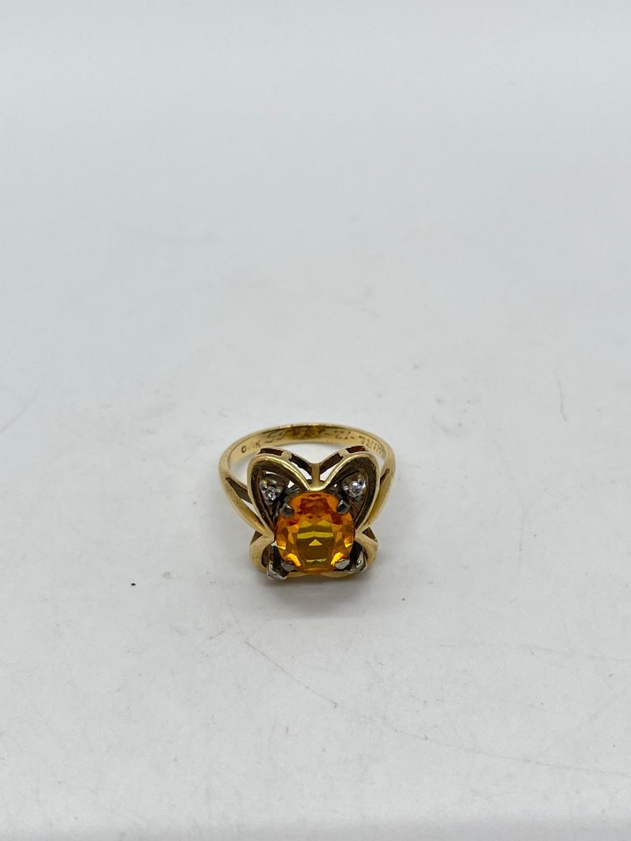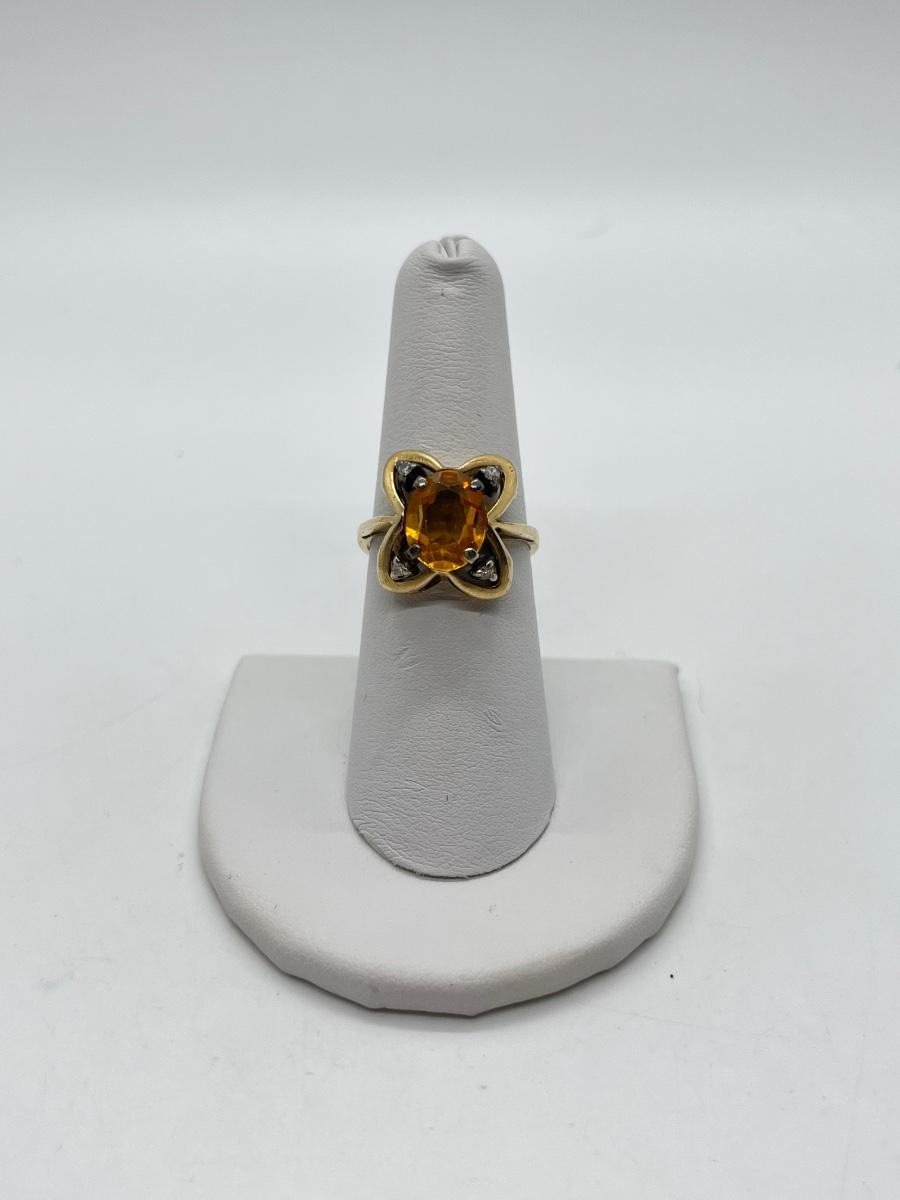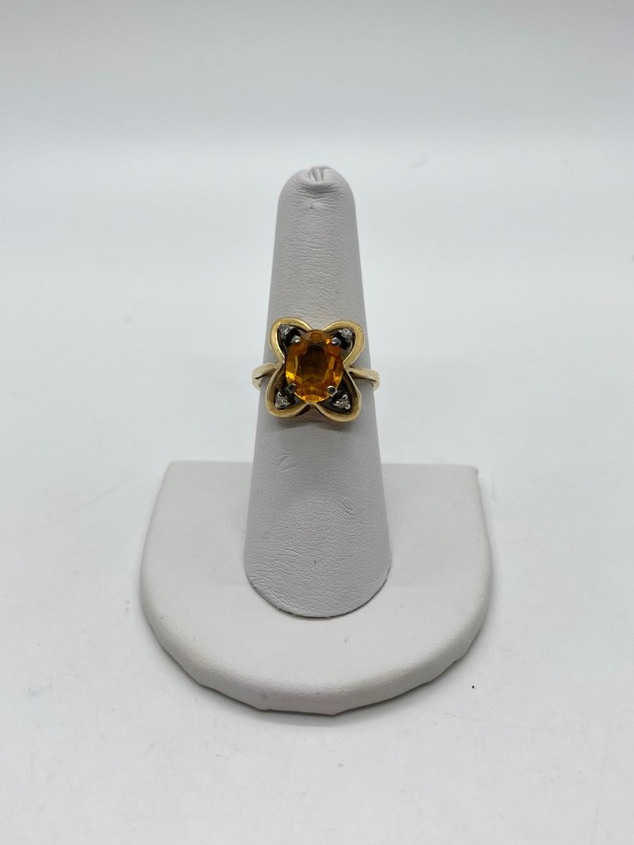 LOT 138: 14K Gold Citrine Diamond Size 7 Ring - 4.95 gtw