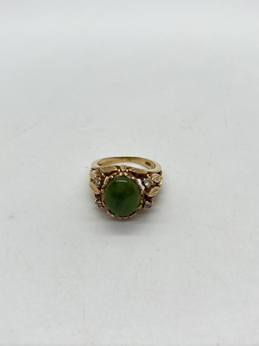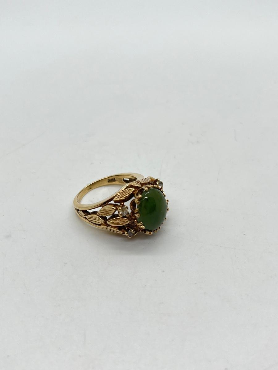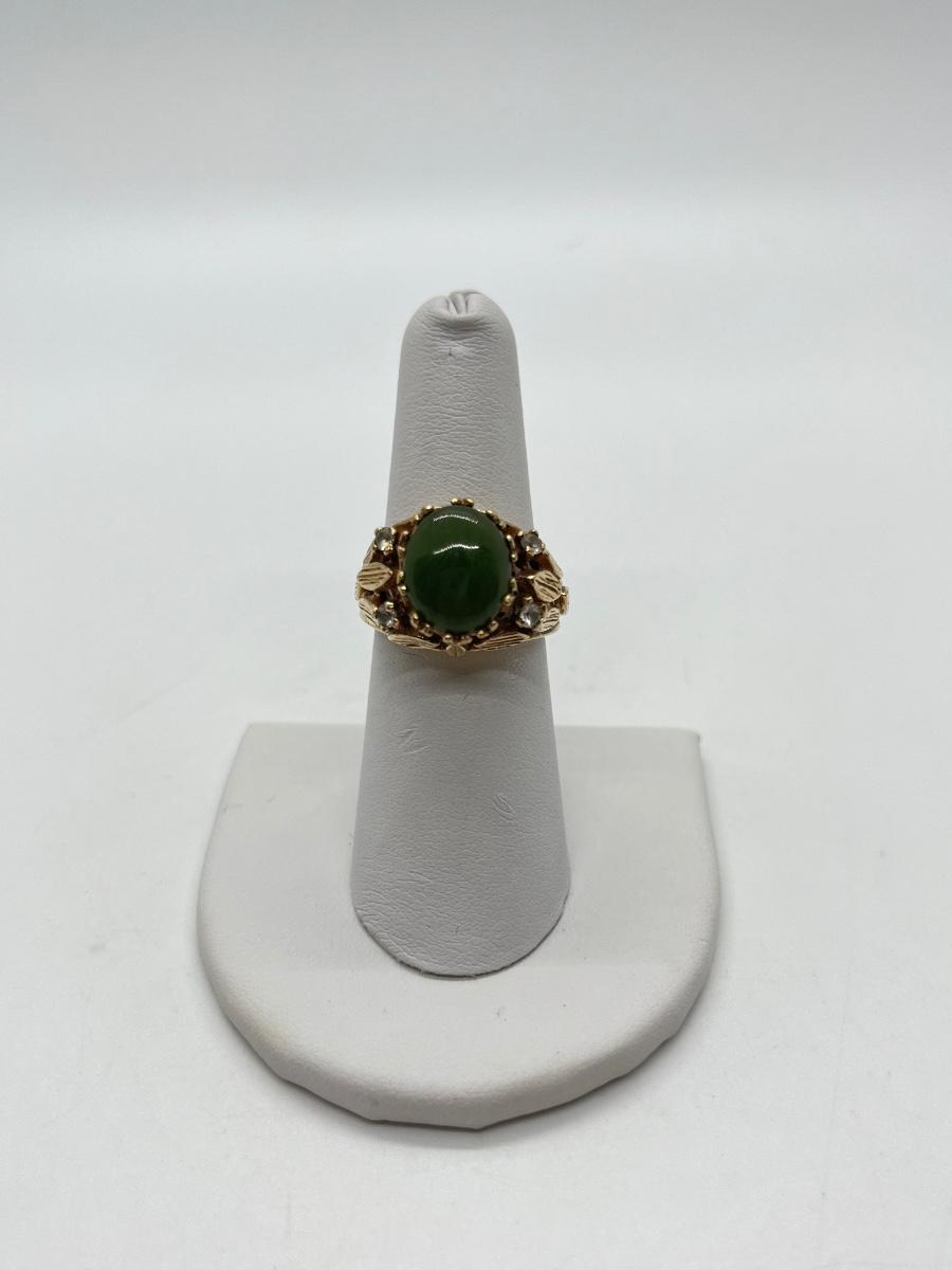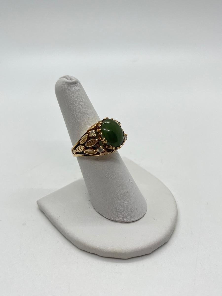 LOT 148: 14K Gold - Acid Tested - Jade and Diamond Size 7 Ring - 7.05 gtw
