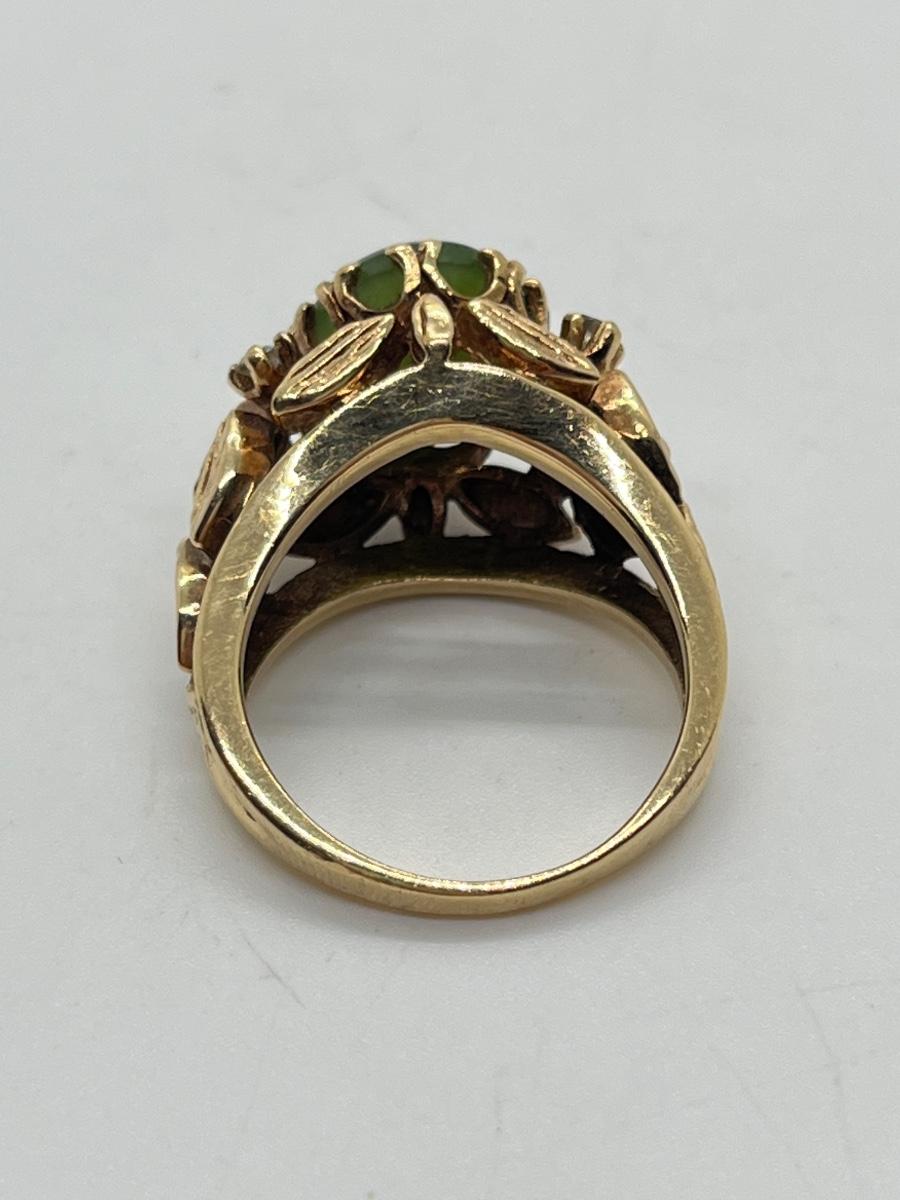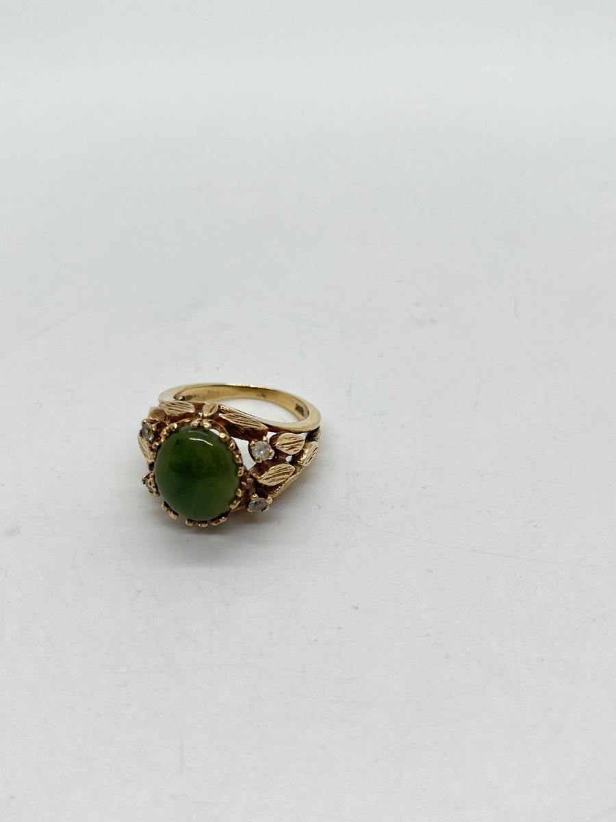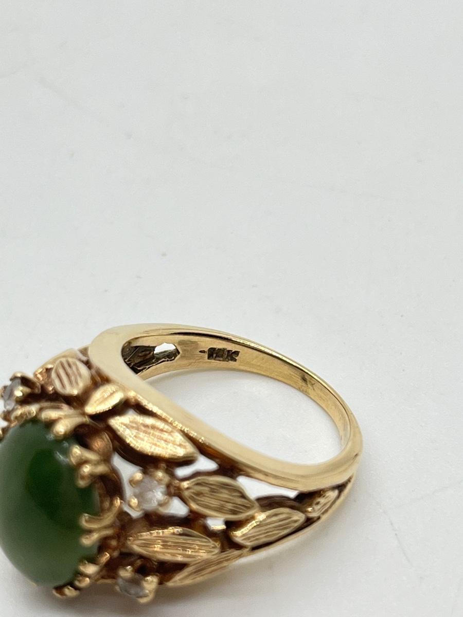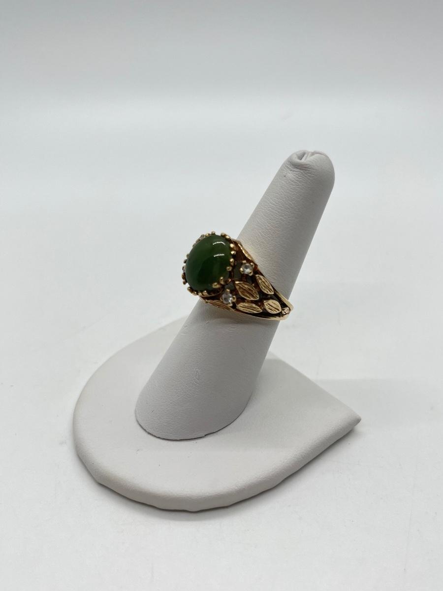 LOT 148: 14K Gold - Acid Tested - Jade and Diamond Size 7 Ring - 7.05 gtw