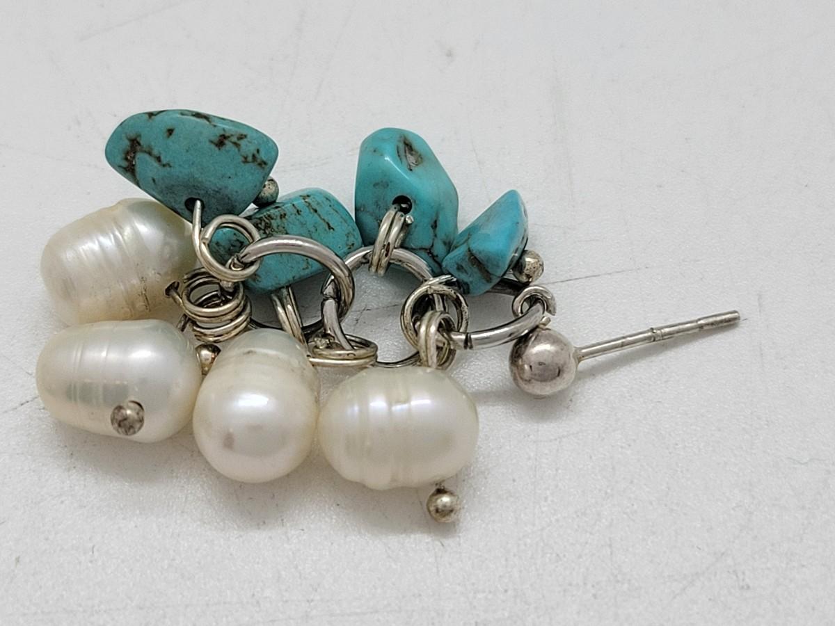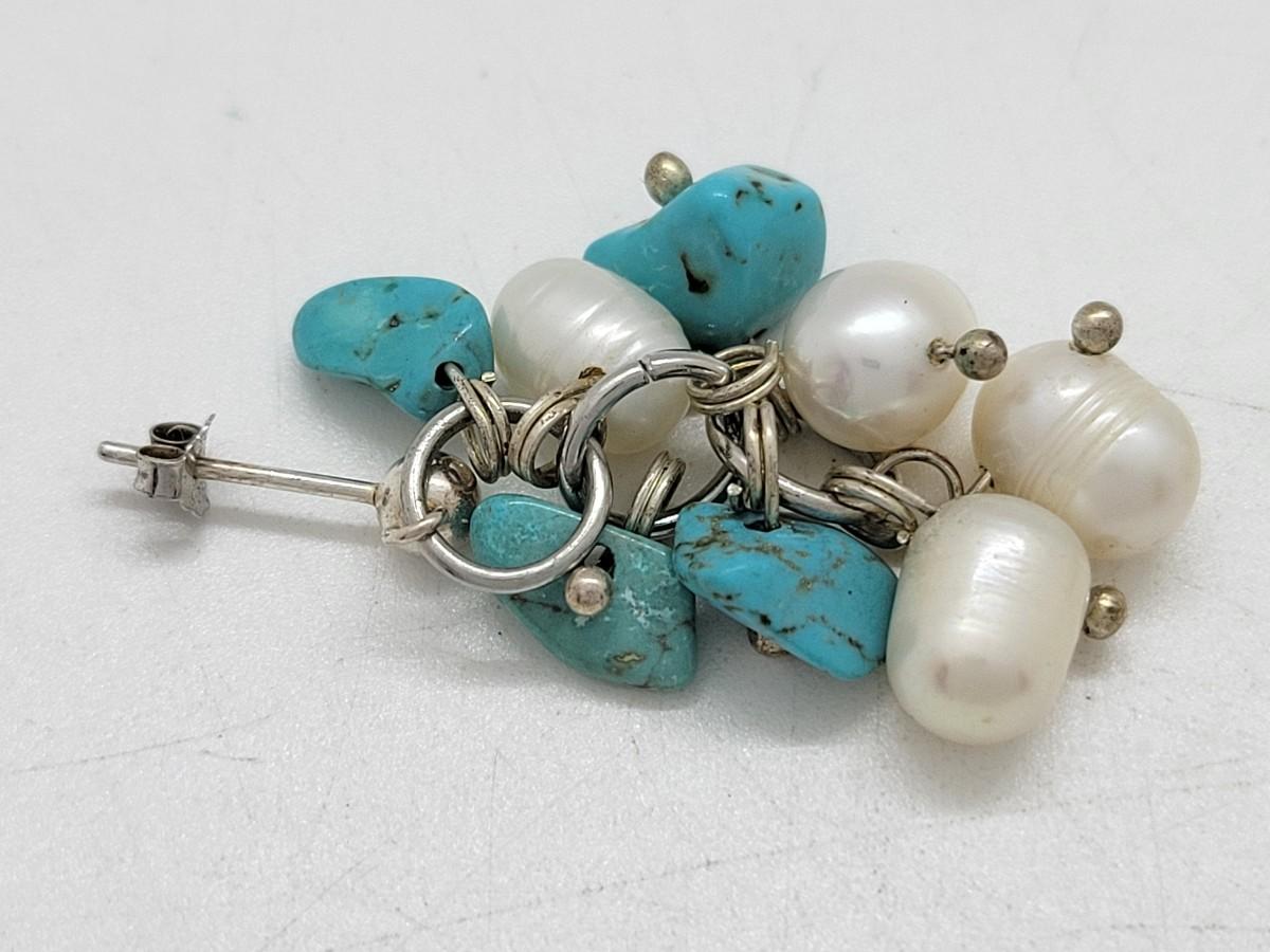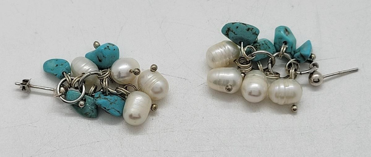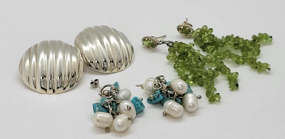 Taxco 925 Button Earrings, Costume Turquoise Nugget and Faux Pearl Dangles, & Peridot/ 925 Earrings