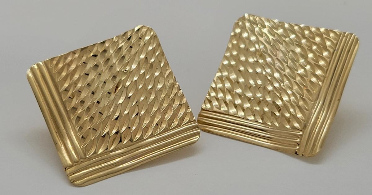 LOT 13: 14K Yellow Gold Diamond Cut Pierced Earrings - 2.8 grams