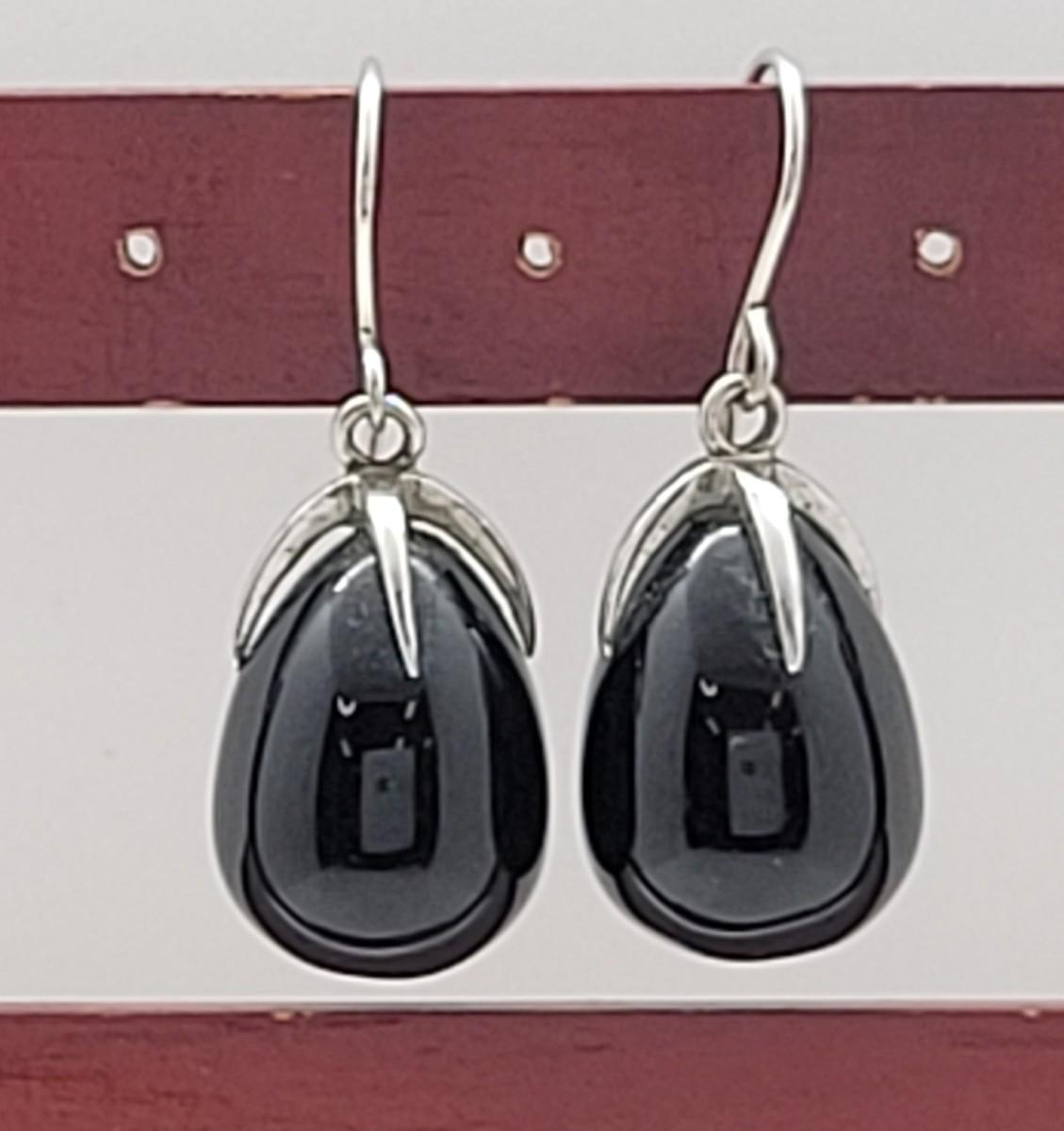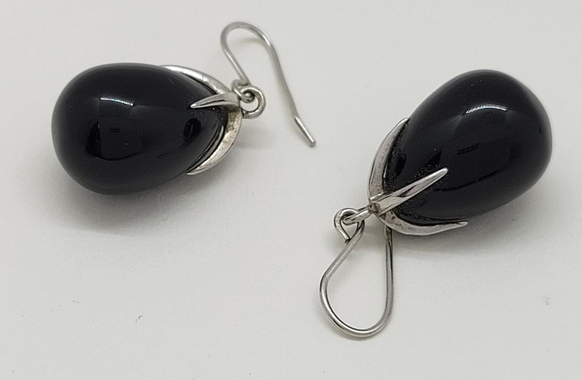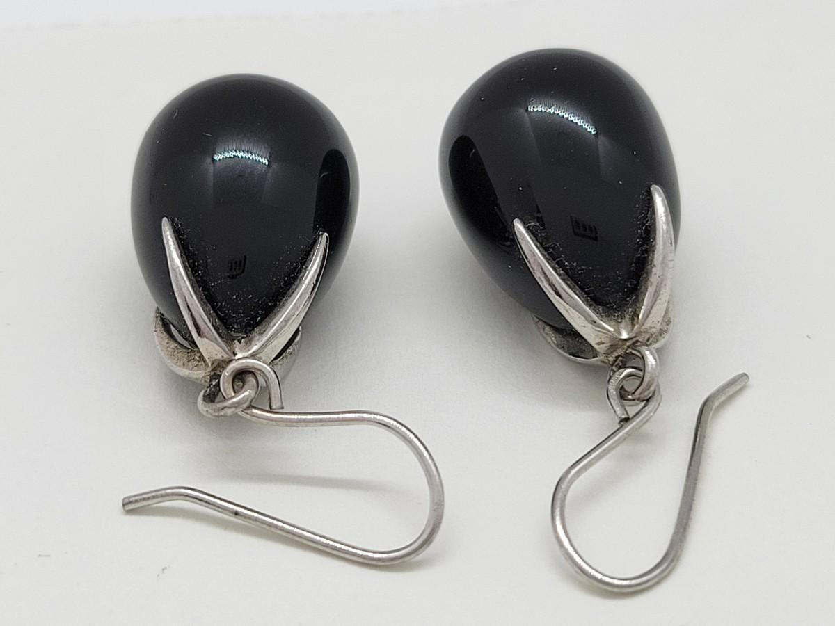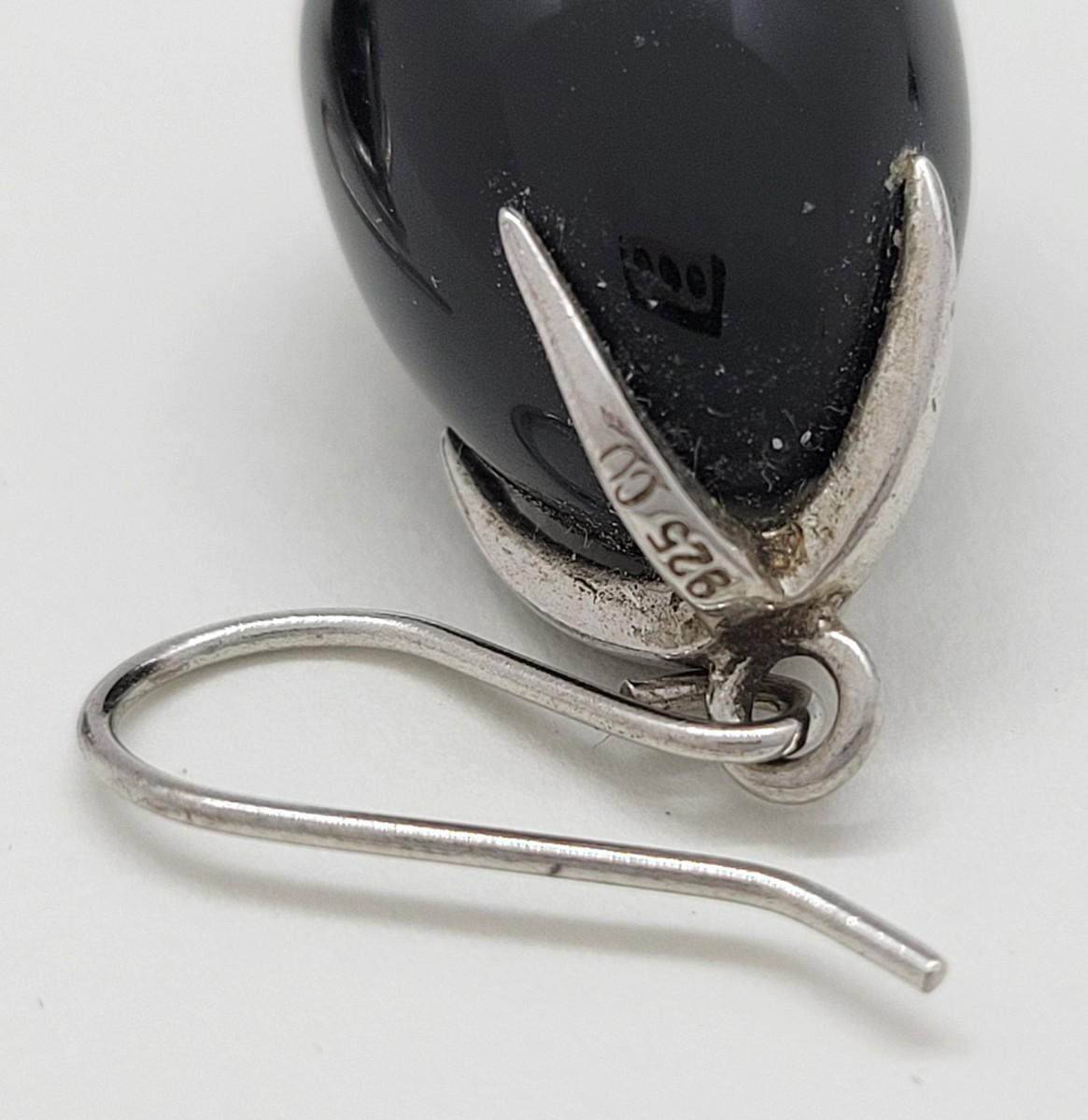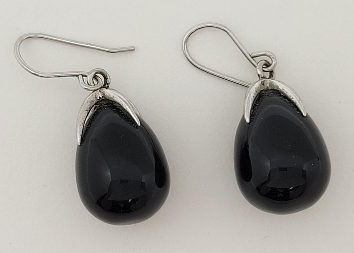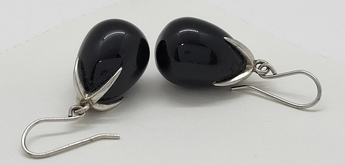 LOT 18: Sterling Silver 925 PE Dangle Black Onyx Teardrop Earrings
