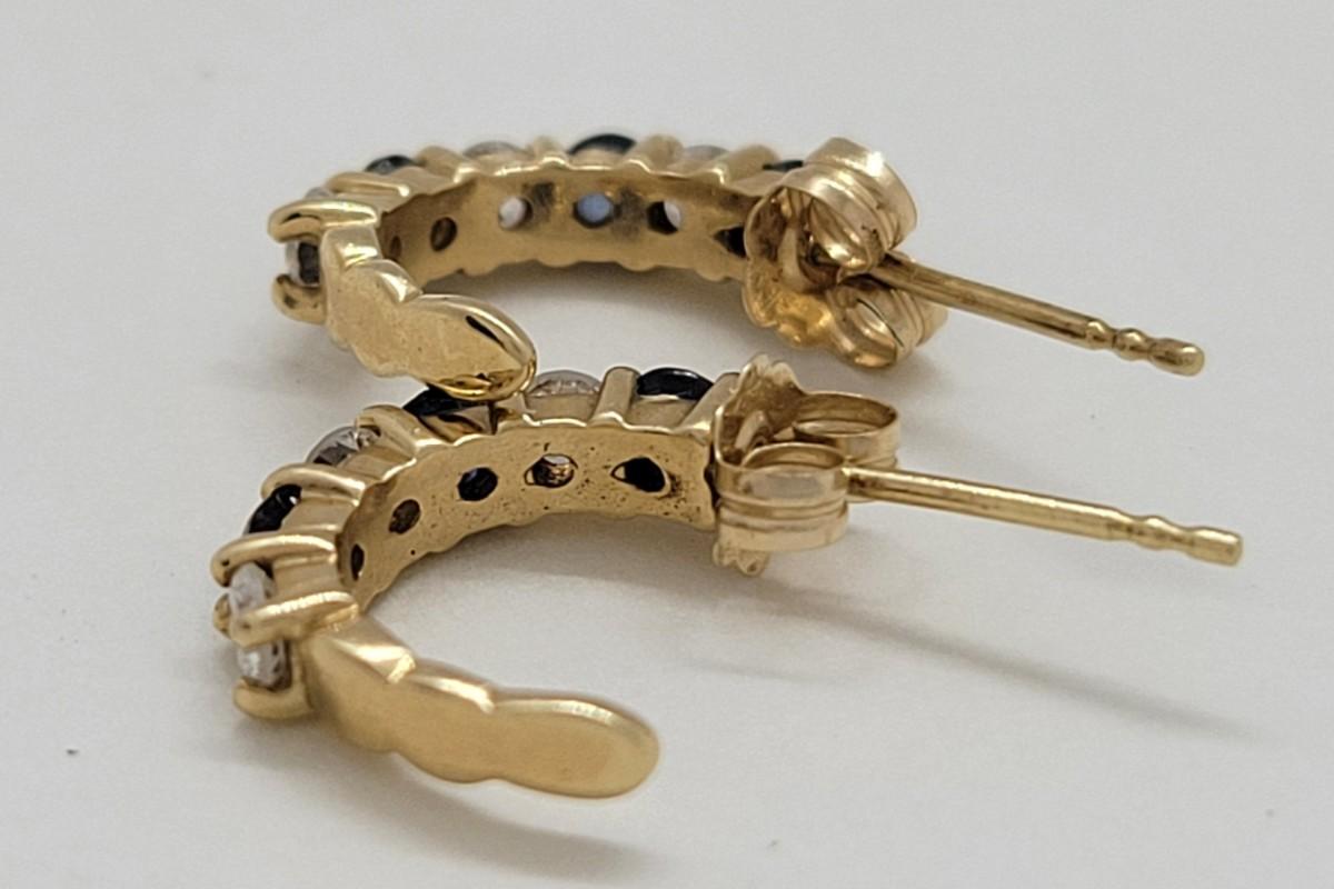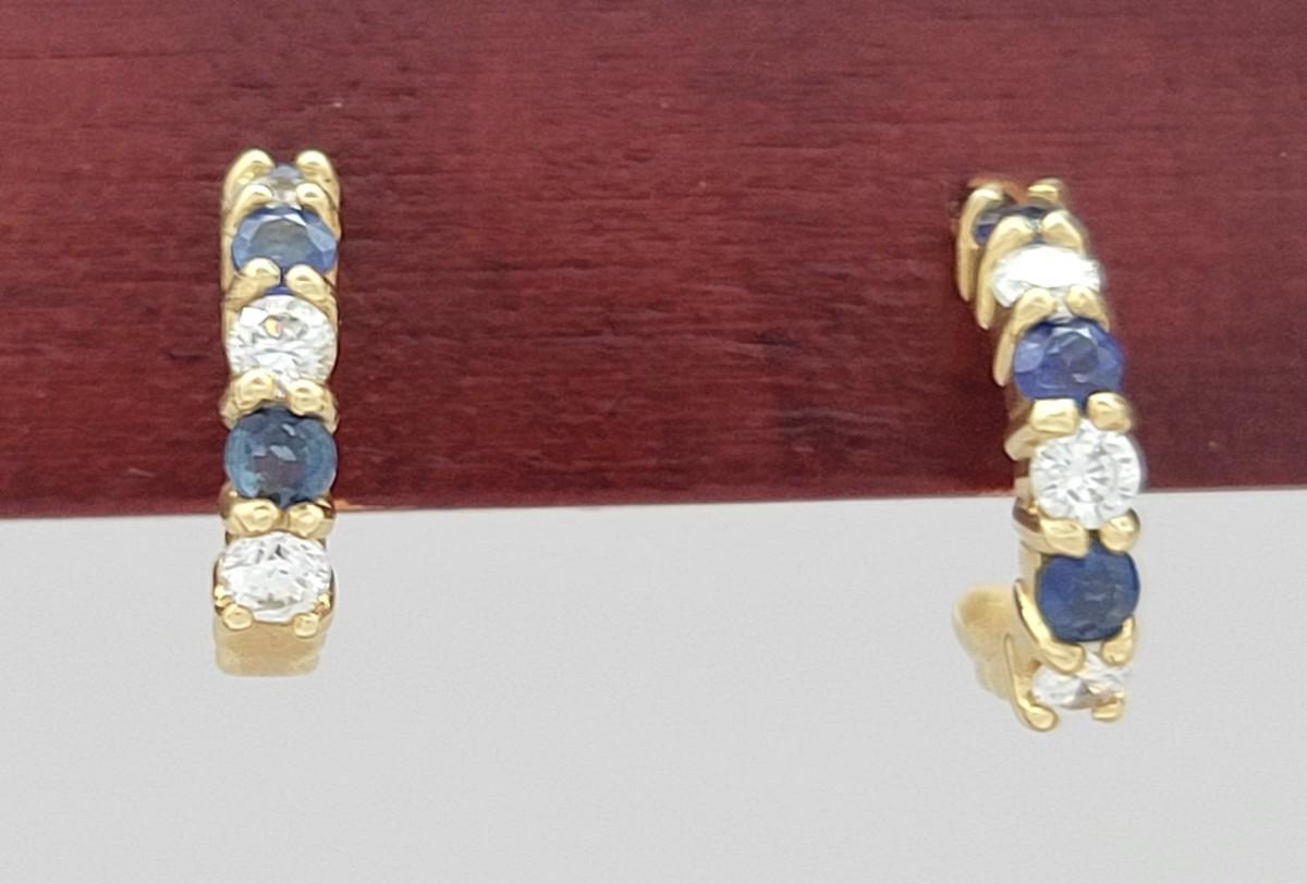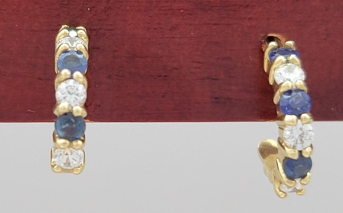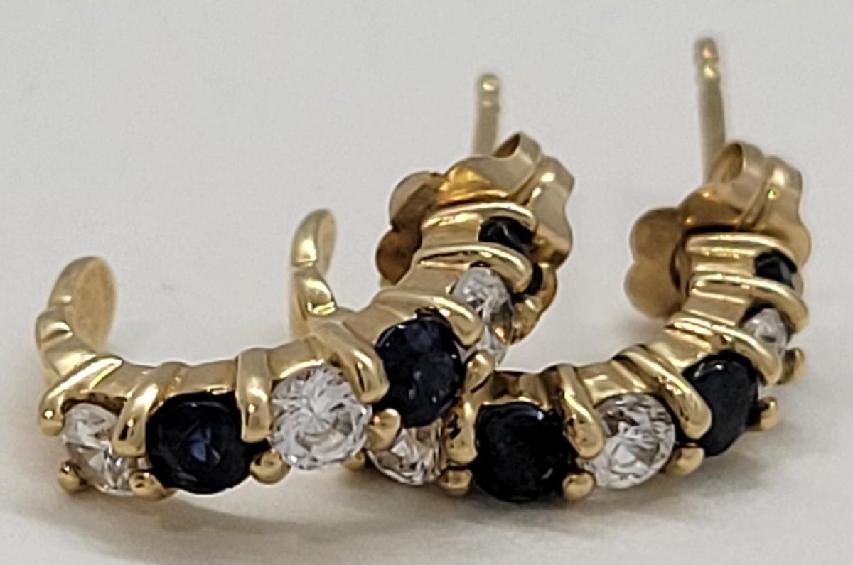 LOT 19: 14K Gold JCM Diamond & Sapphire 1/2 Hoop Earrings - 1.6 gtw