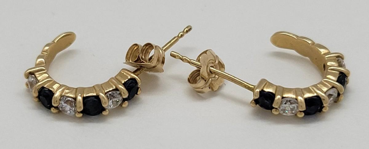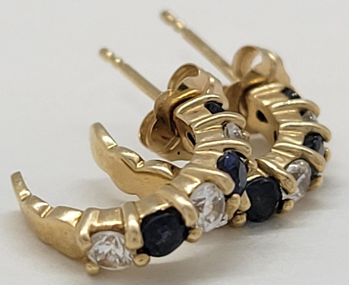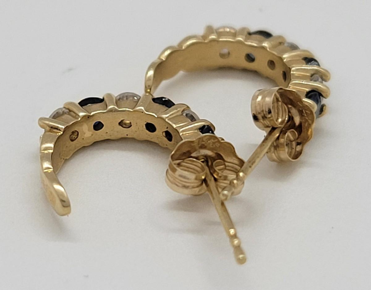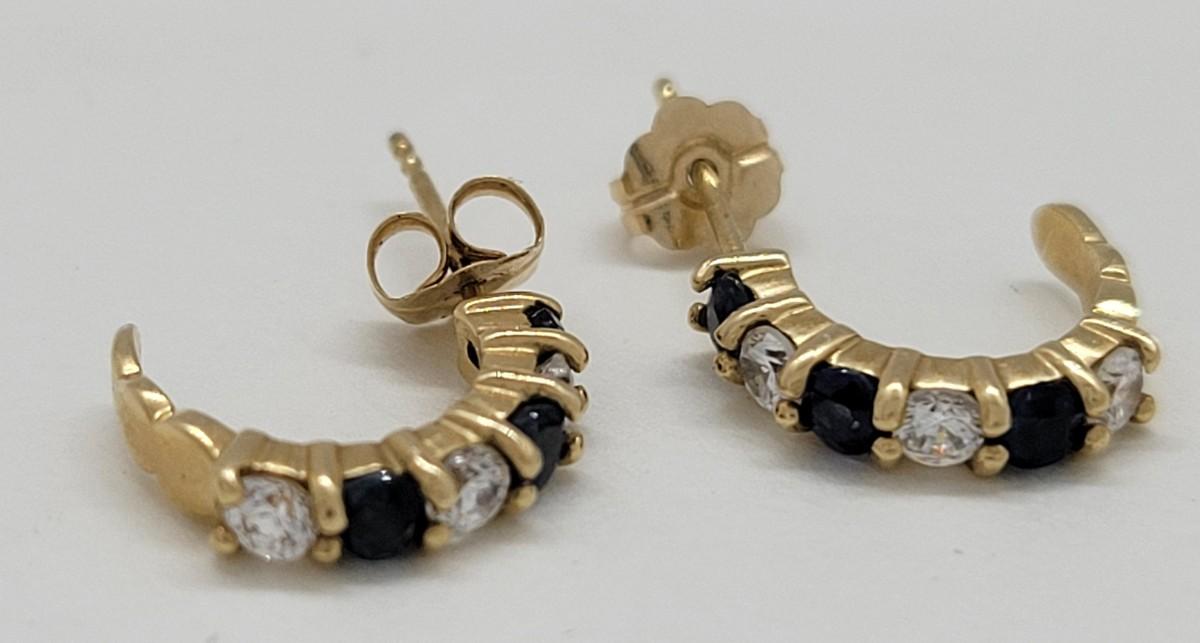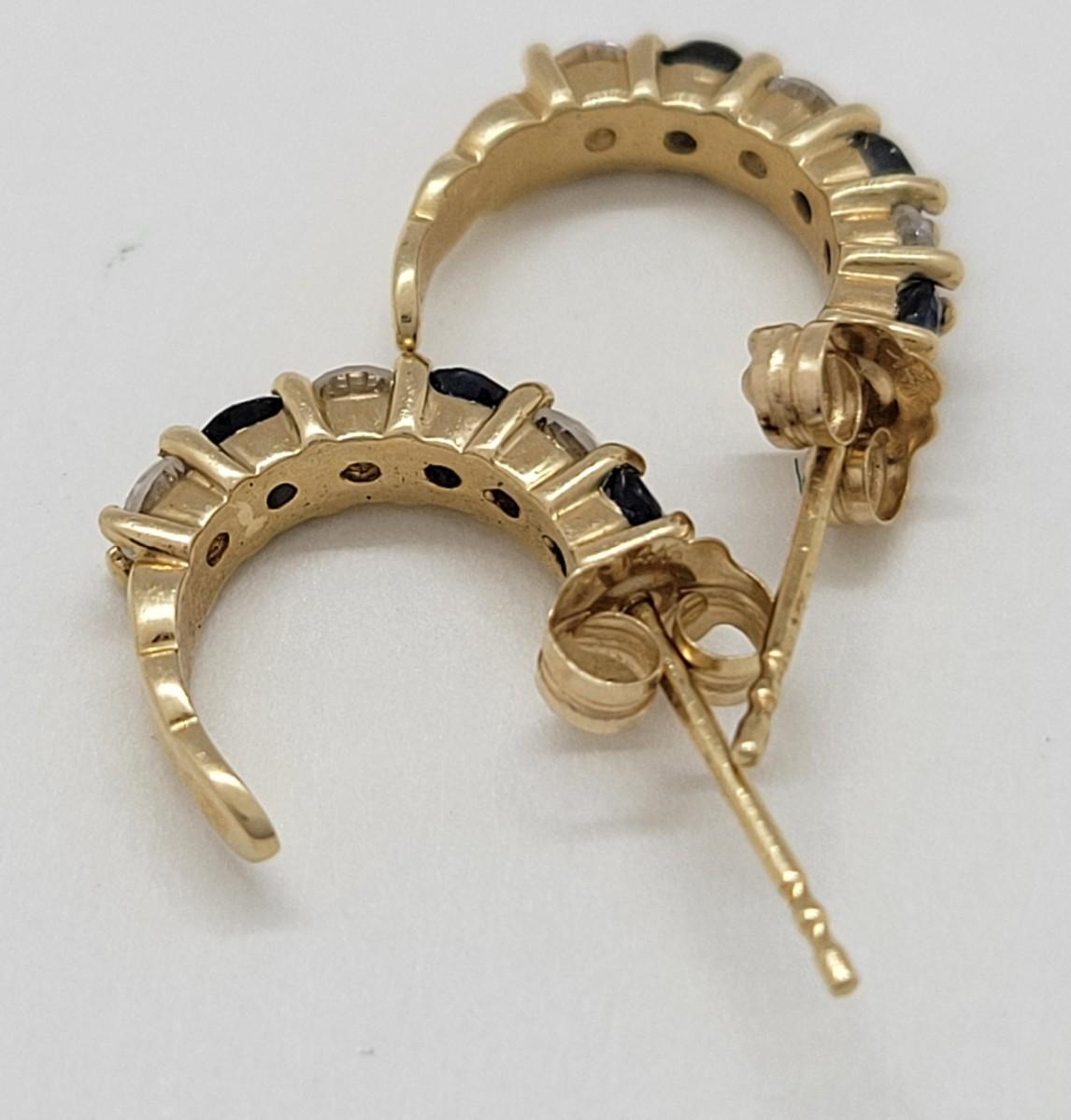 LOT 19: 14K Gold JCM Diamond & Sapphire 1/2 Hoop Earrings - 1.6 gtw