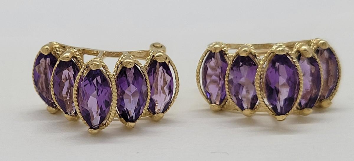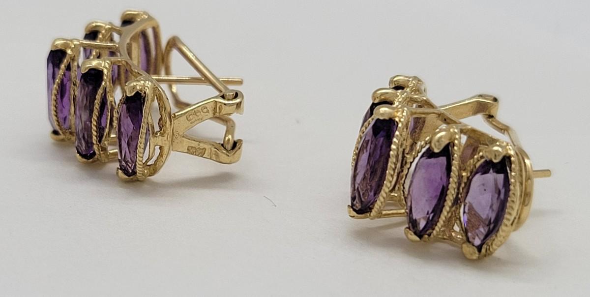 LOT 26: 14K Gold & Amethyst Lever Back Pierced Earrings -  4.5 gtw