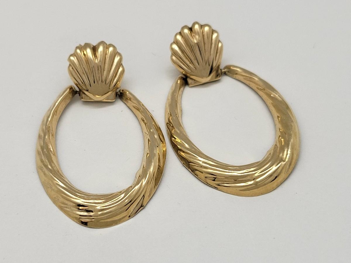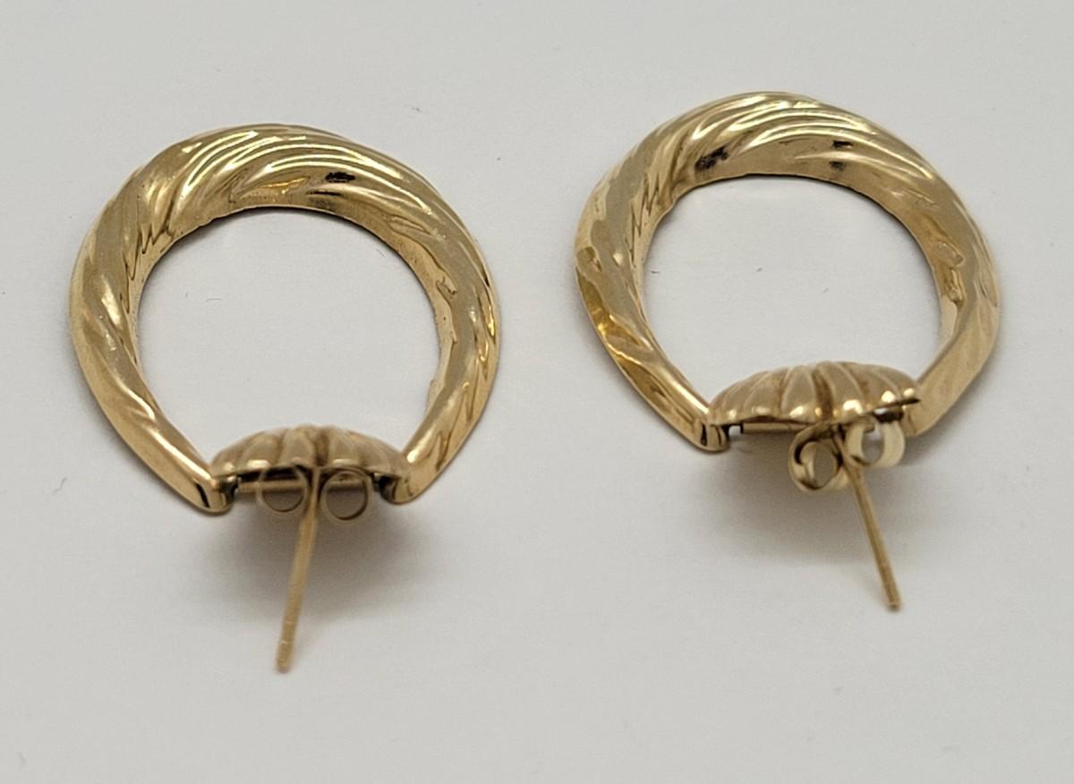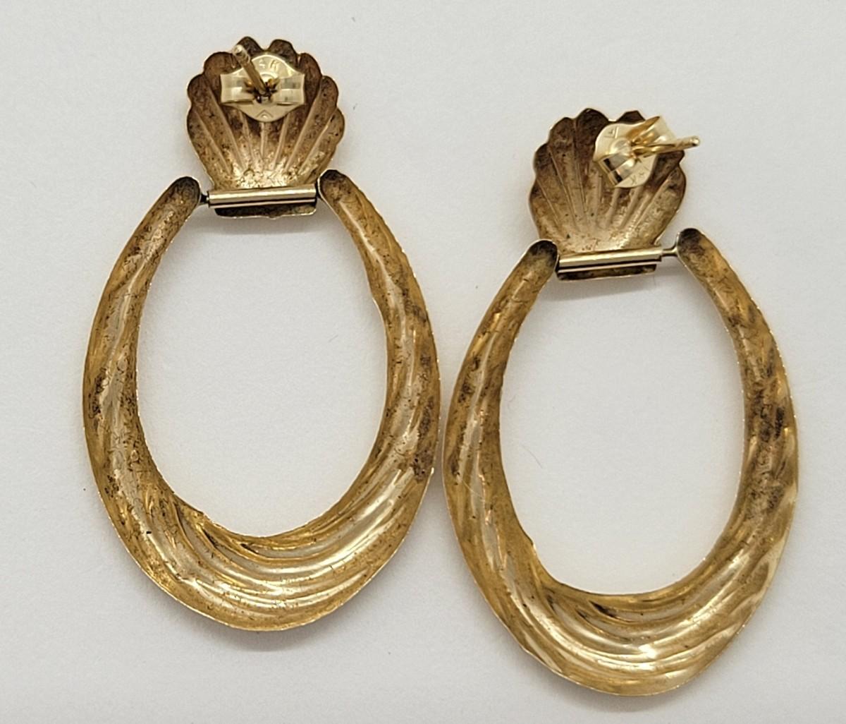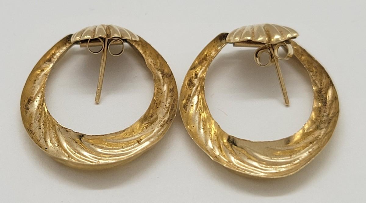 LOT 27: 14K Gold Diamond Cut Door Knocker Pierced Earrings - 1.8 grams