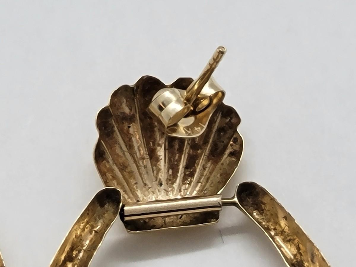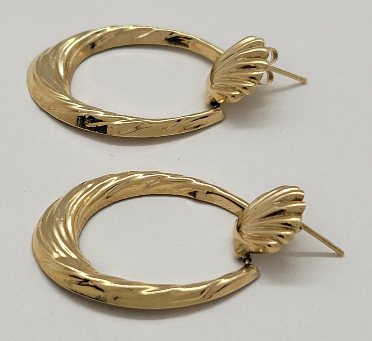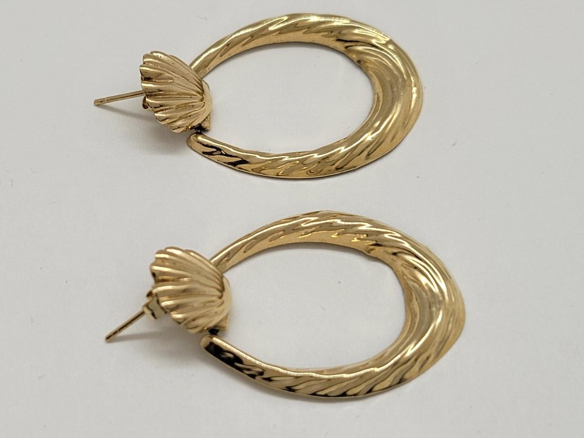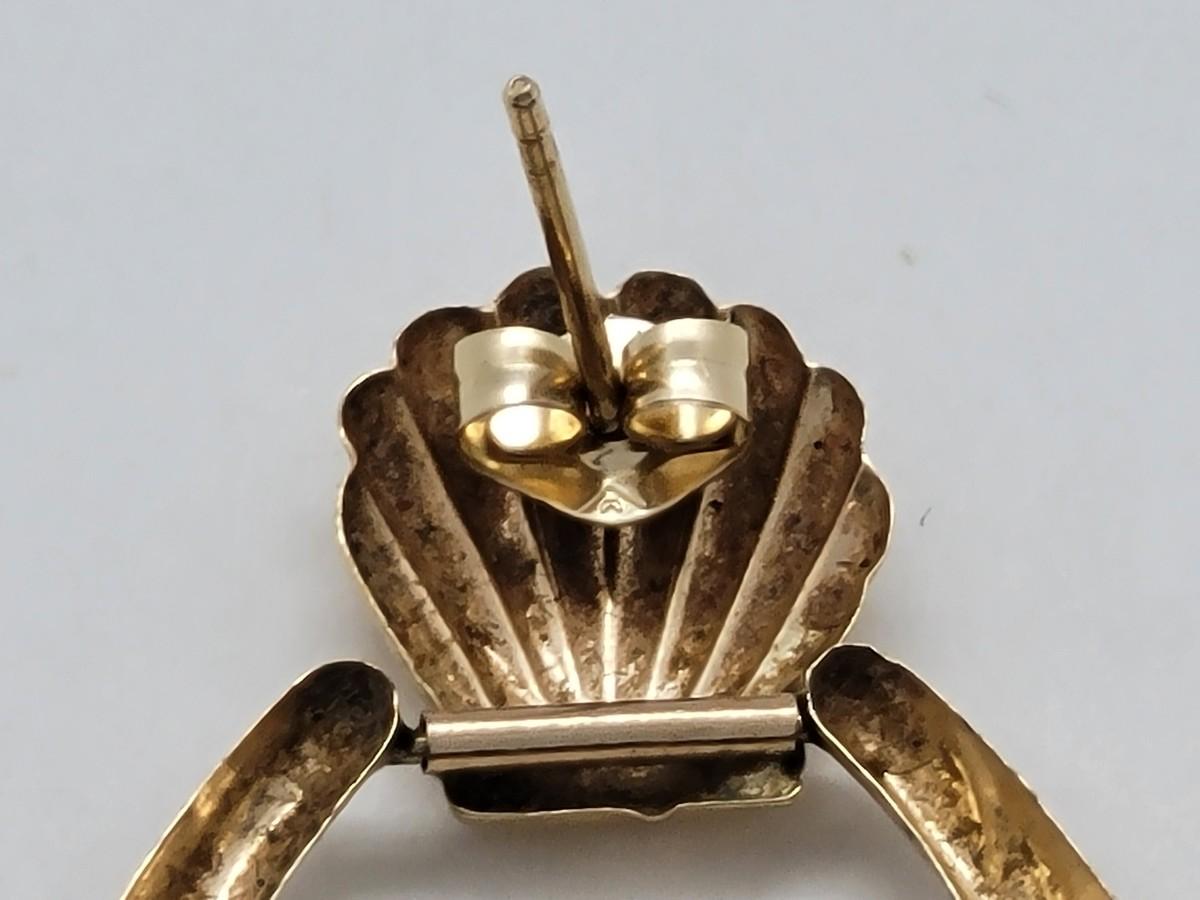 LOT 27: 14K Gold Diamond Cut Door Knocker Pierced Earrings - 1.8 grams