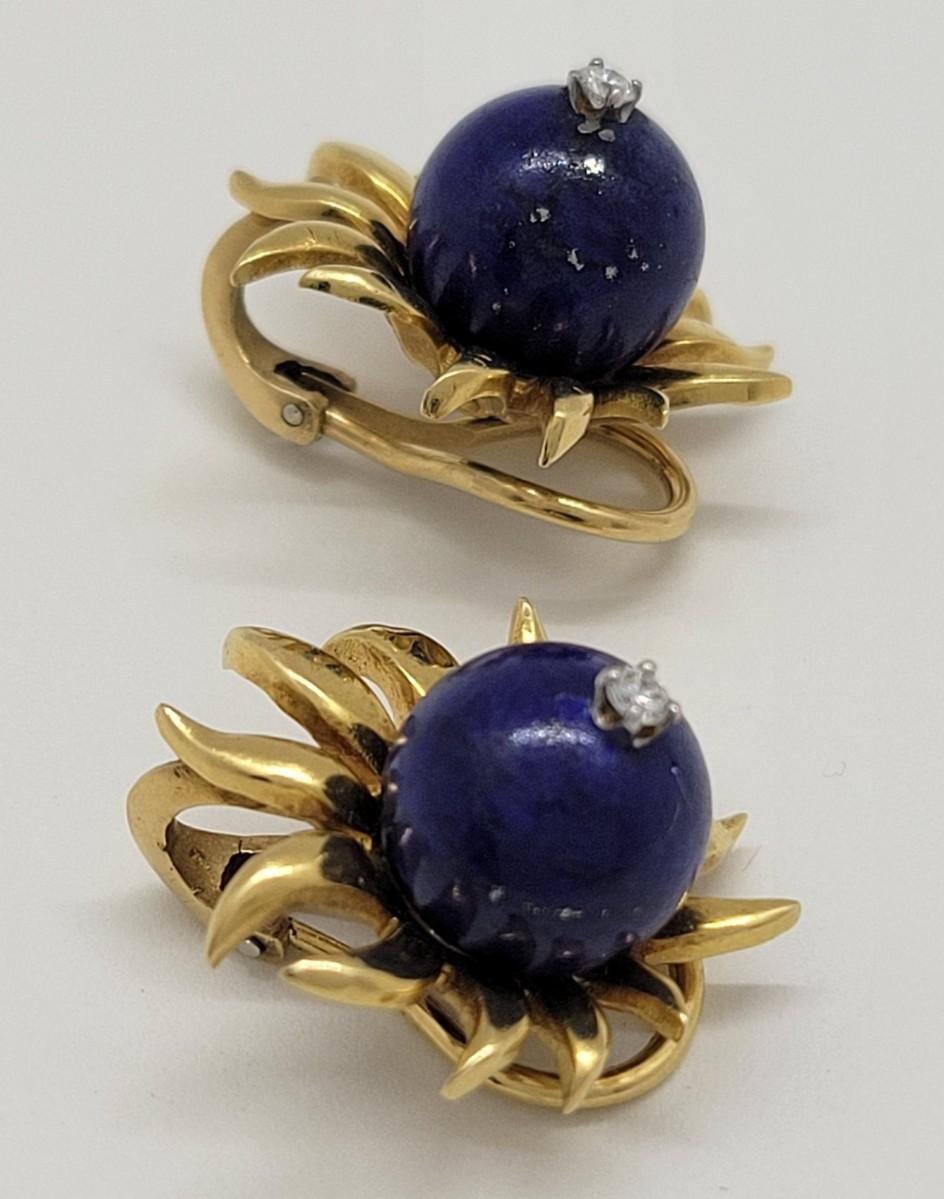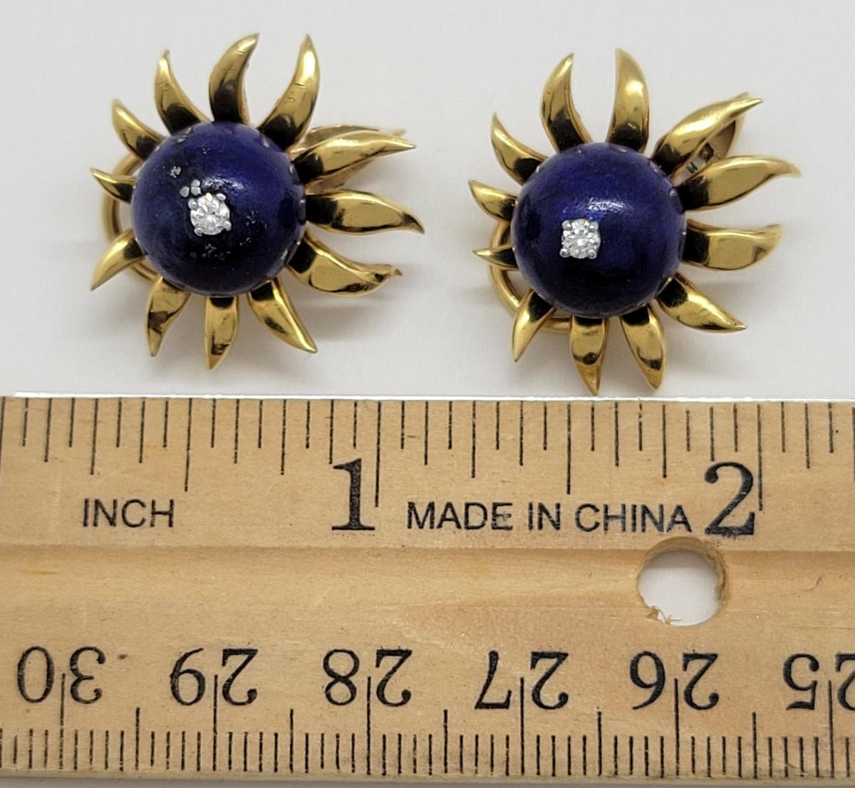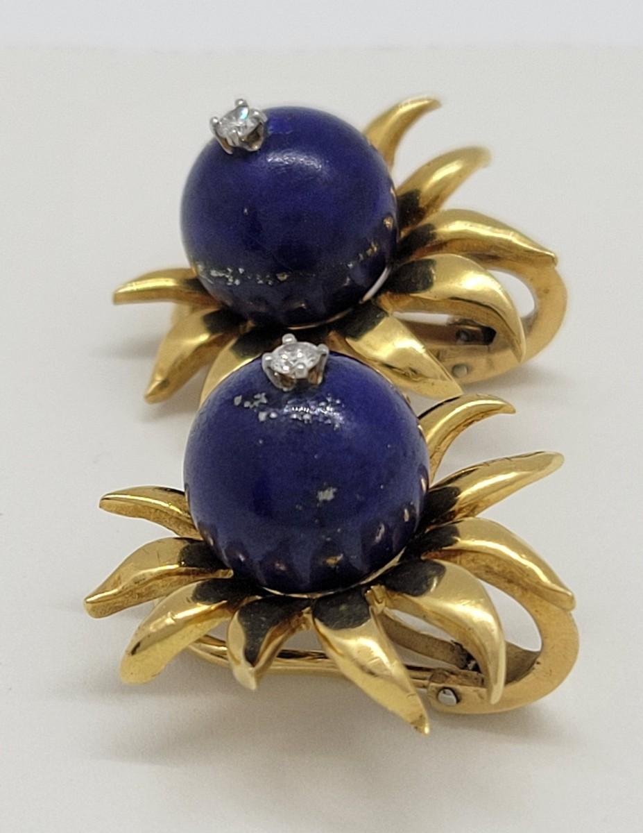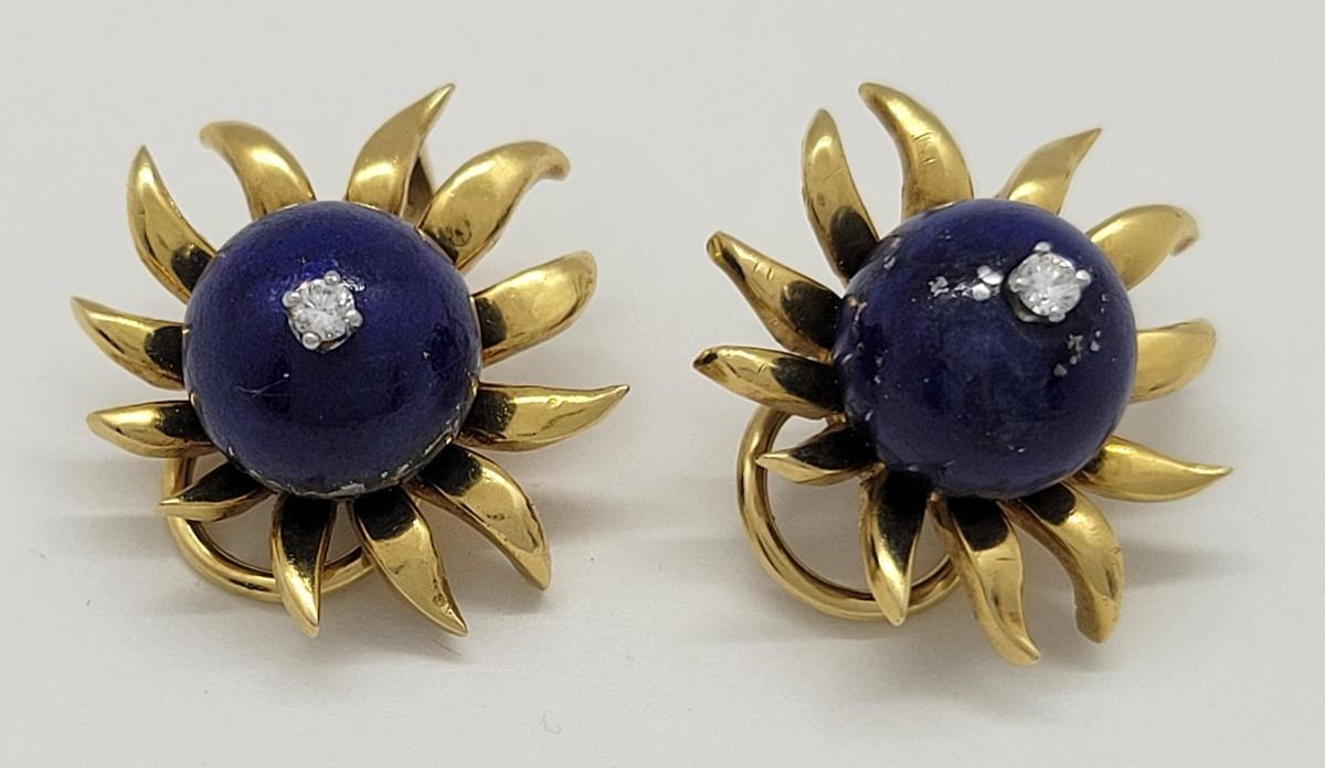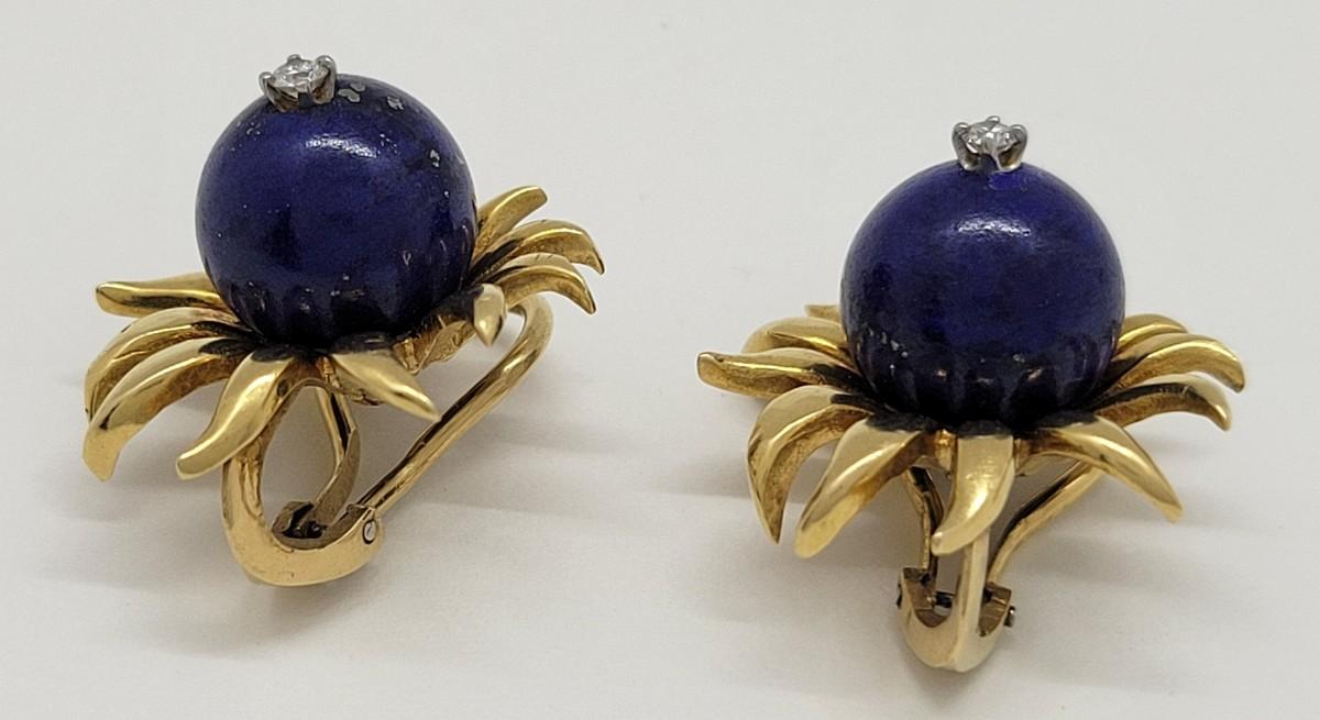 LOT 31: 18K Gold Lapis Lazuli & Diamond (.10ctw) Earrings - 15.2 gtw
