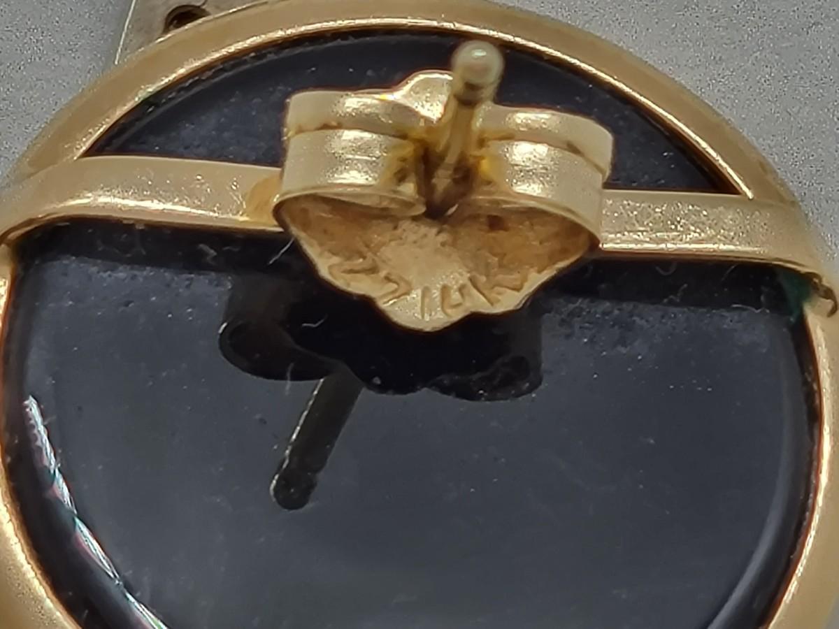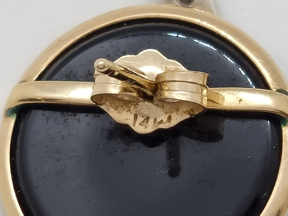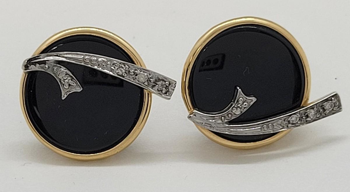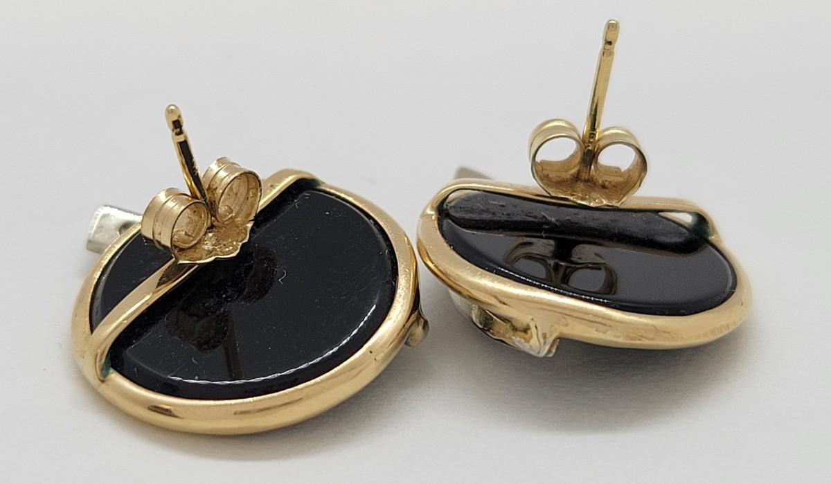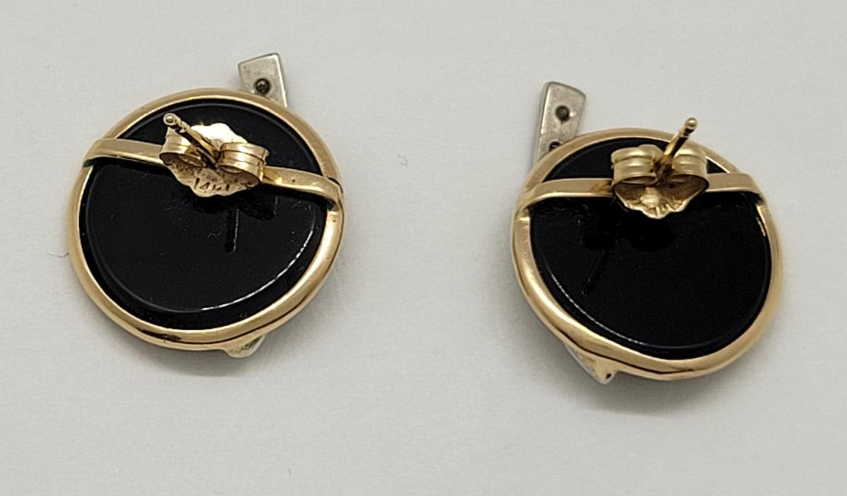 LOT 34: 14K Yellow Gold, Black Onyx, and Diamond Earrings