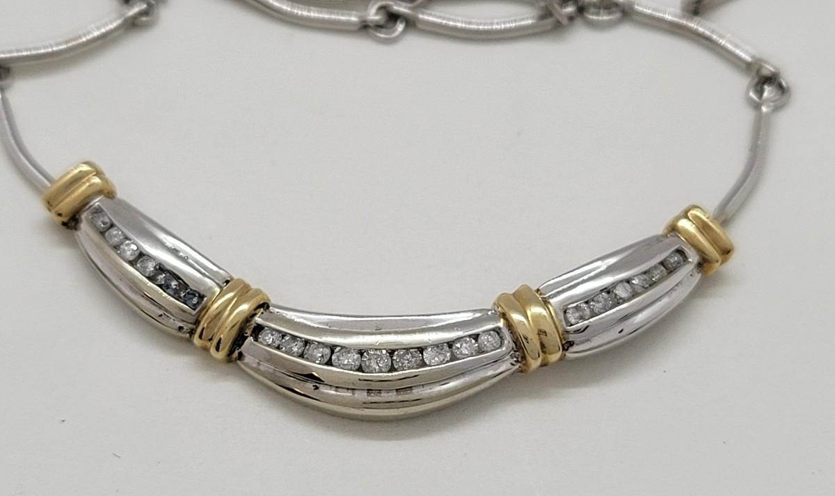LOT 38: 10K Art Nouveau Style 16.5" TwoTone Necklace with 1/4 Ct total Diamonds 7.5g tw