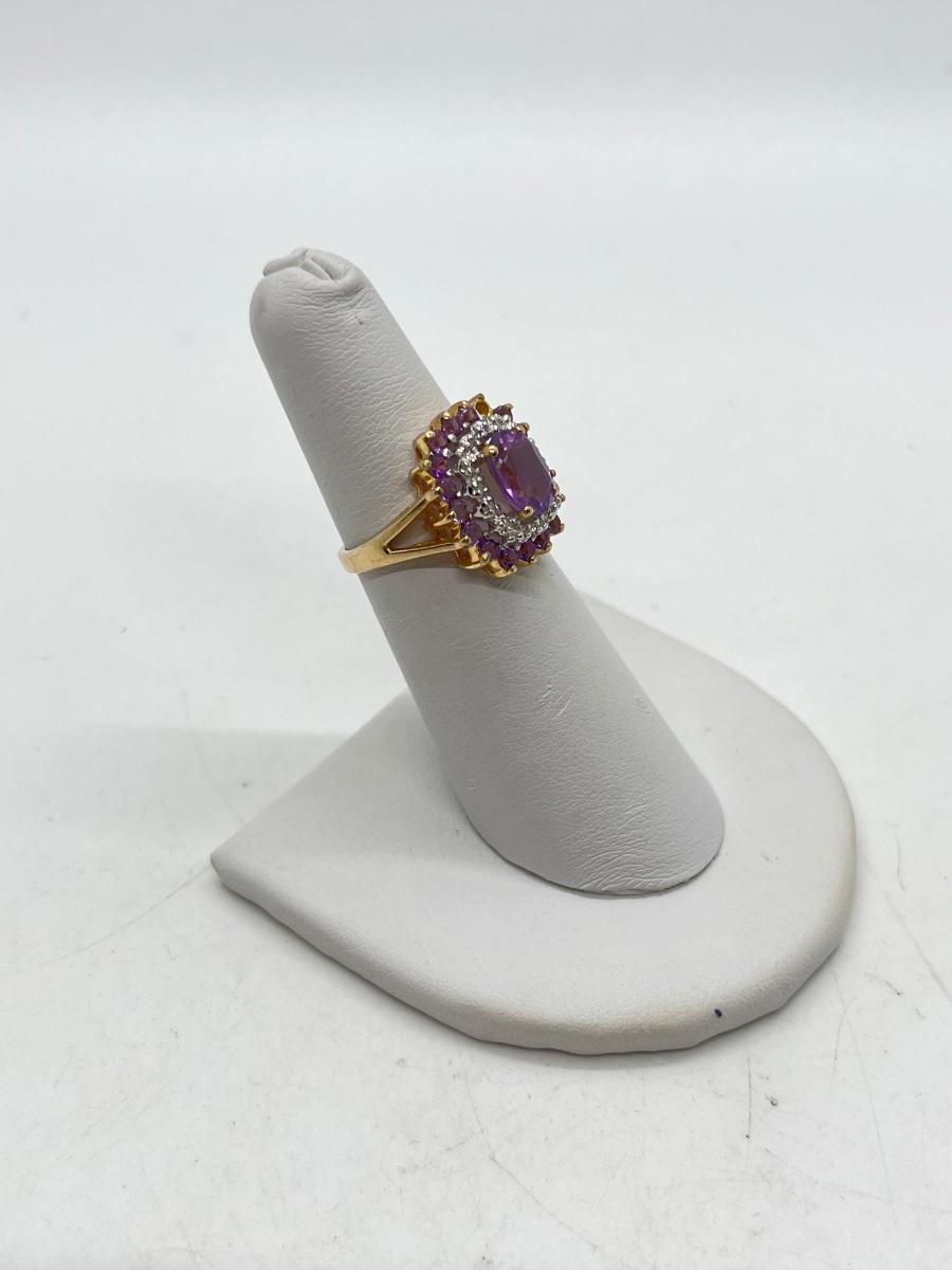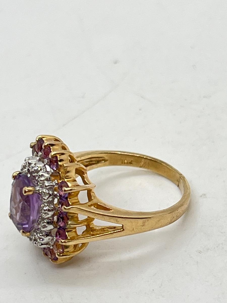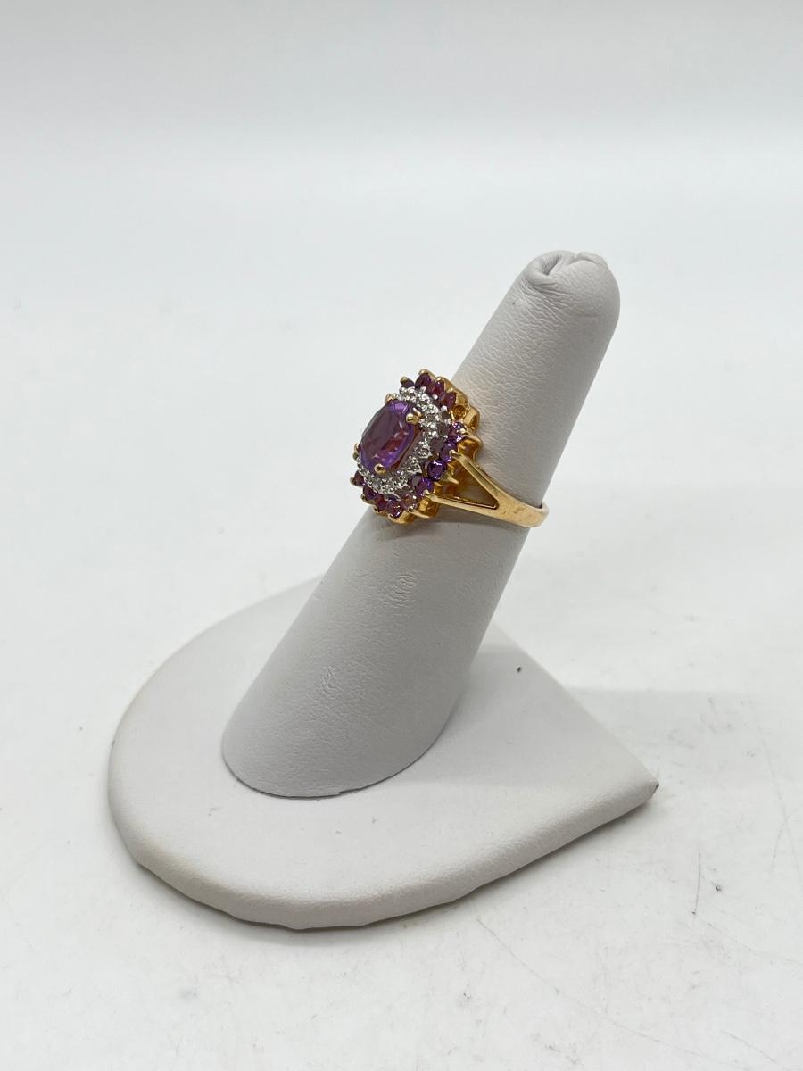 LOT 55: 10K Gold Amethyst and Diamond Cluster Ring - Size 6 - 3.4 gtw
