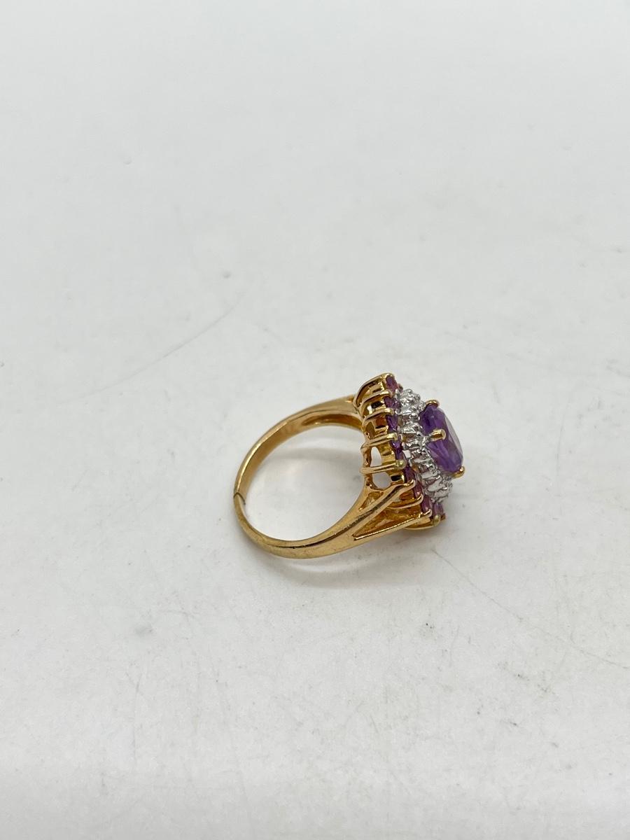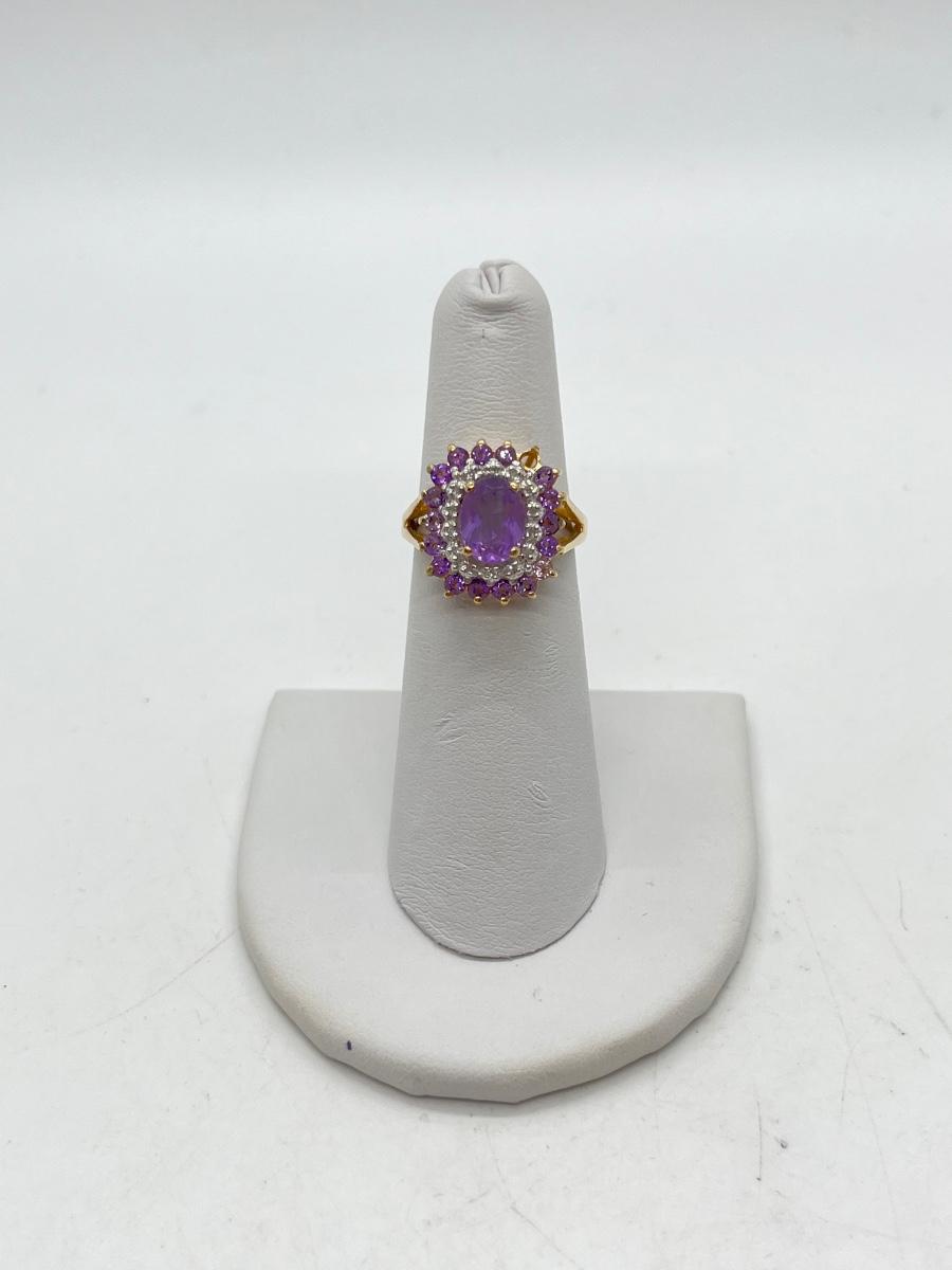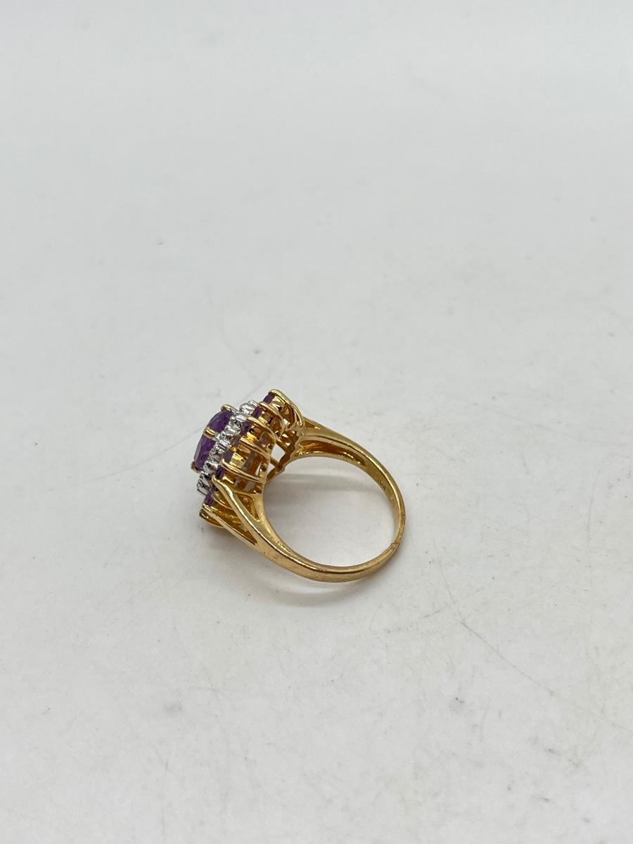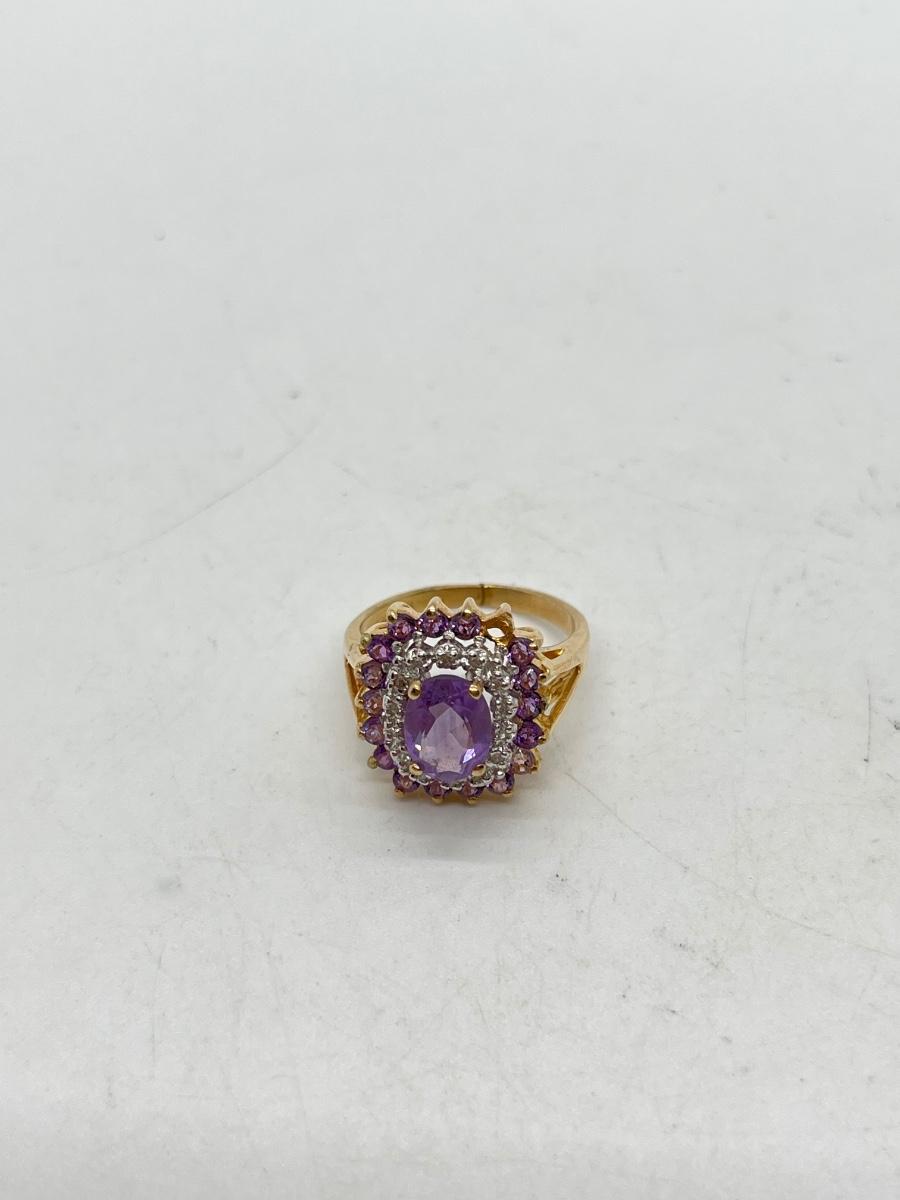 LOT 55: 10K Gold Amethyst and Diamond Cluster Ring - Size 6 - 3.4 gtw