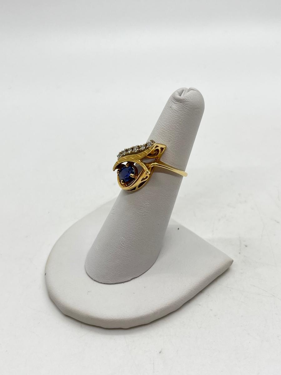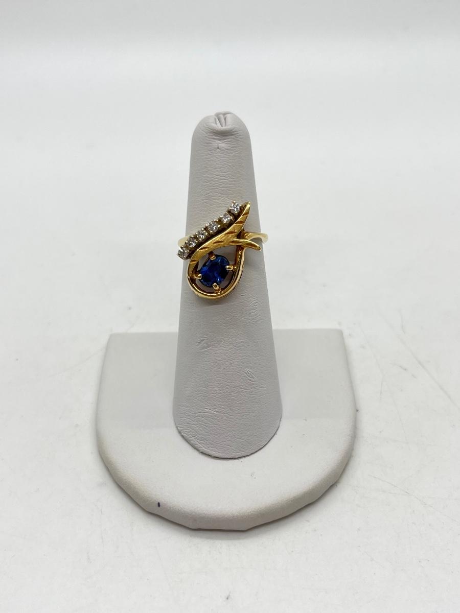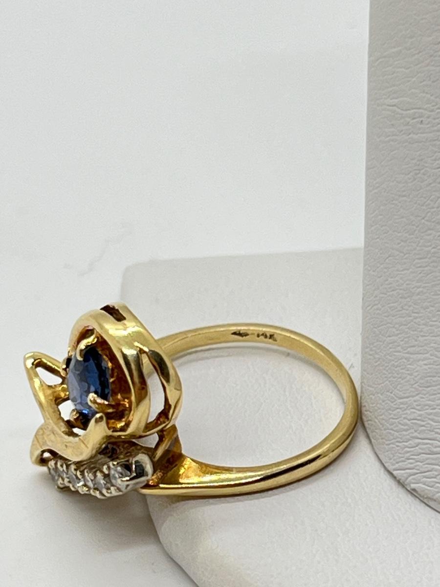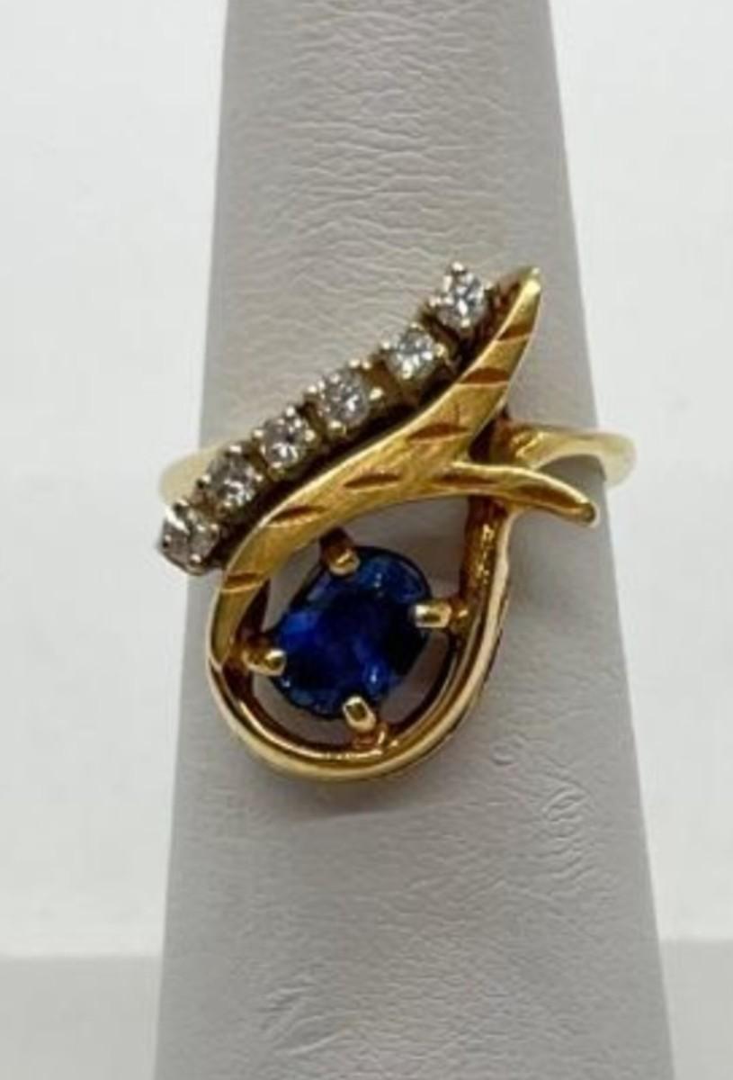 LOT 56: 4.4gtw 14K Gold Art Nouveau Sapphire and Diamond Ring sz 5