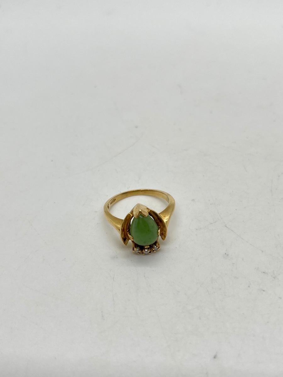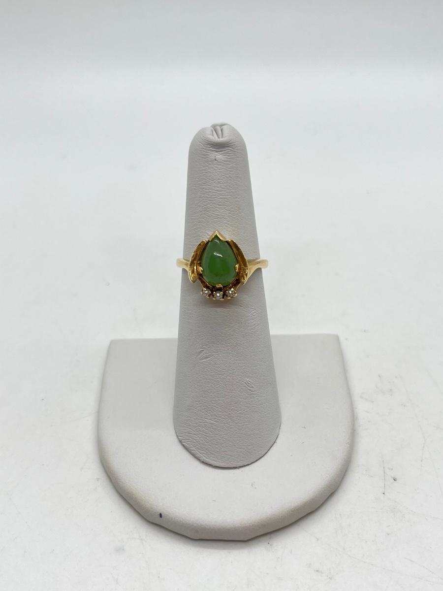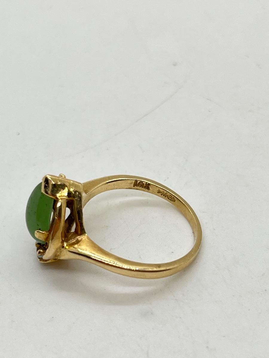 LOT 57: 4.10 gtw 14K Gold Jade Ring with seed pearls sz 6