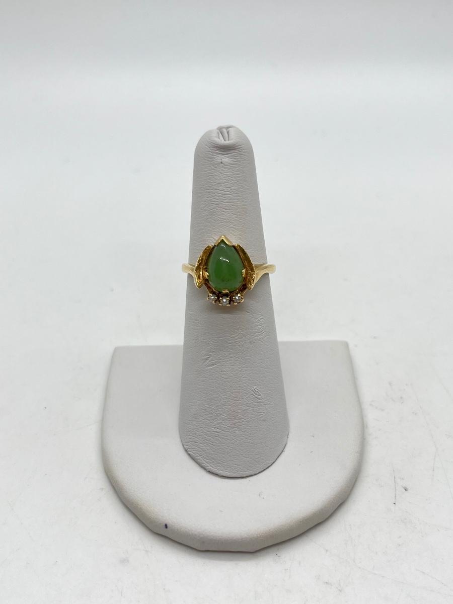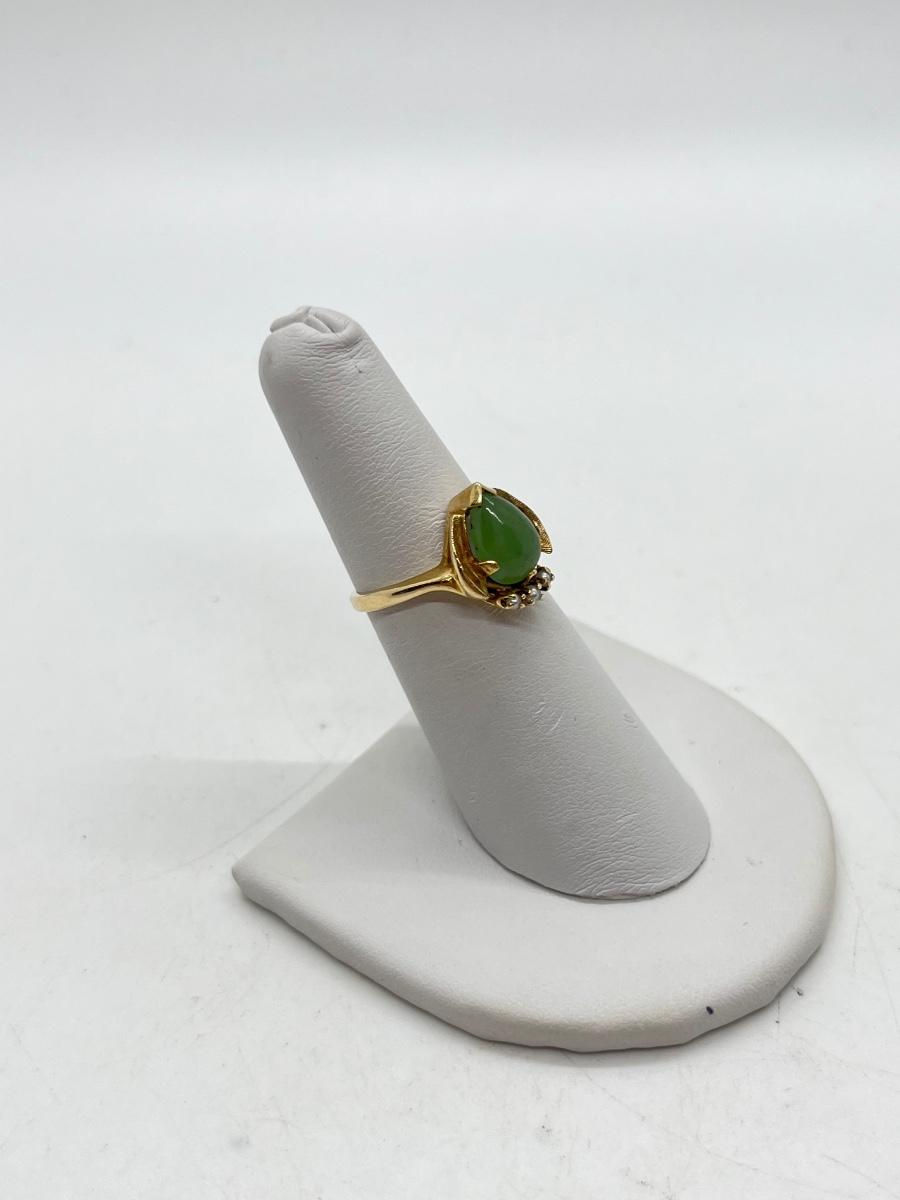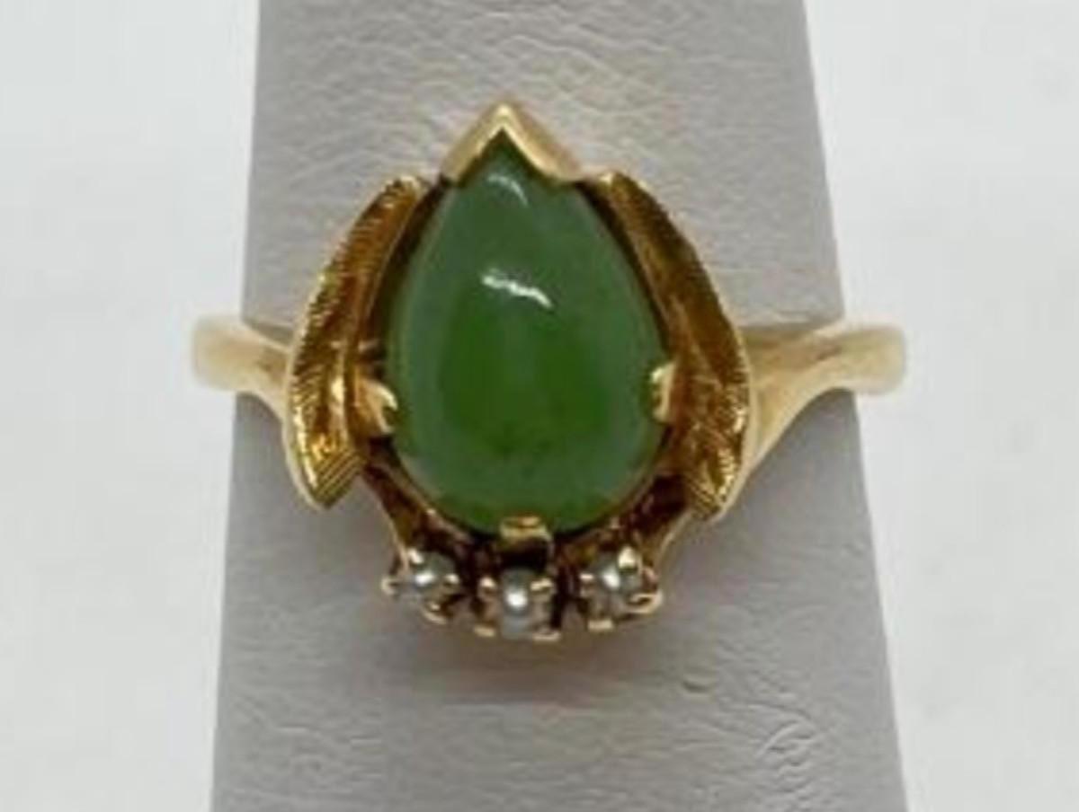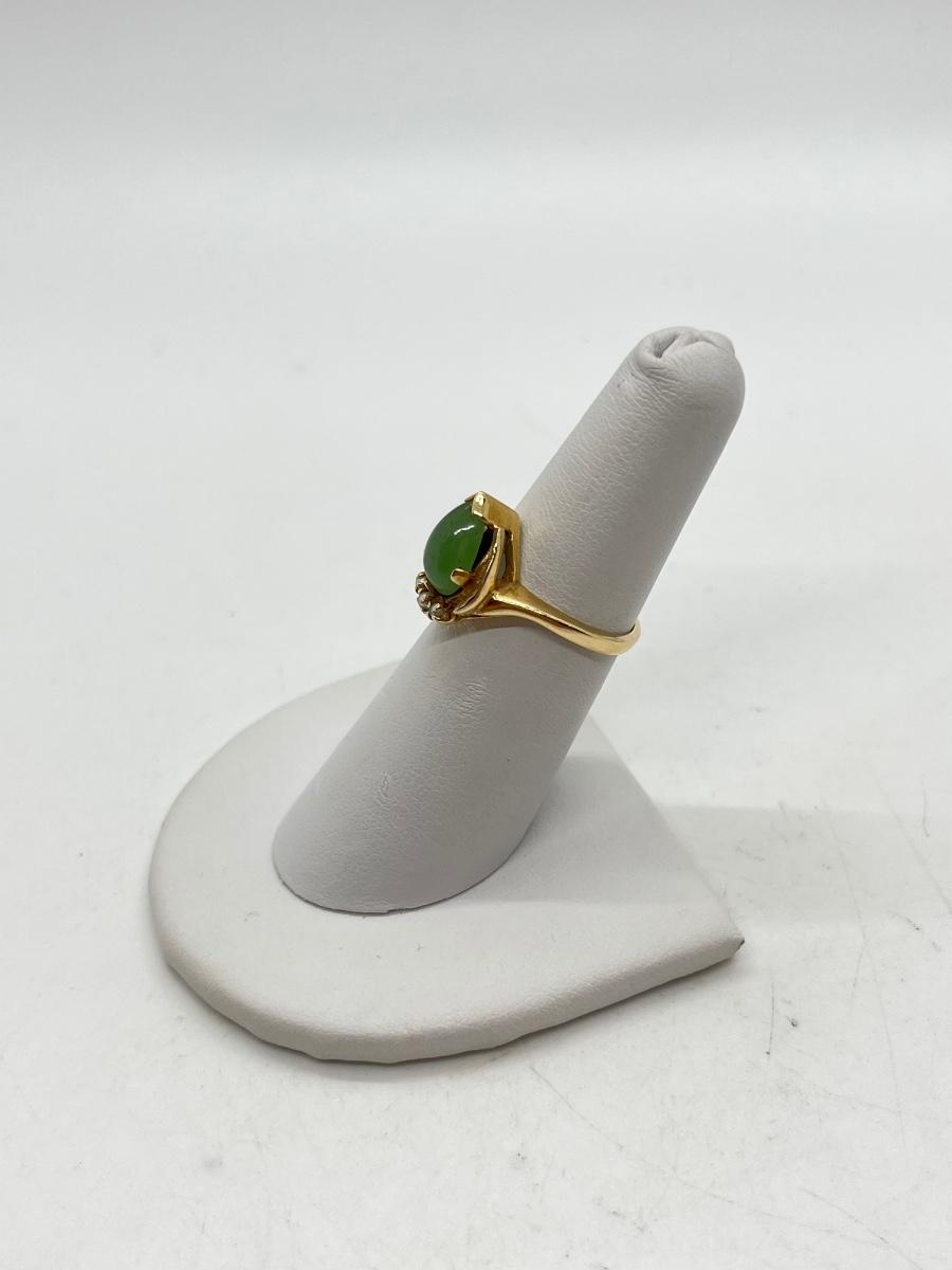LOT 57: 4.10 gtw 14K Gold Jade Ring with seed pearls sz 6