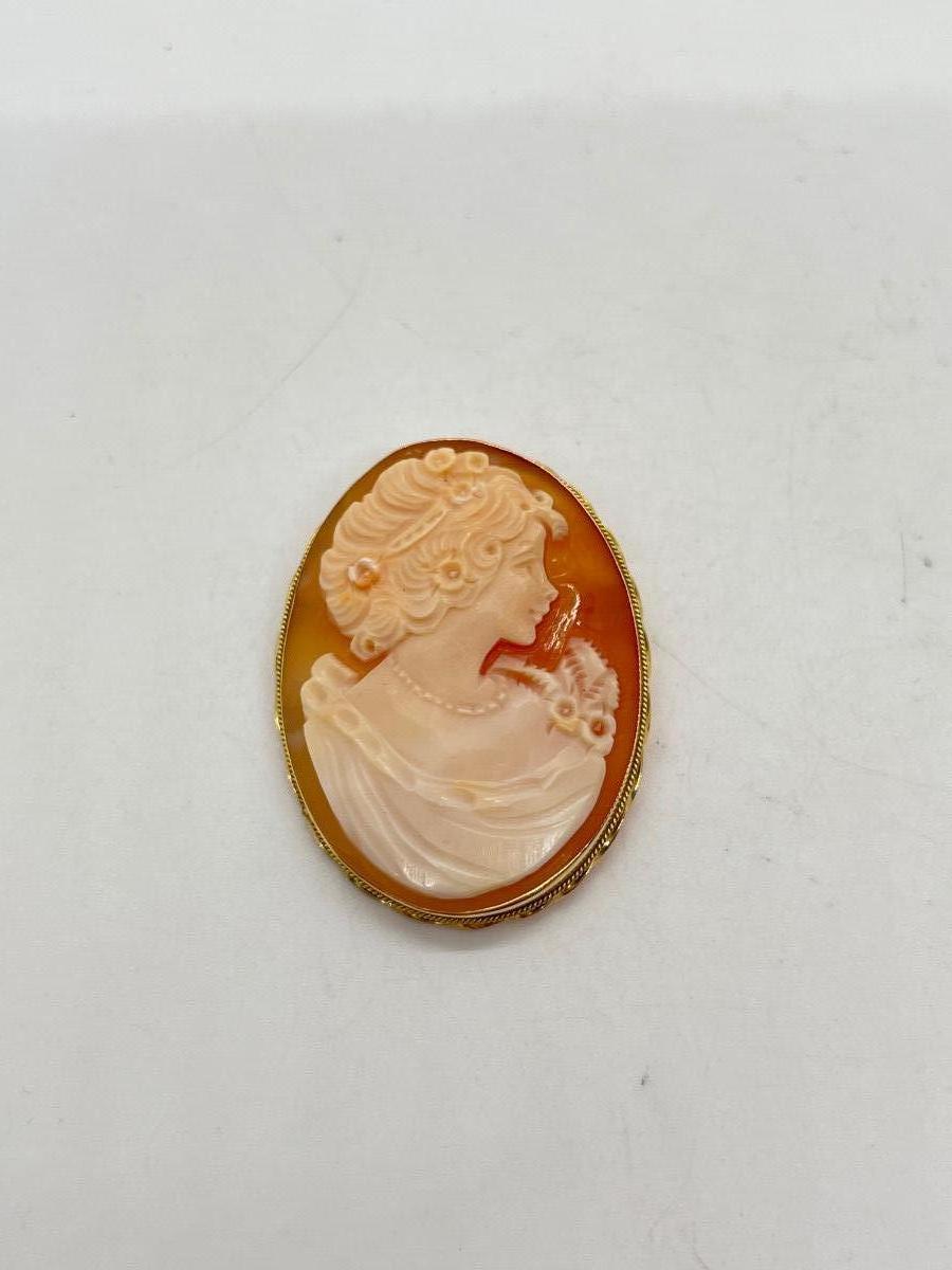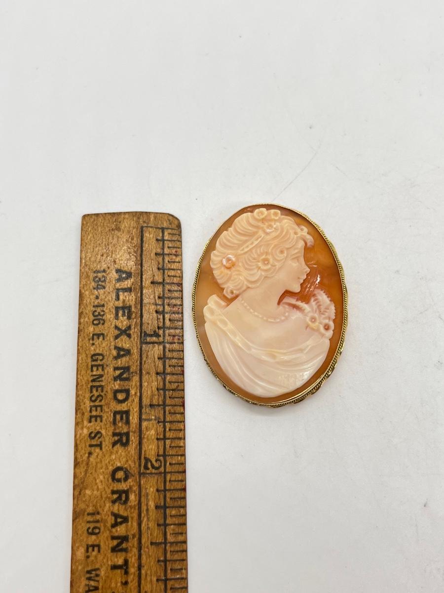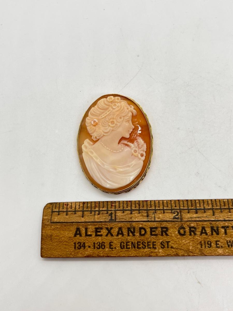 LOT 60: 14K Gold Vintage Cameo Pendant / Brooch