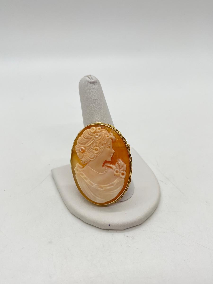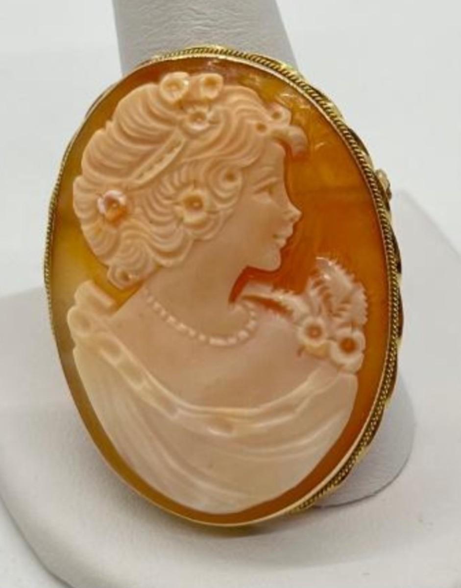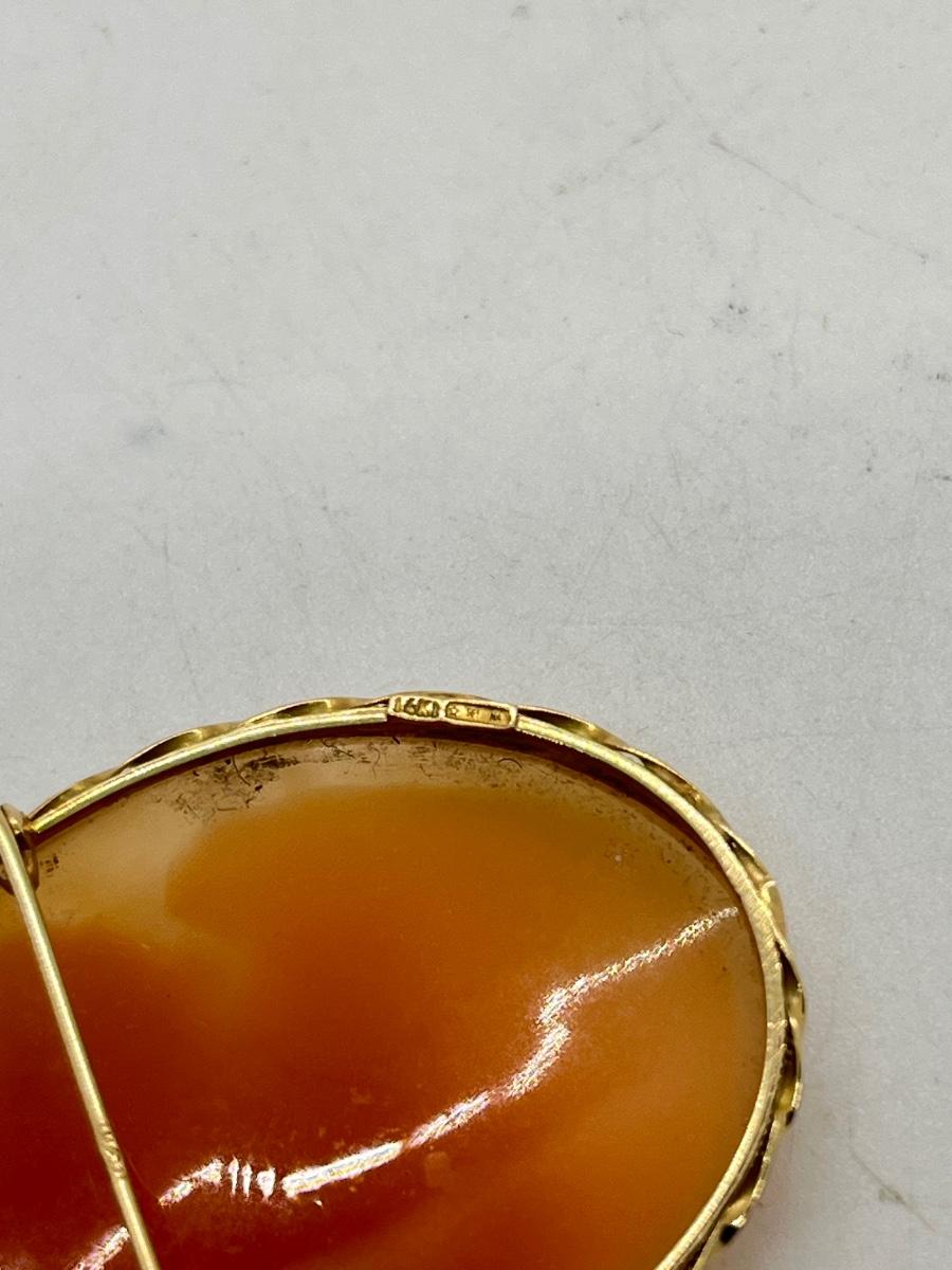 LOT 60: 14K Gold Vintage Cameo Pendant / Brooch
