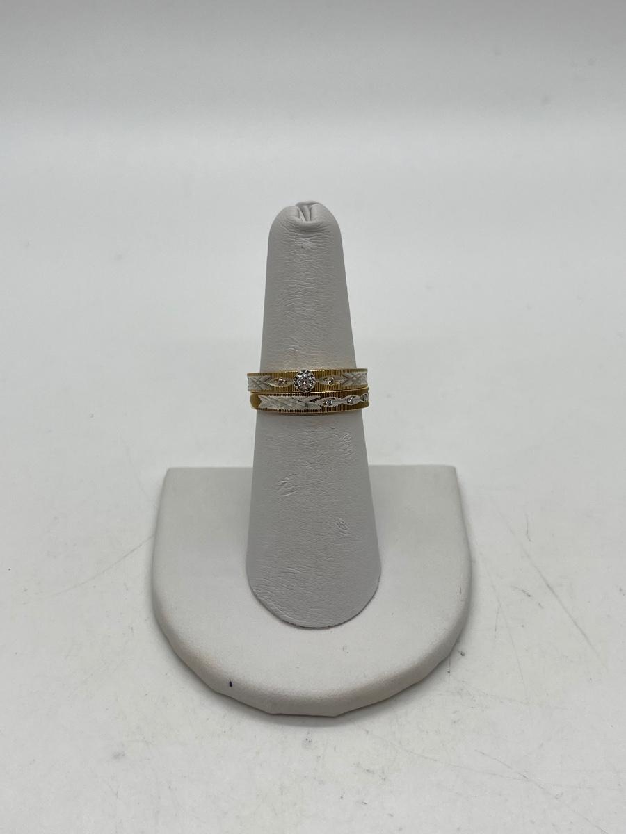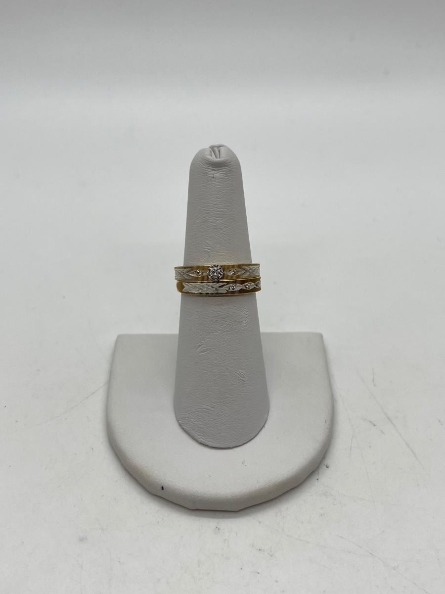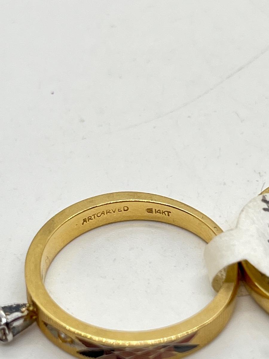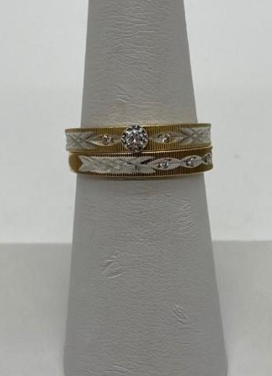 LOT 61: 5.9 gtw 14K Gold Two-Tone Diamond Engagement Ring/Wedding Band Set sz. 7