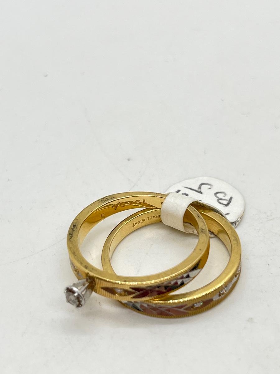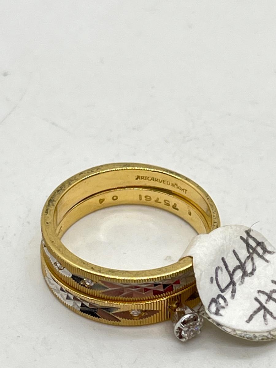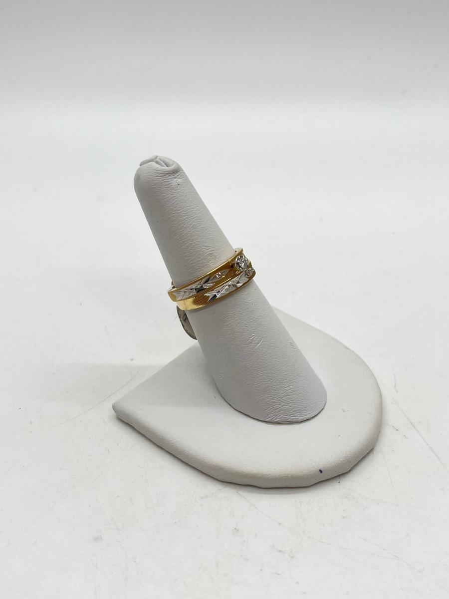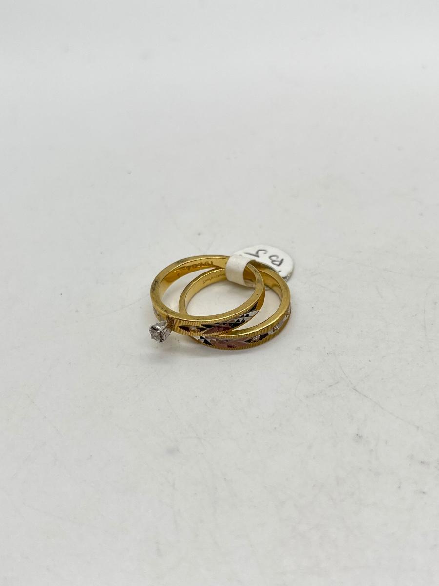 LOT 61: 5.9 gtw 14K Gold Two-Tone Diamond Engagement Ring/Wedding Band Set sz. 7