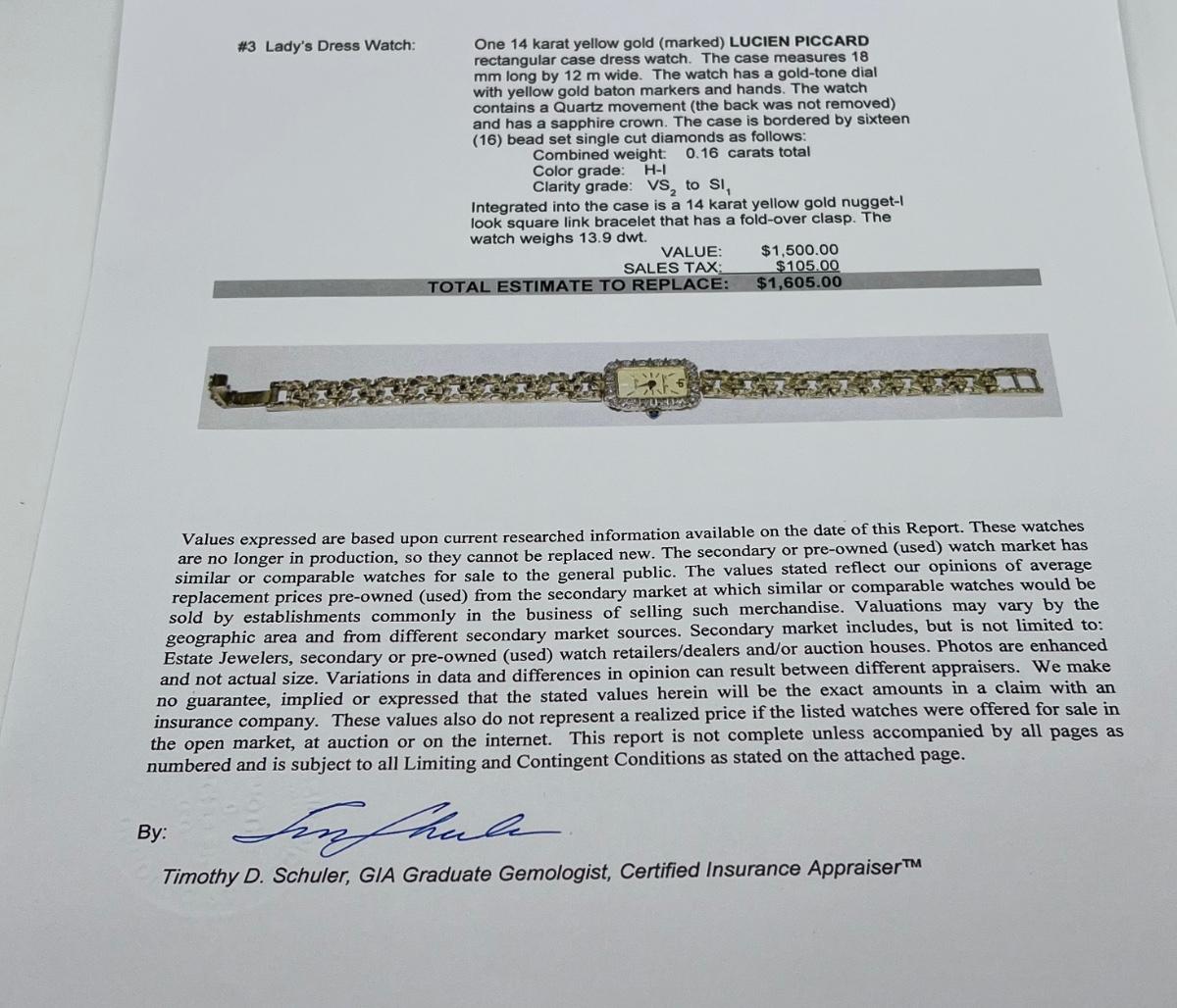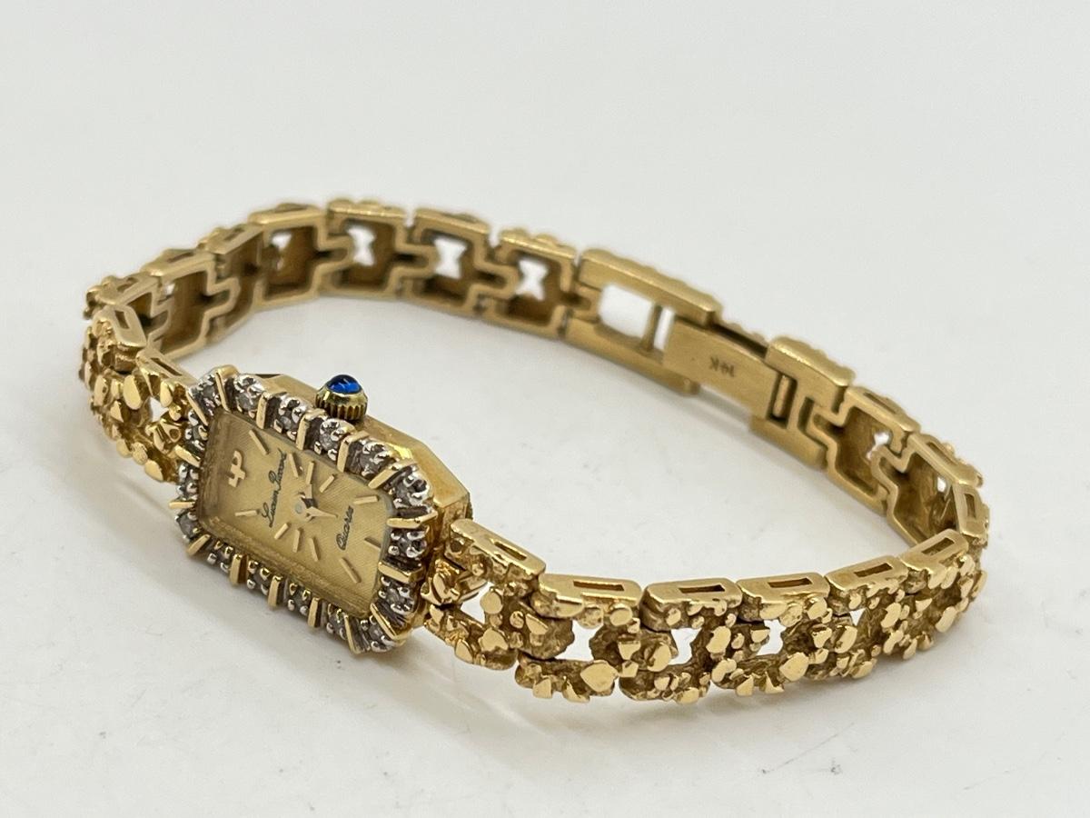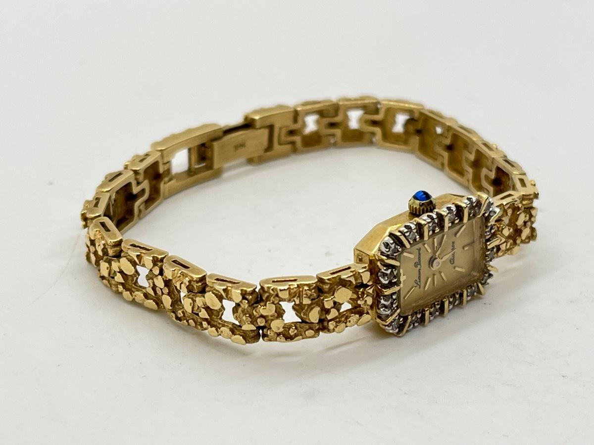 LOT 69: 14K Gold Lucien Piccard Ladies Dress Diamond Watch  - 21.63 gtw