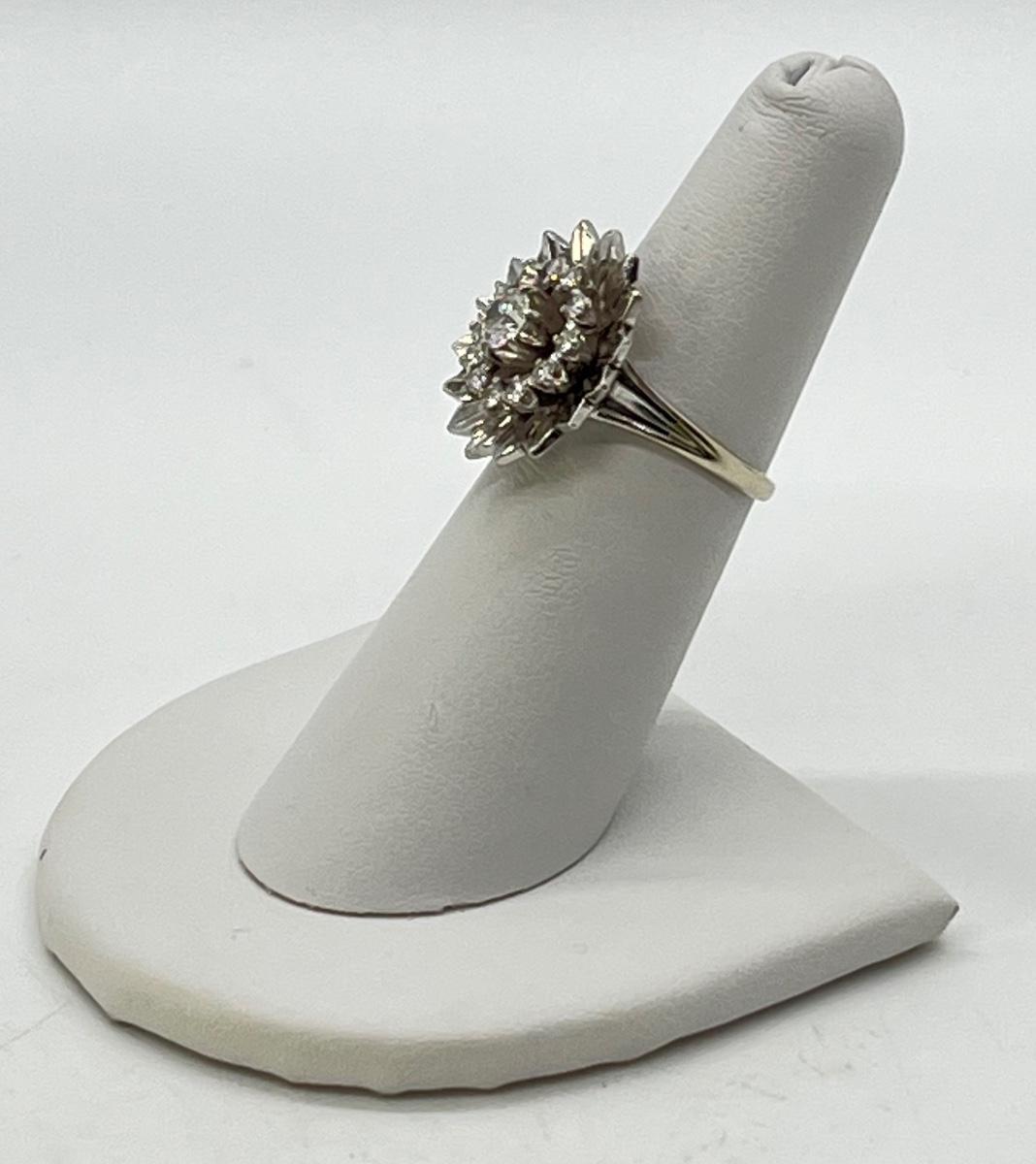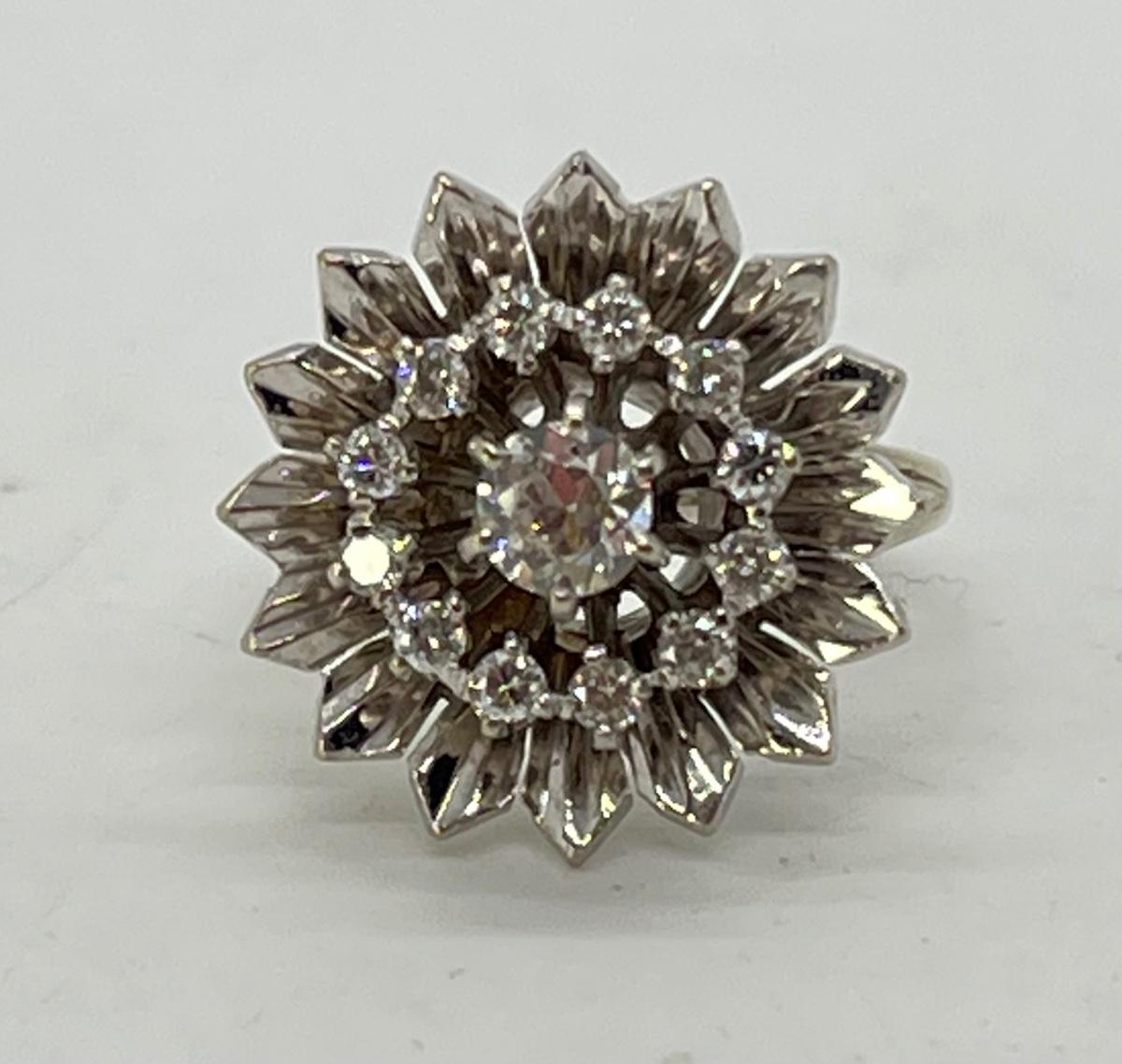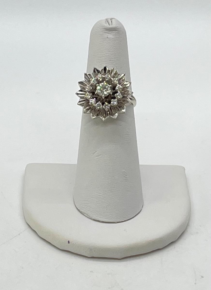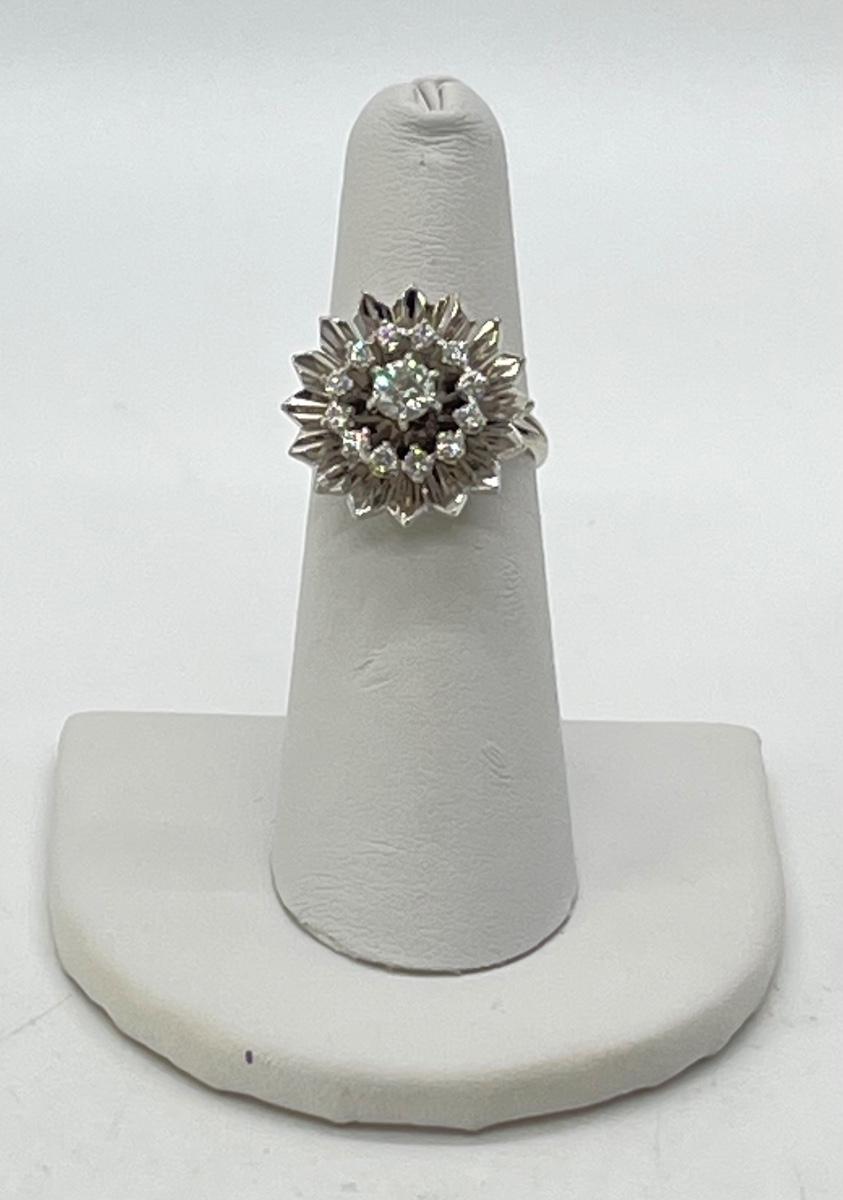 LOT 70: 14K White Gold Sunflower Diamond Cluster Ring - Size 5.5 - 5.87 gtw