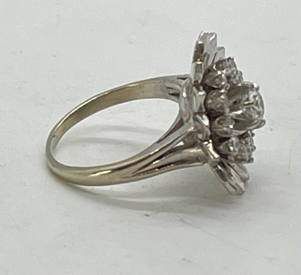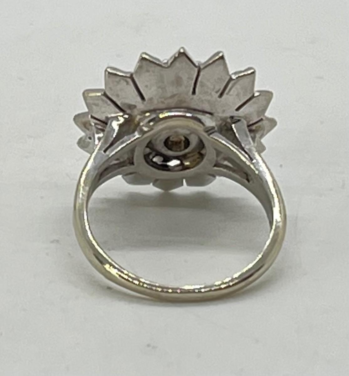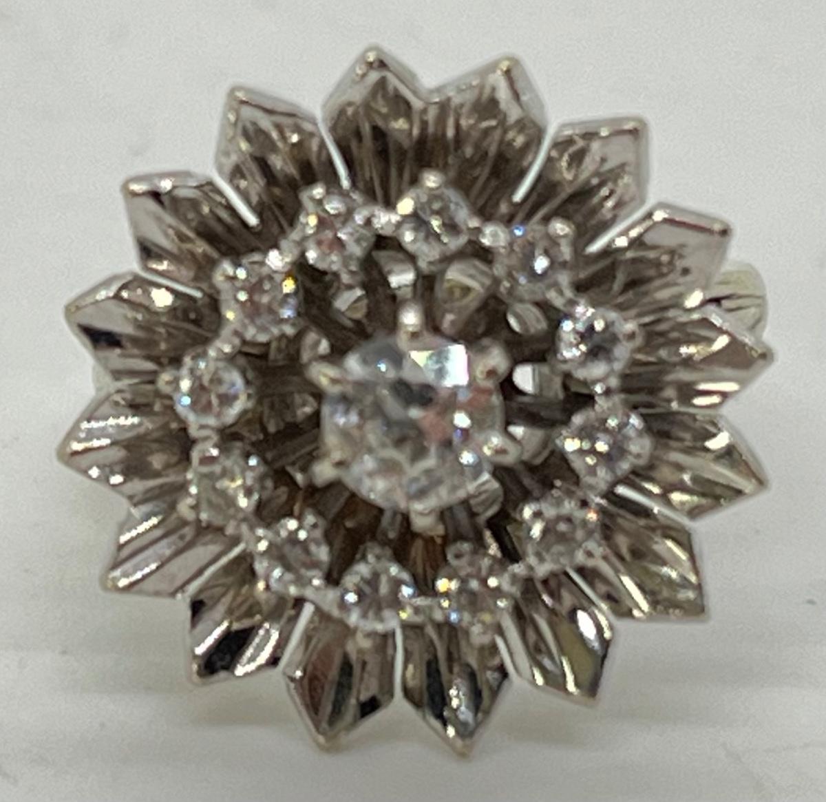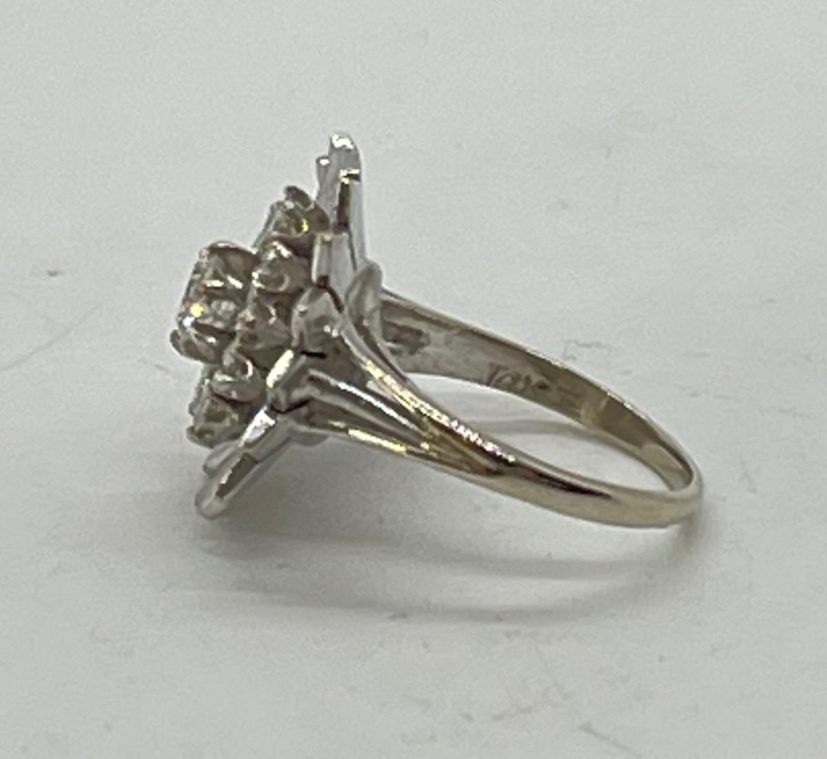 LOT 70: 14K White Gold Sunflower Diamond Cluster Ring - Size 5.5 - 5.87 gtw
