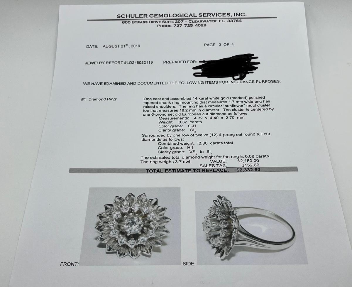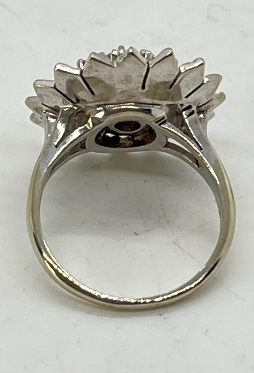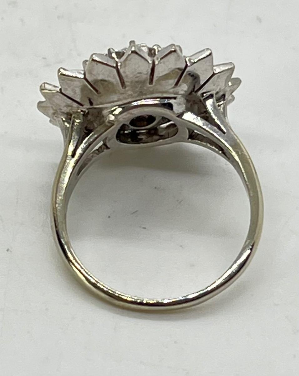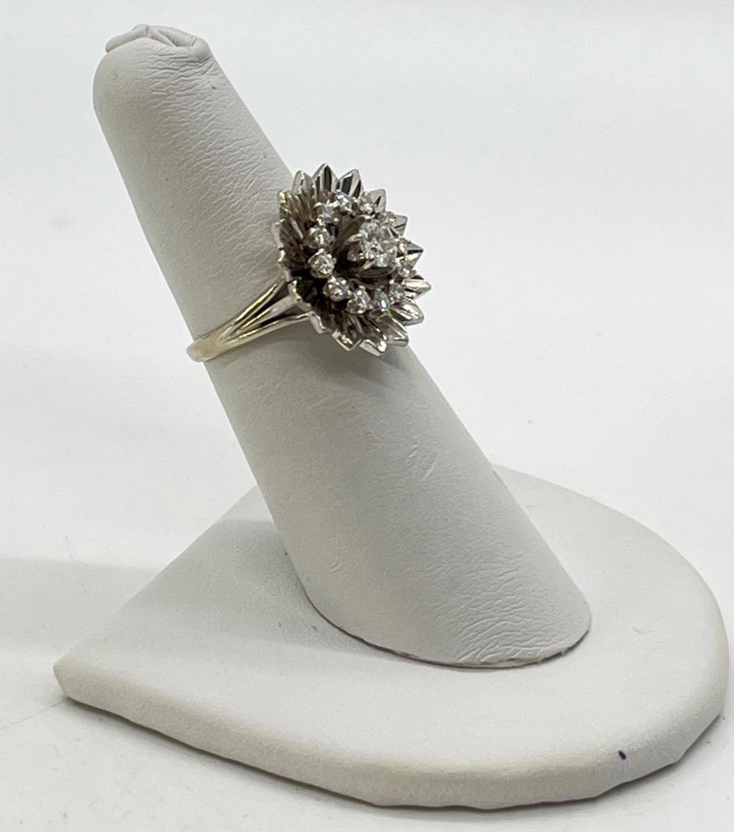 LOT 70: 14K White Gold Sunflower Diamond Cluster Ring - Size 5.5 - 5.87 gtw