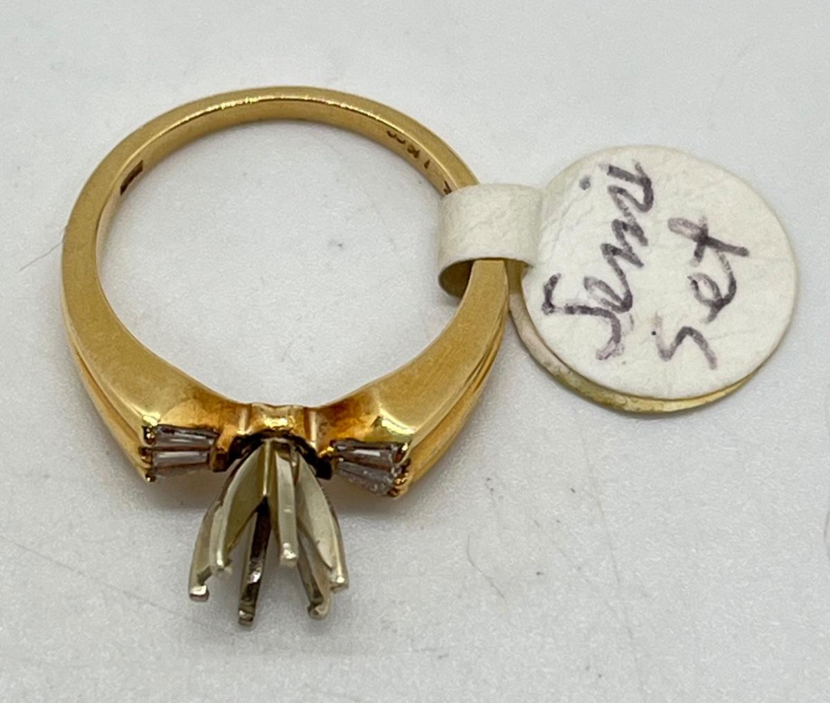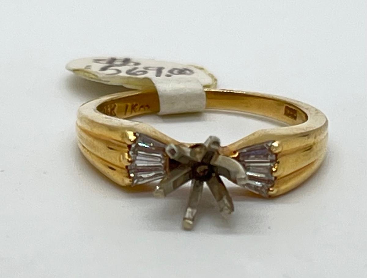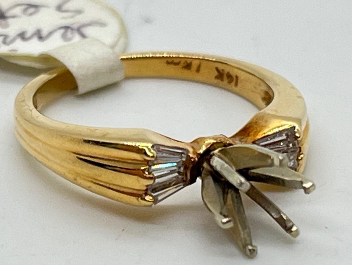 LOT 75: 14K Gold Size 6 Ring - Missing Center Stone - 6 Baguettes 1/3 CT total - 4.2 gtw