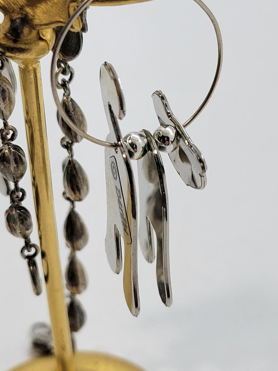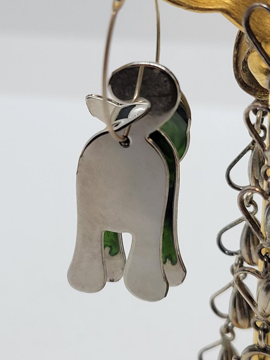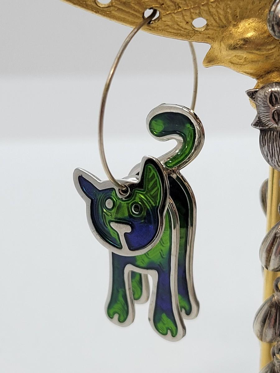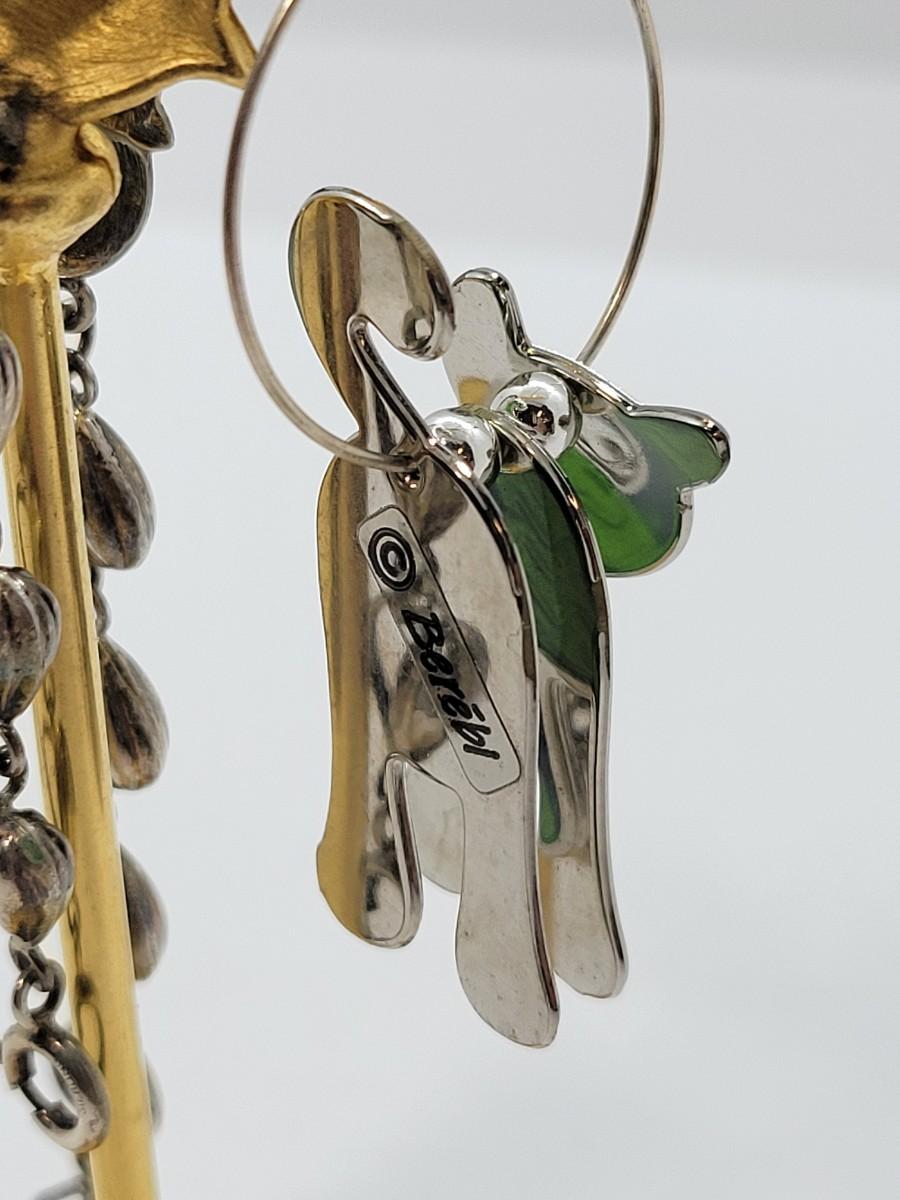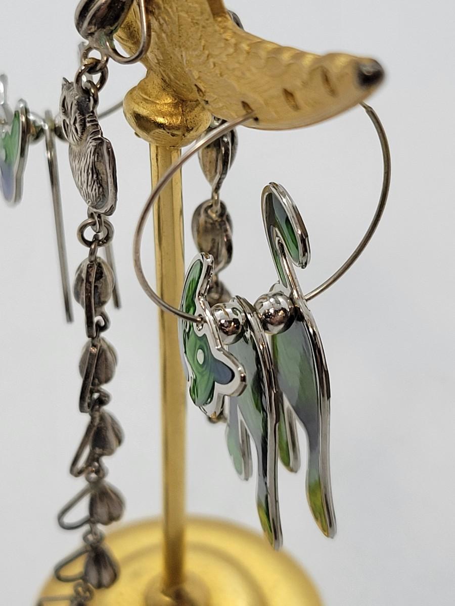 LOT 5: Sterling Silver Cat Bracelet - 7" & Berebl Enamel Mobile Pierced Cat Earrings