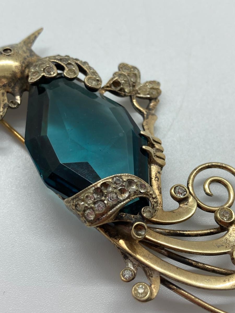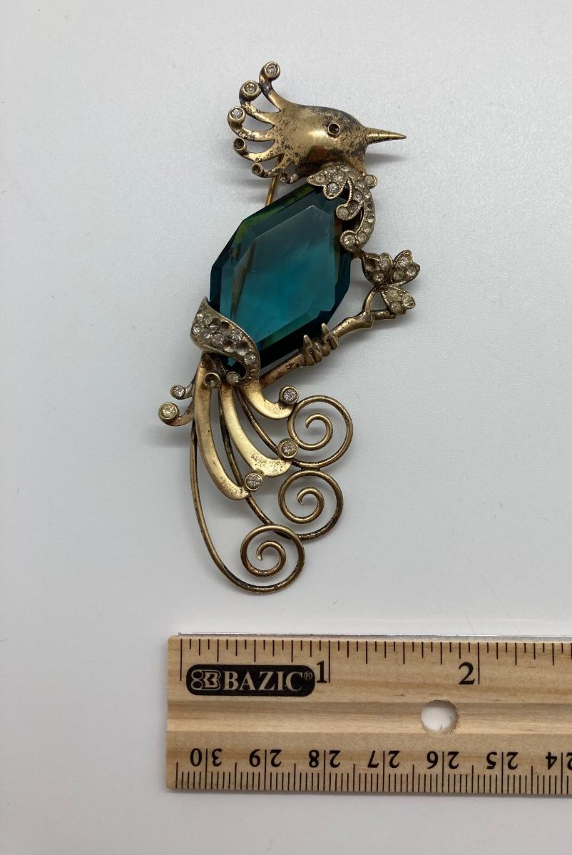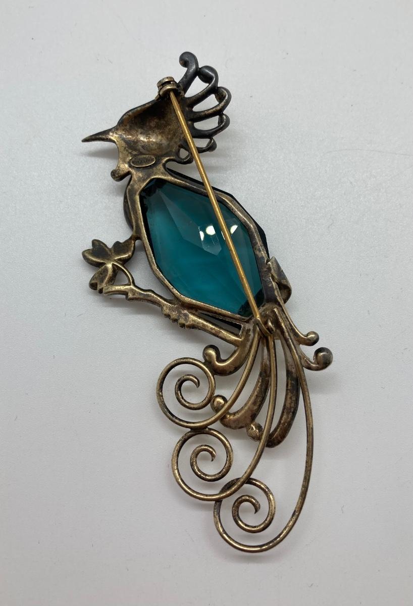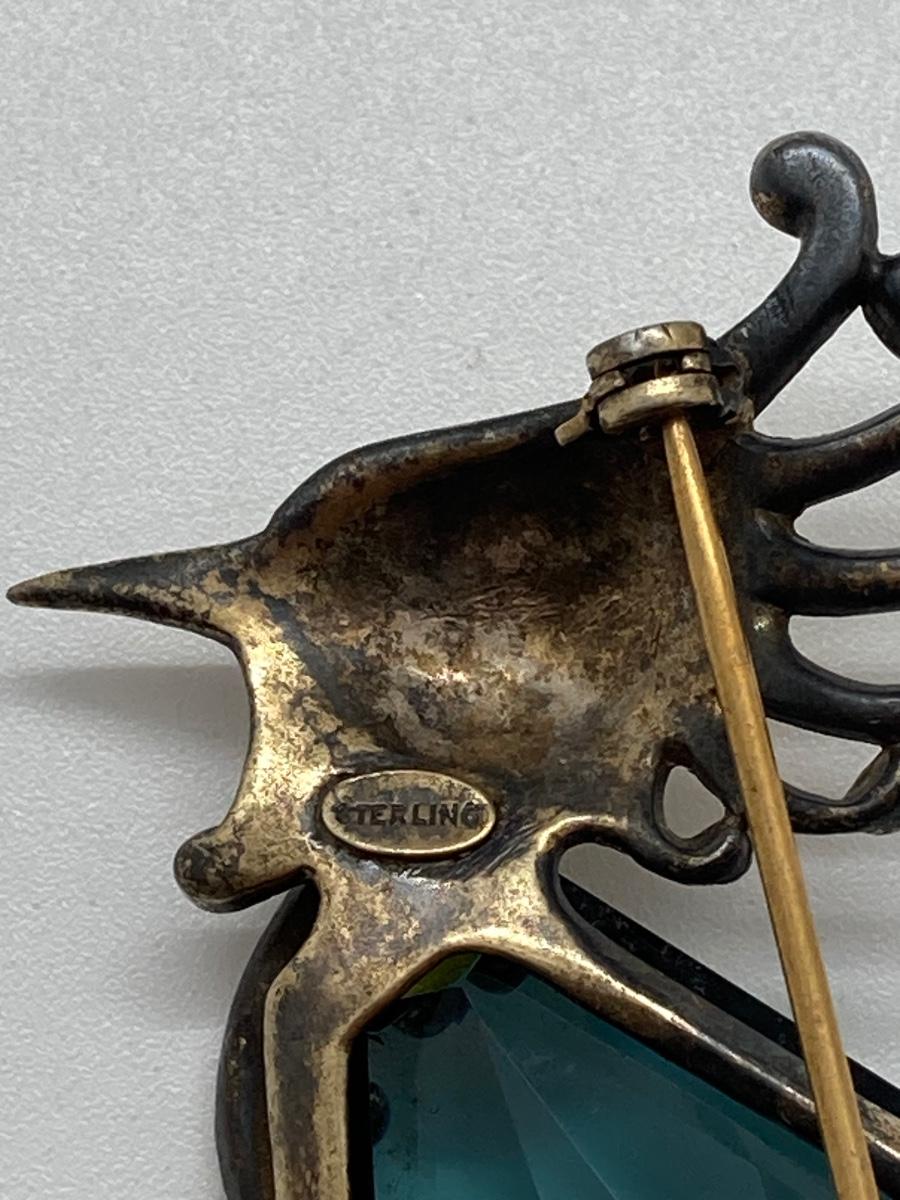 LOT 24J: Beveled Glass Peacock Sterling Silver Pin