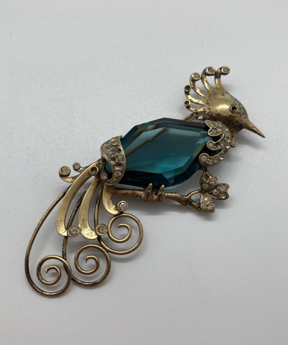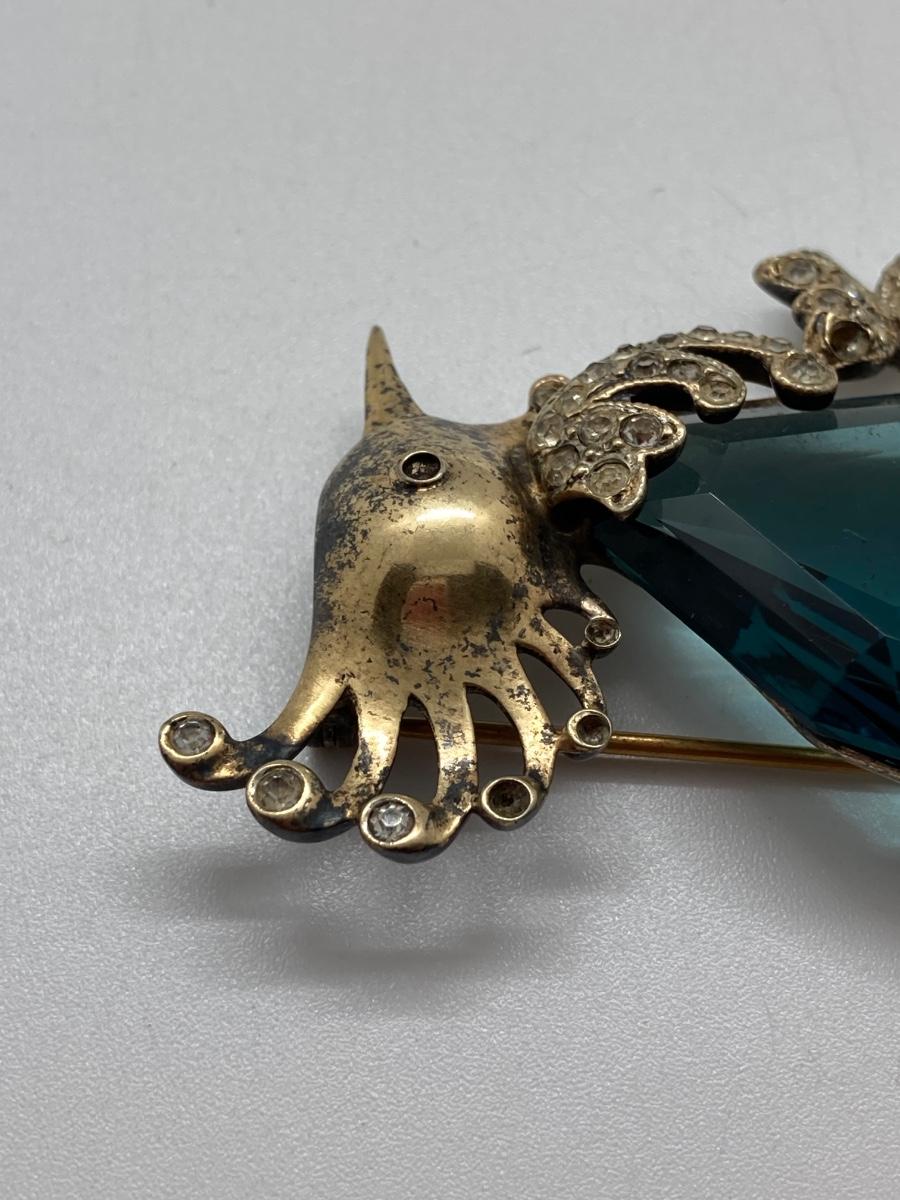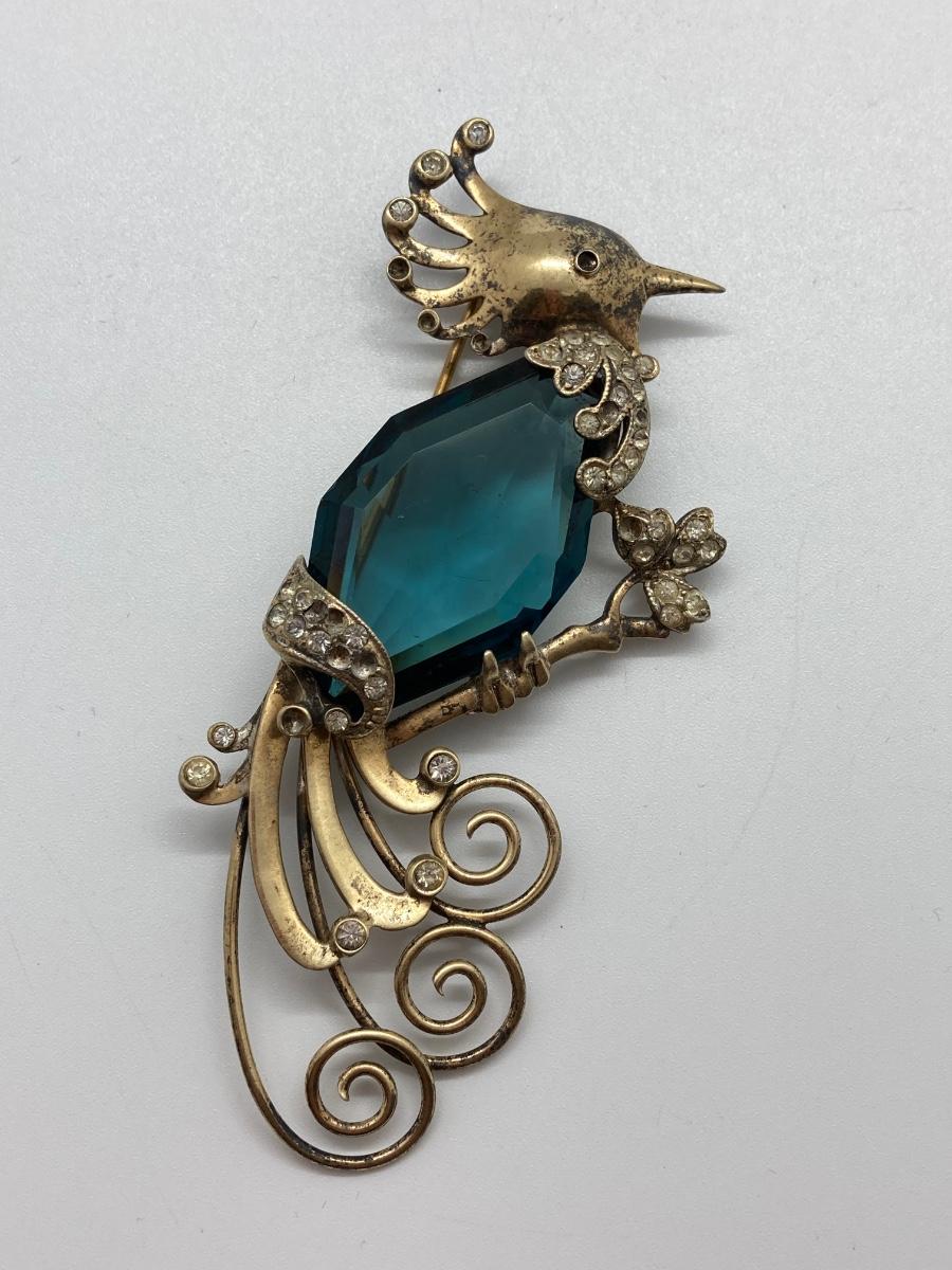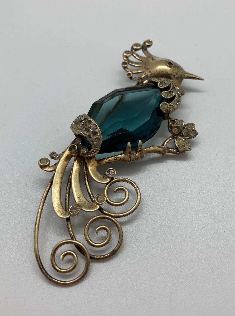 LOT 24J: Beveled Glass Peacock Sterling Silver Pin