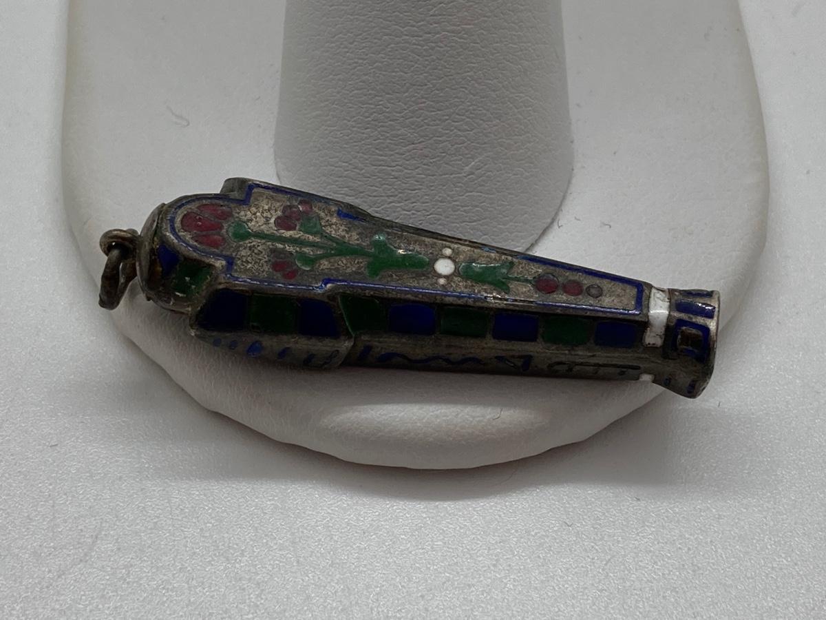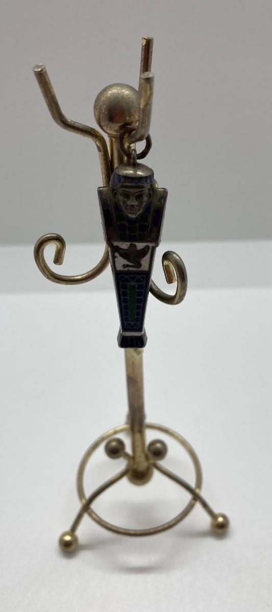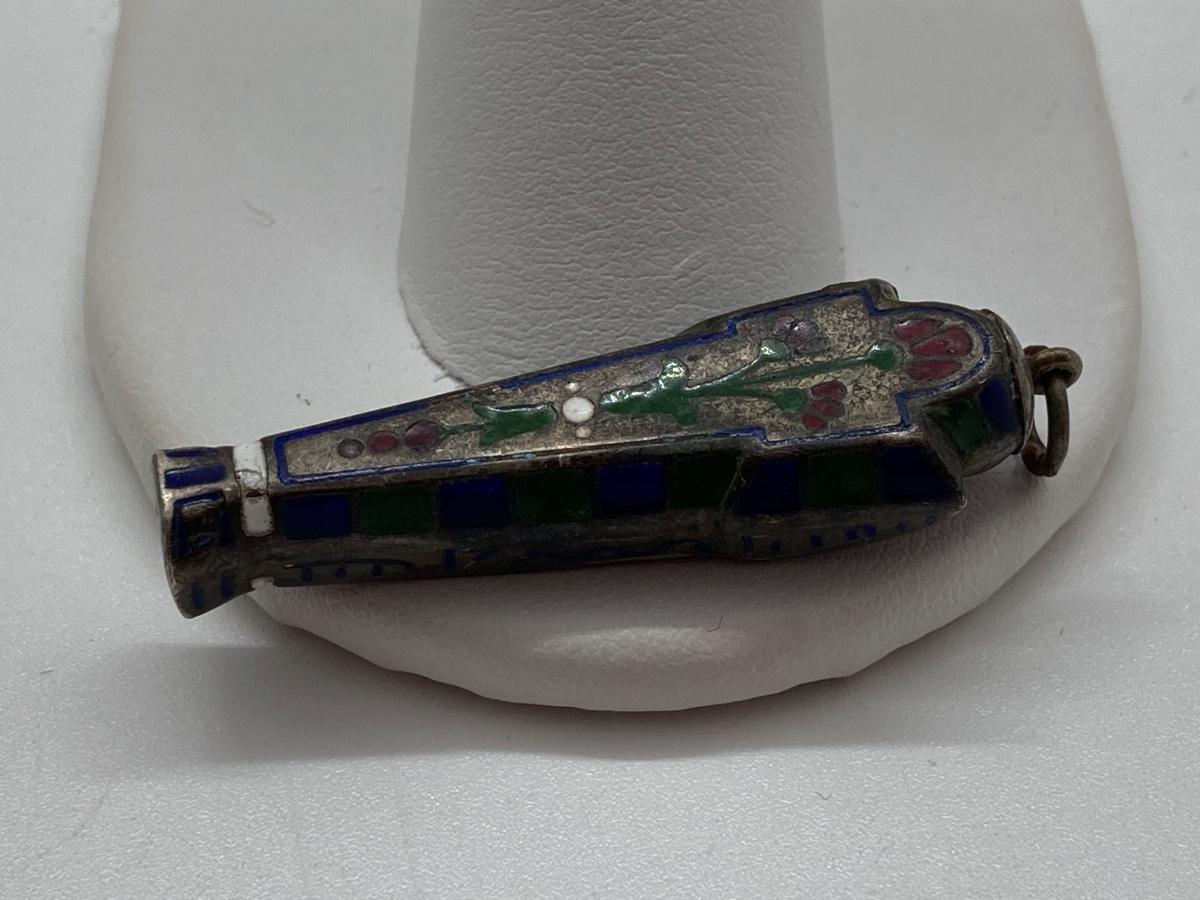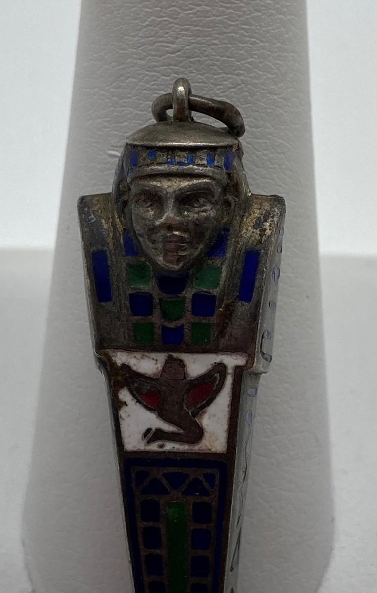 LOT 29J: Egyptian Revival Sterling Silver and Enamel Sarcophagus Pendant
