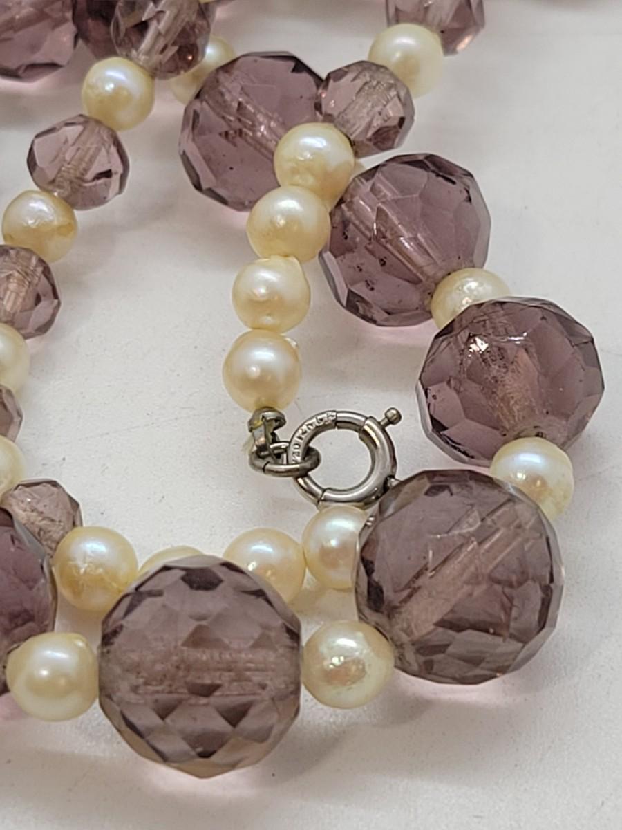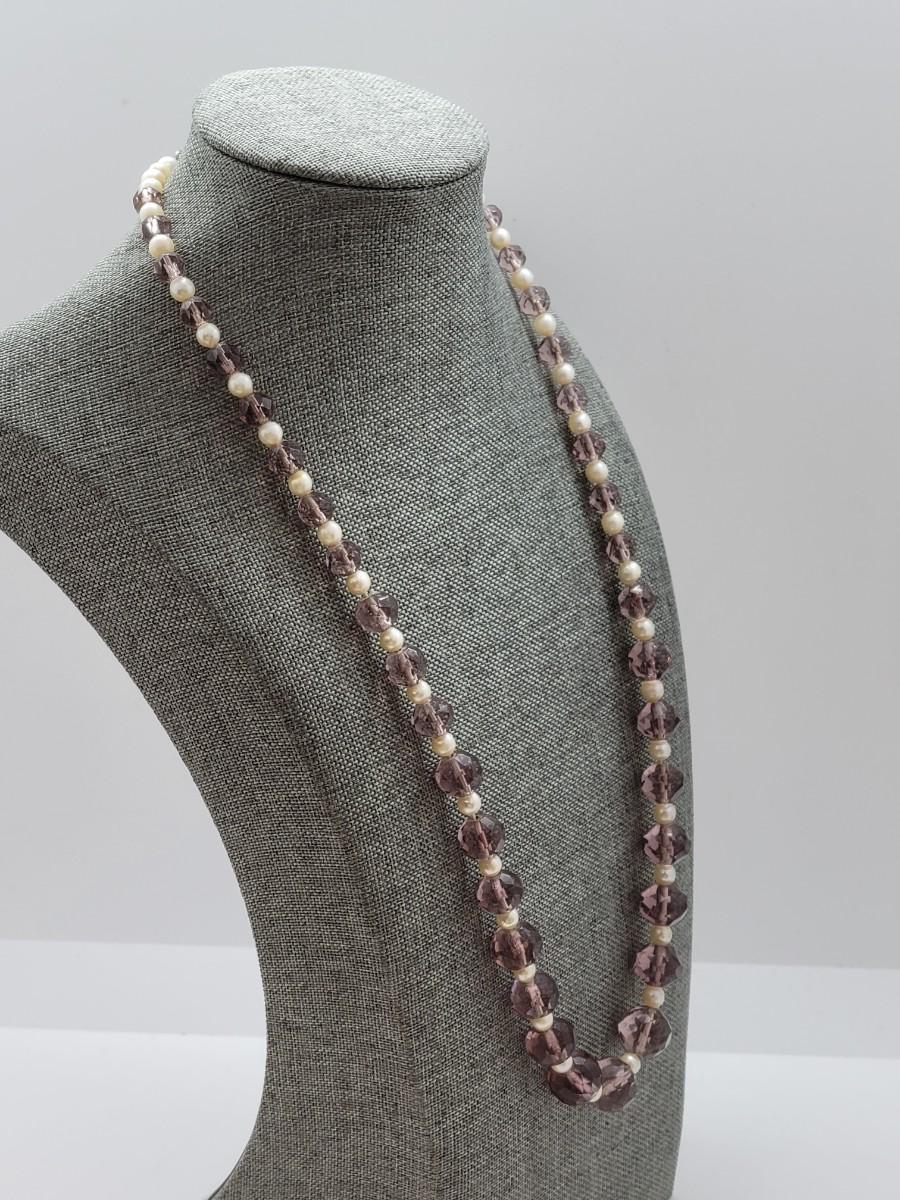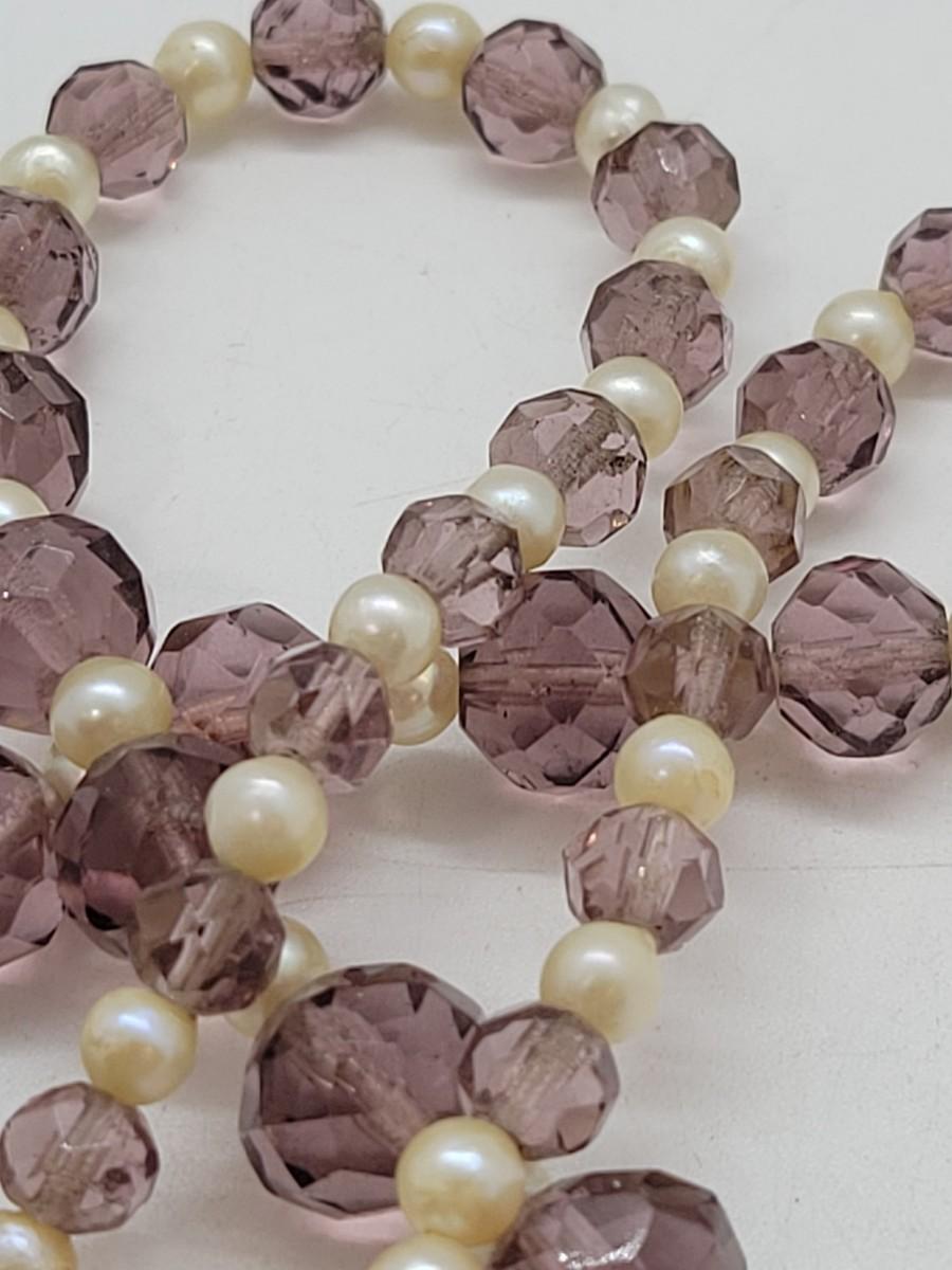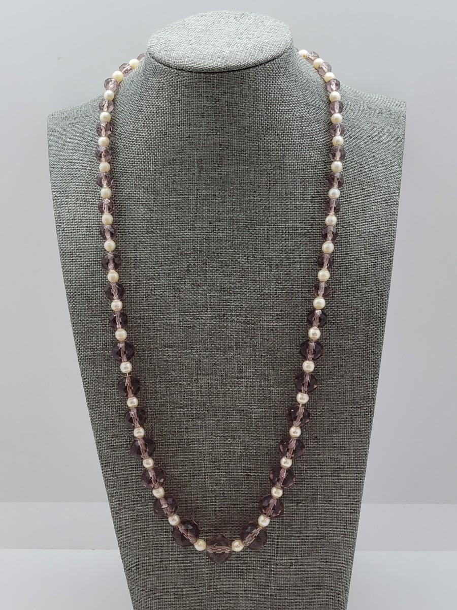 LOT 30: Vintage Amethyst Crystal & Faux Pearl Necklace - 23"L - 1/20th 14K Gold-filled Clasp