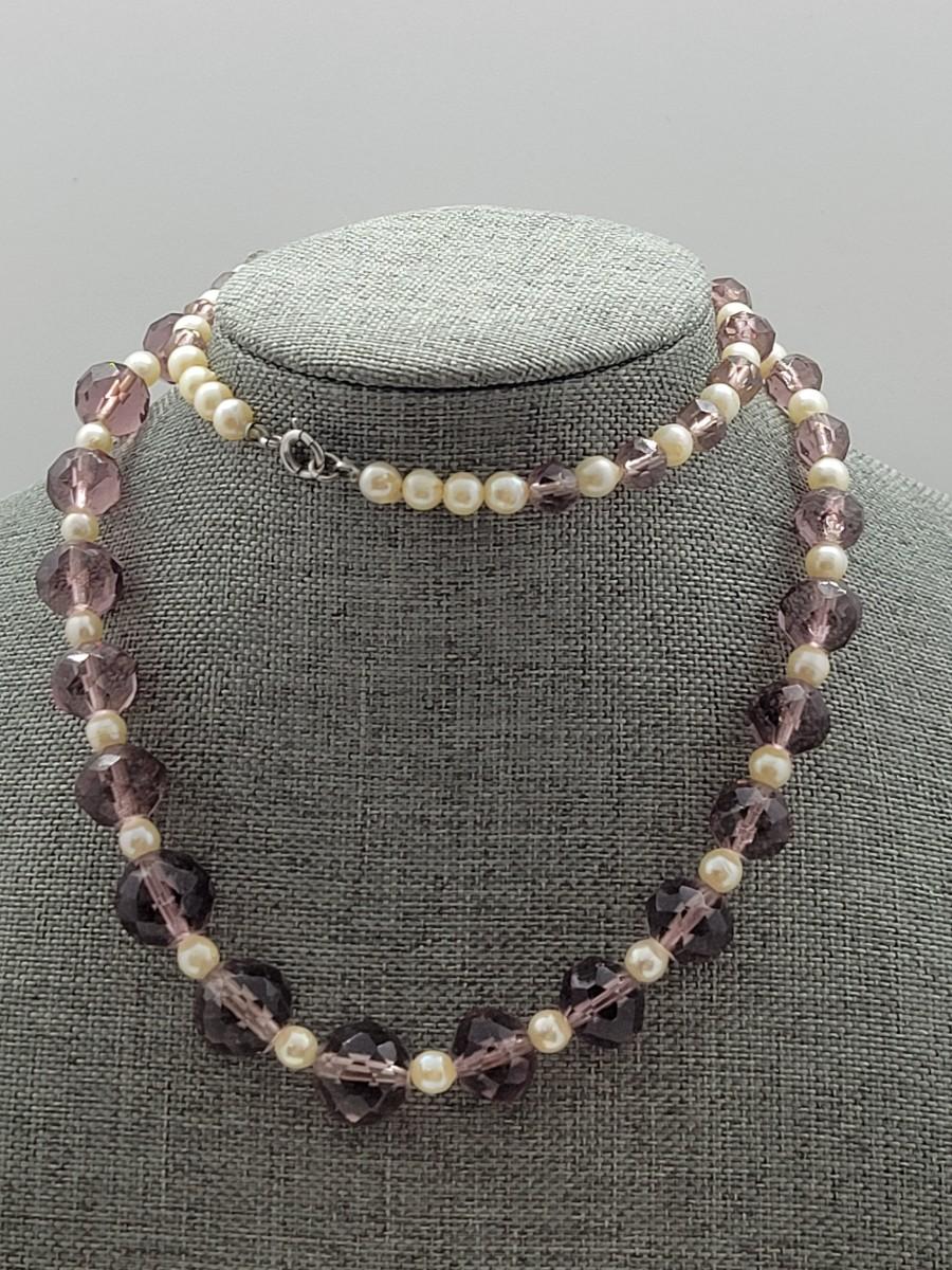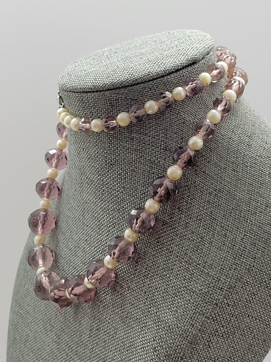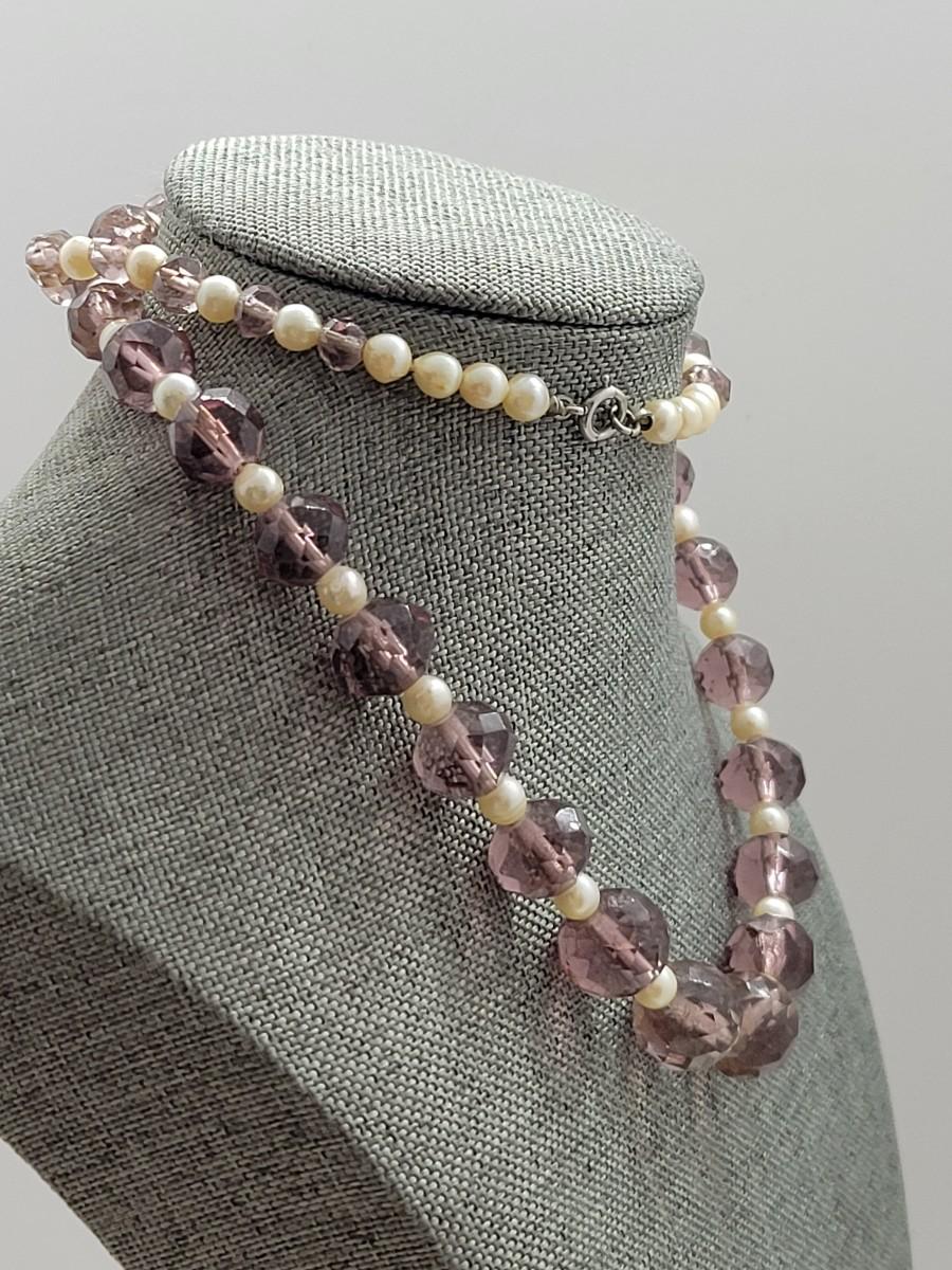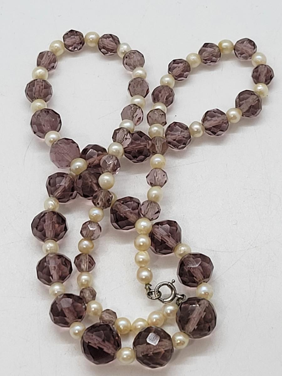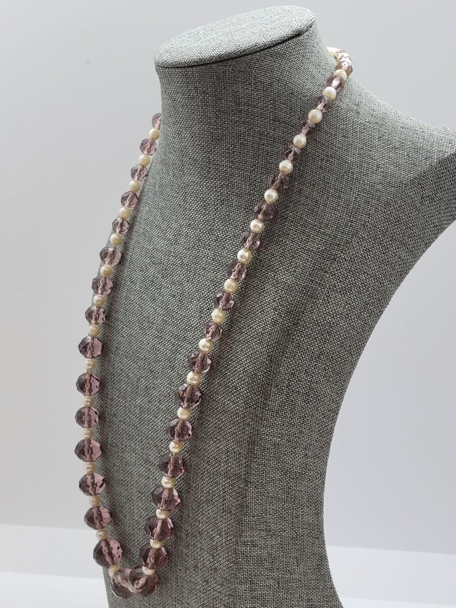 LOT 30: Vintage Amethyst Crystal & Faux Pearl Necklace - 23"L - 1/20th 14K Gold-filled Clasp