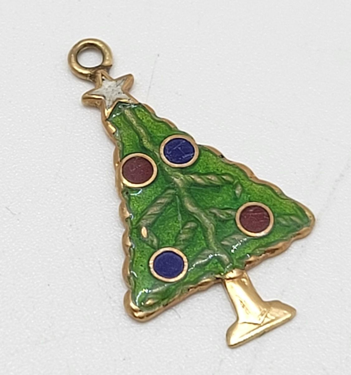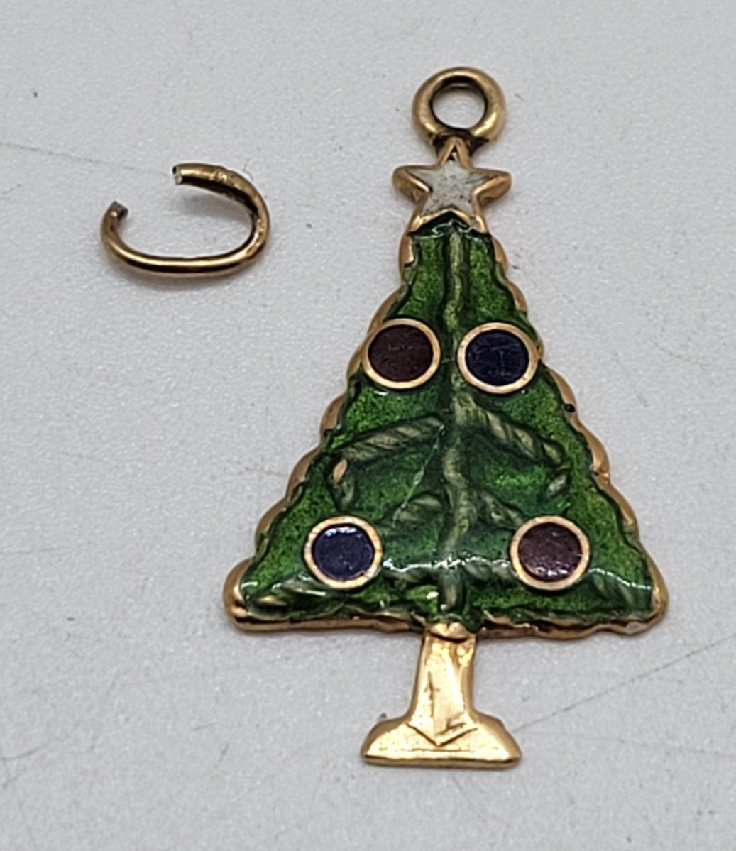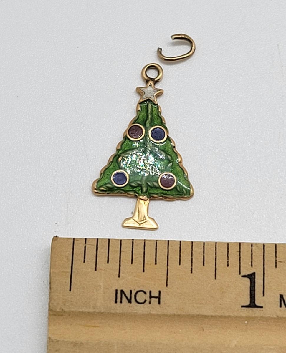 LOT 41: 14K Gold Enamel Christmas Tree Charm - TW 1.40g