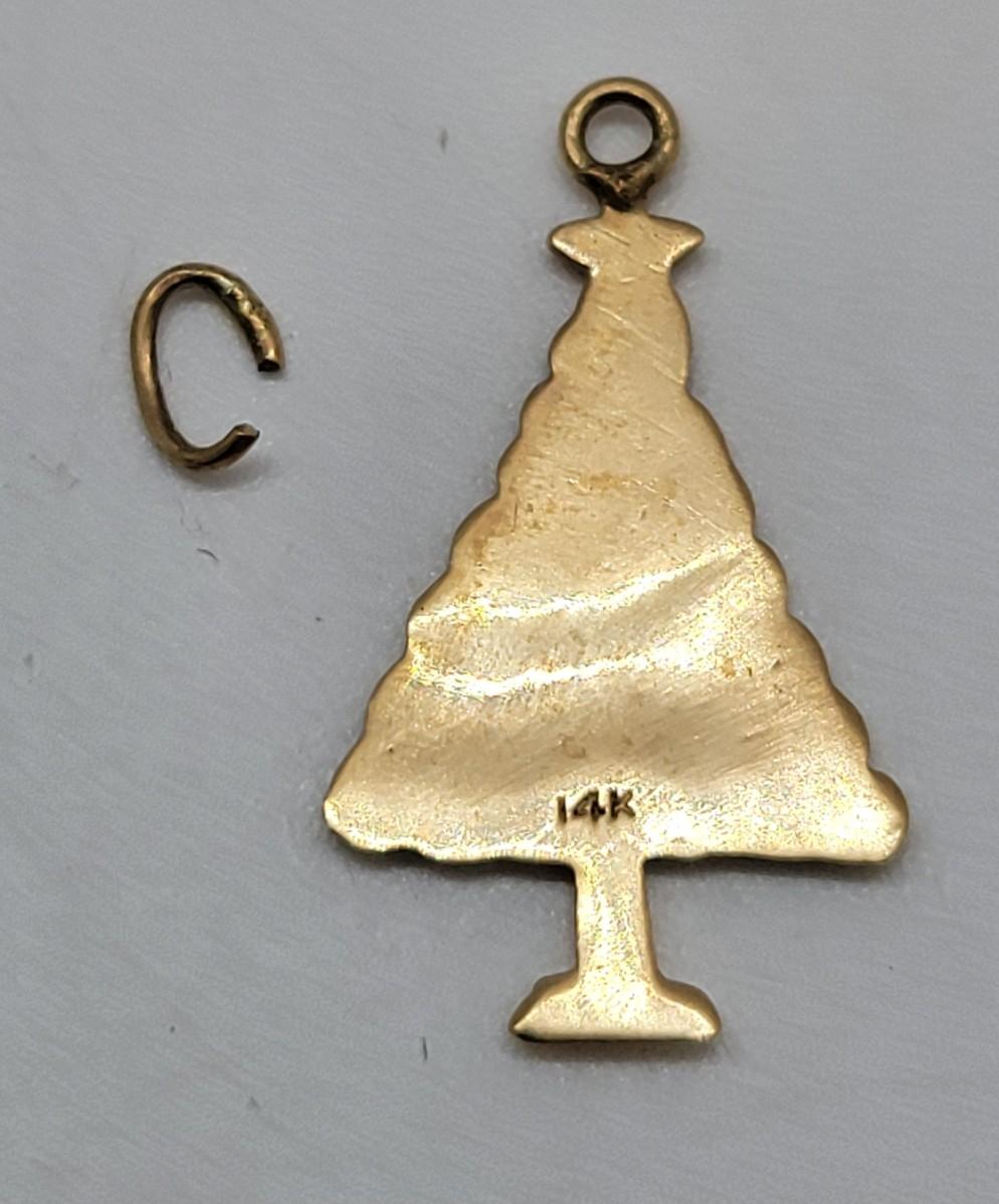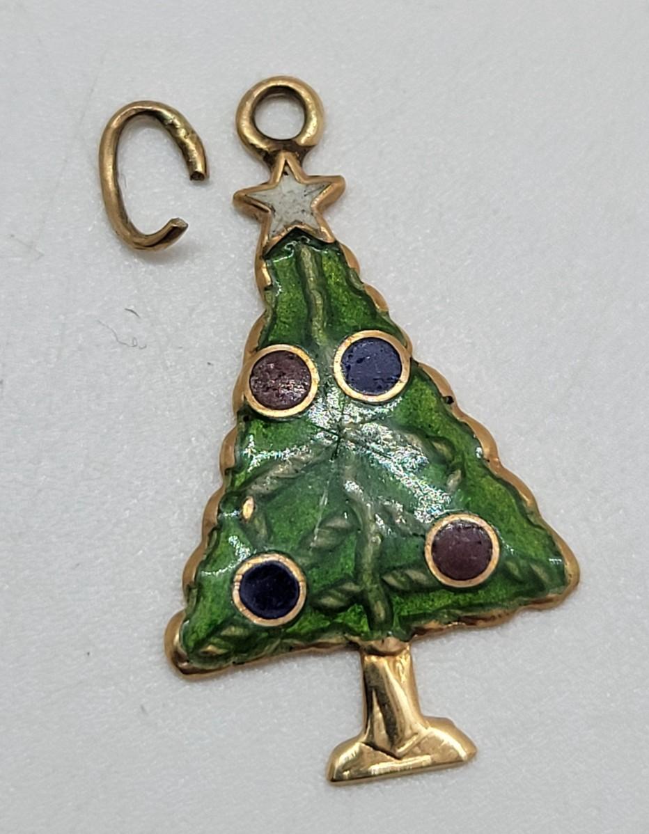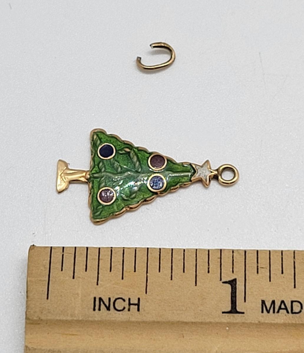 LOT 41: 14K Gold Enamel Christmas Tree Charm - TW 1.40g