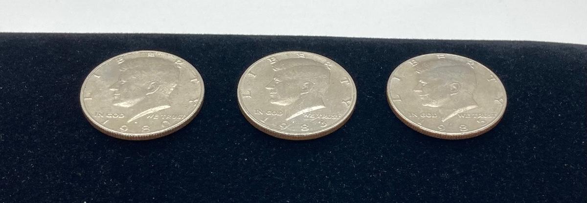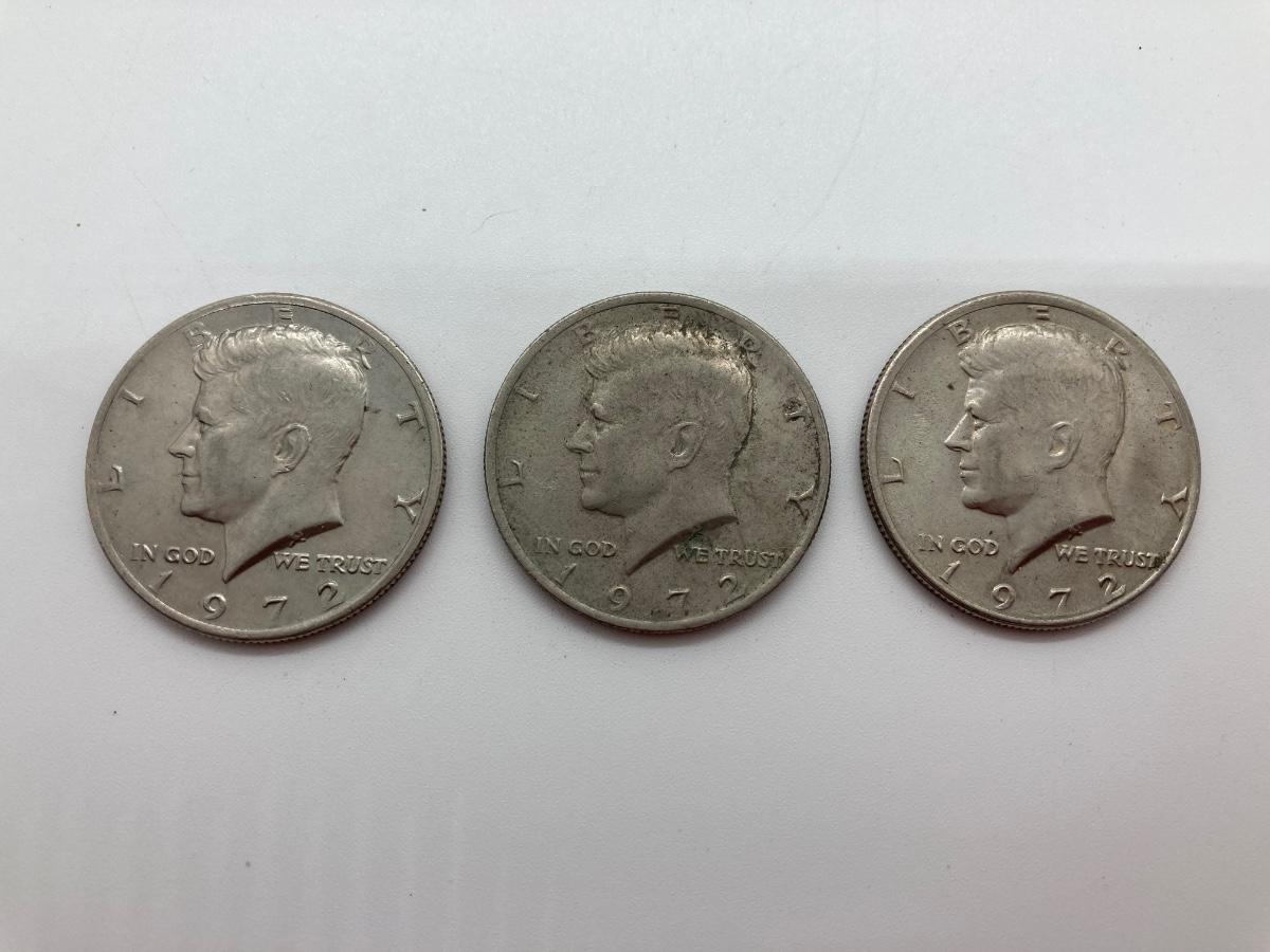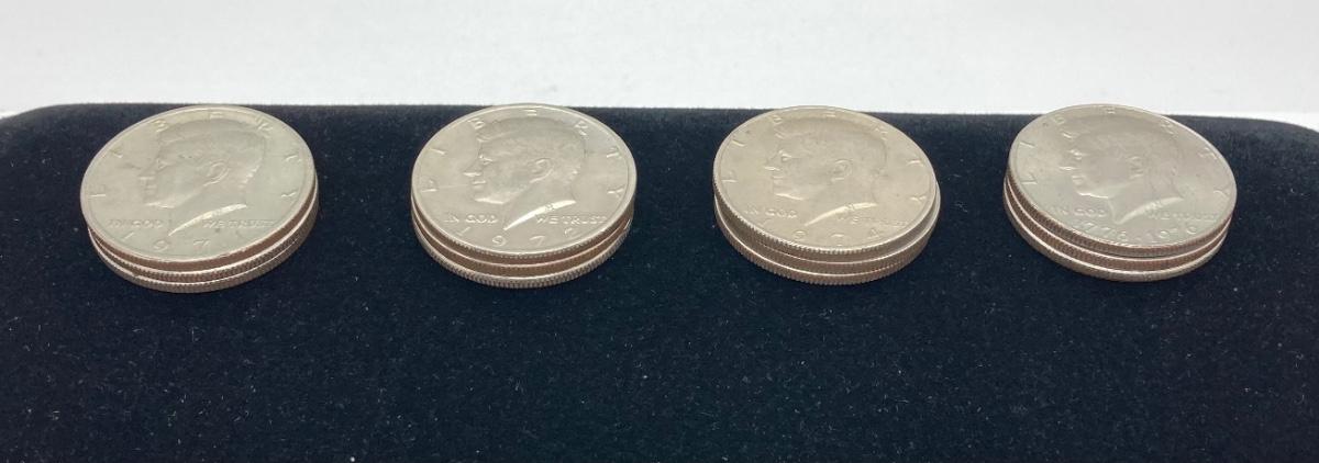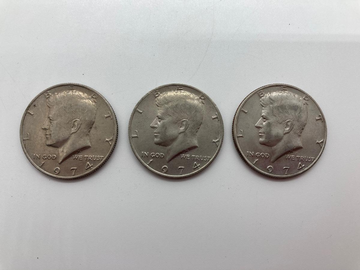 Collection includes: 15 Kennedy Half Dollars - (Three) 1971, (Three) 1972, (Three) 1974, (Three) 1776-1976, (One) 1980, (One) 1983, (One) 1985, (One) 1979 Susan B Anthony $1 Coin and (One) Official American Revolution Bicentennial Medal.