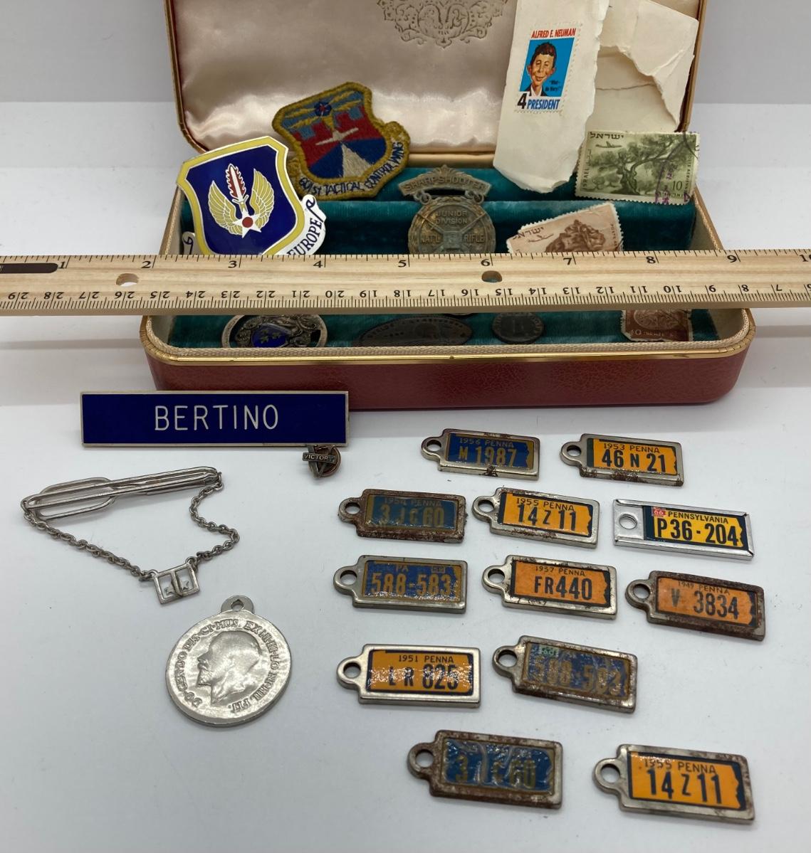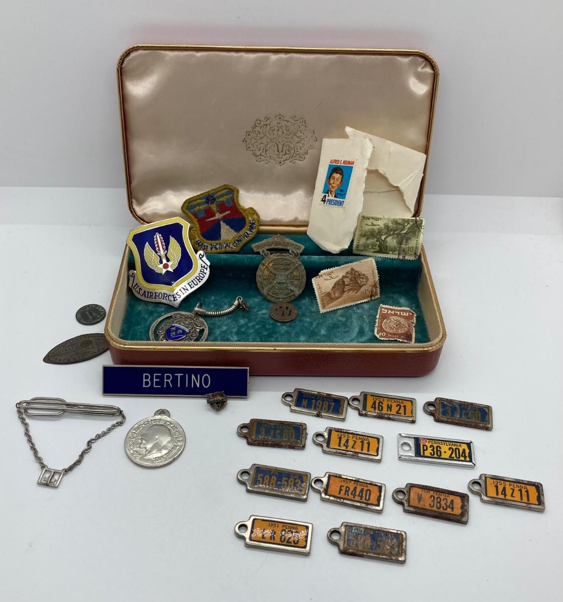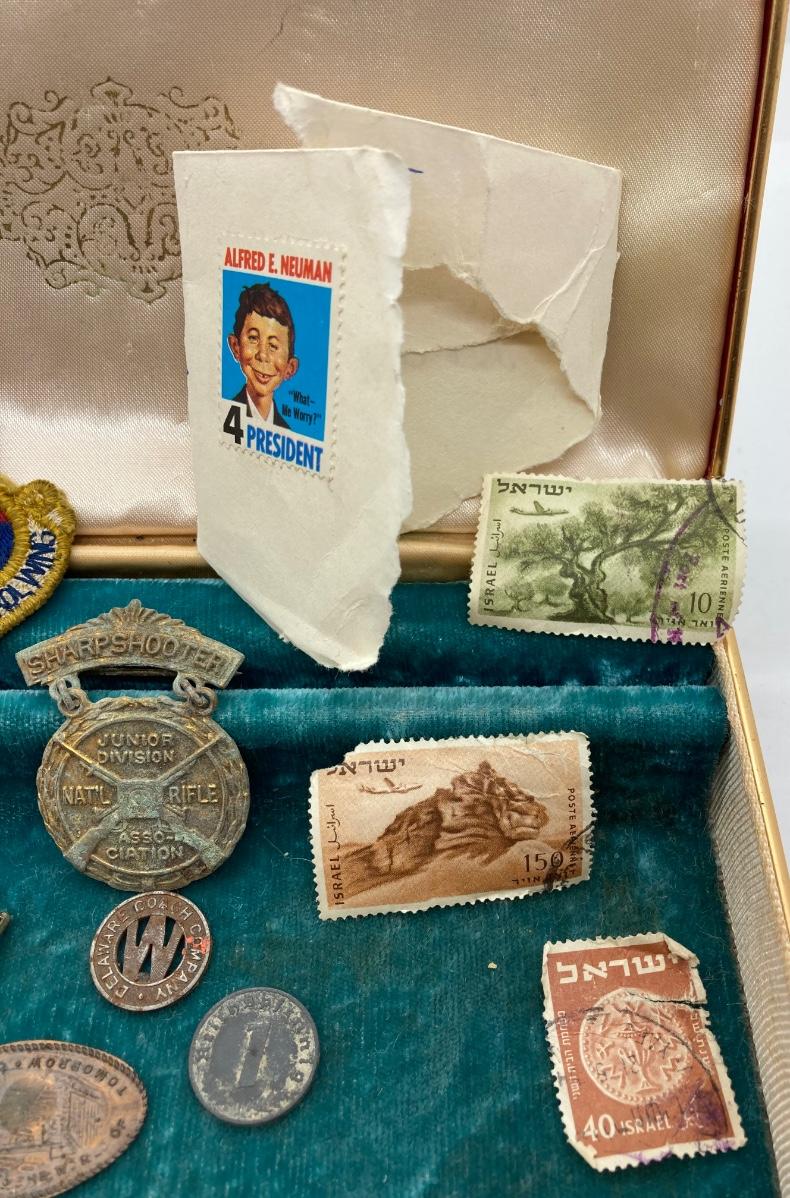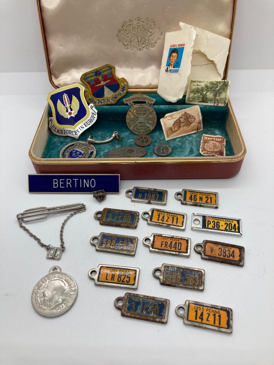 LOT 58J: Vintage Military, Medals, Stamps, Keepsakes and More
