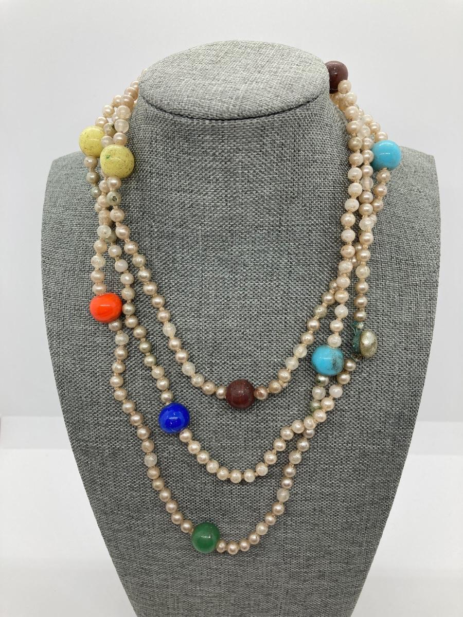 LOT 98J: Vintage Pearl and Bead Necklace 25 inch
