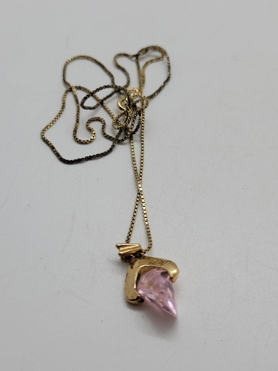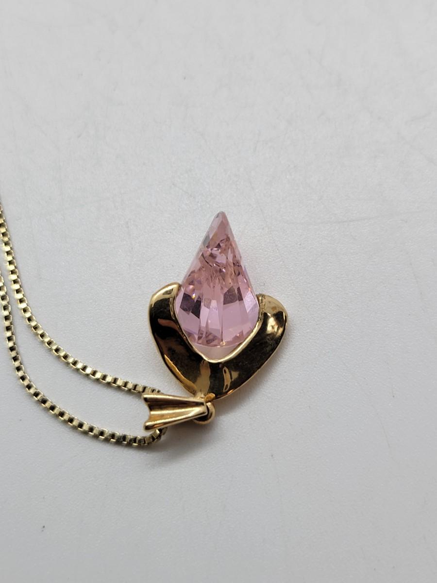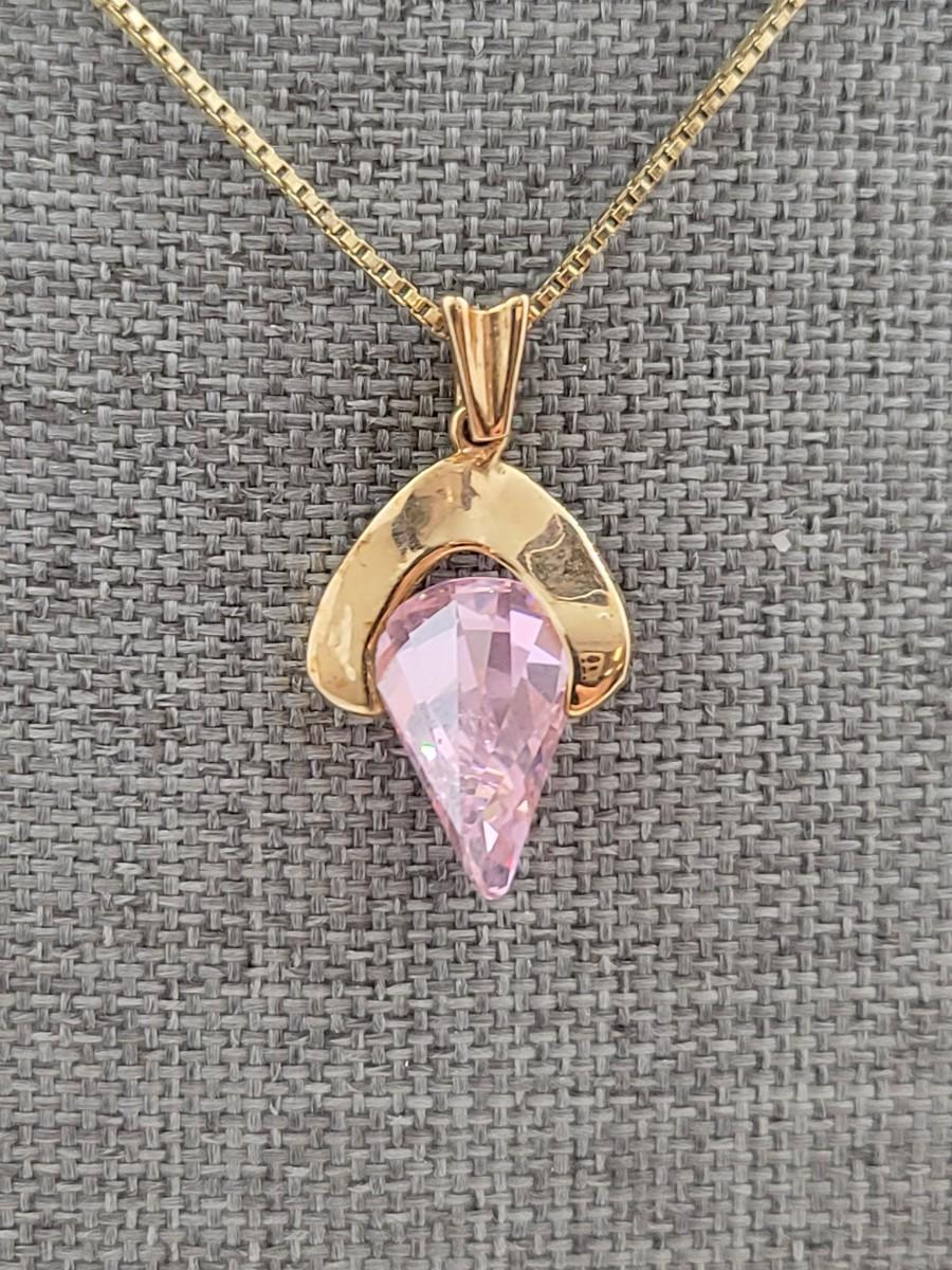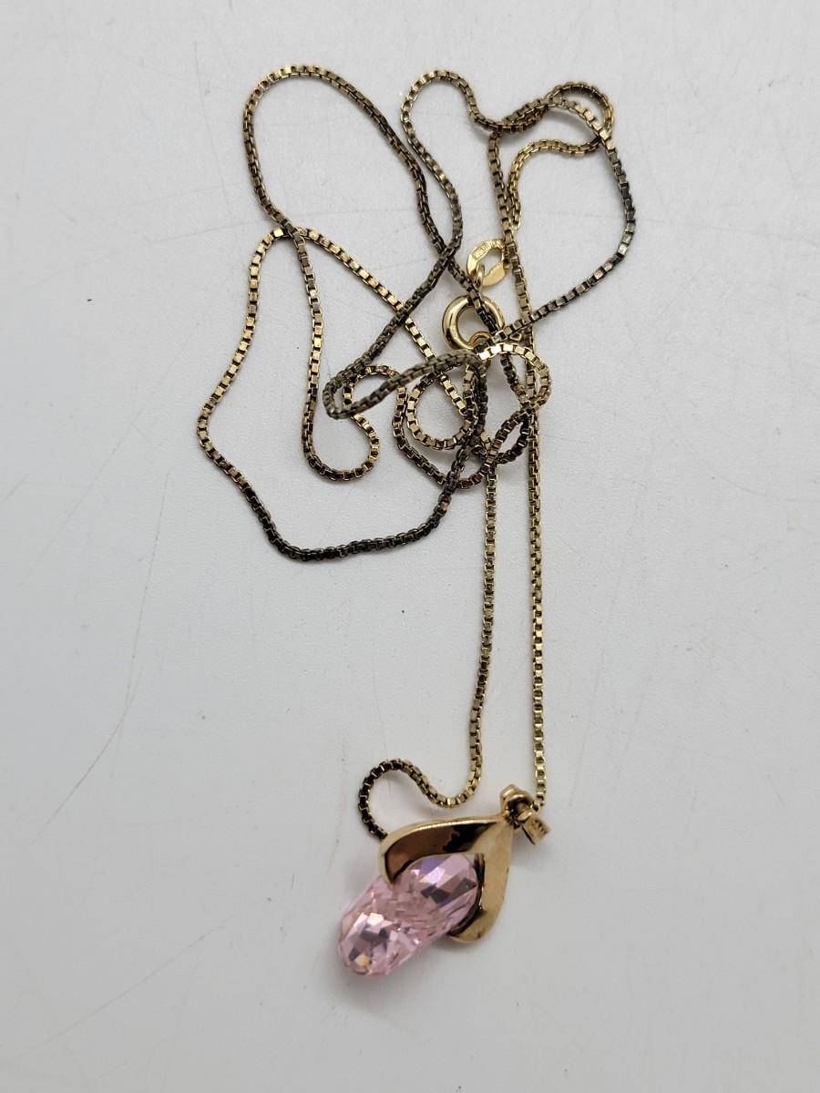 LOT 99: Gold Tone Crystal Pendant on 23" Gold Vermeil Sterling Chain