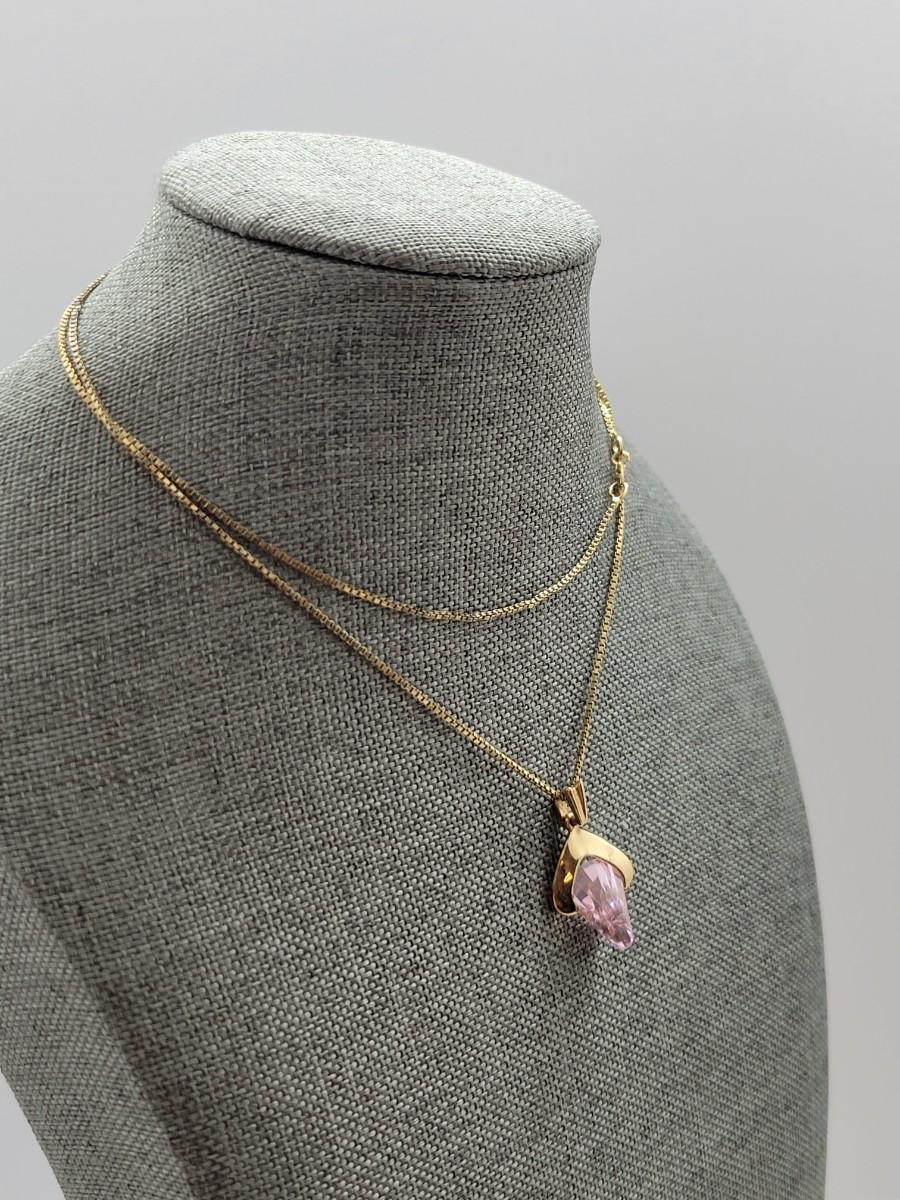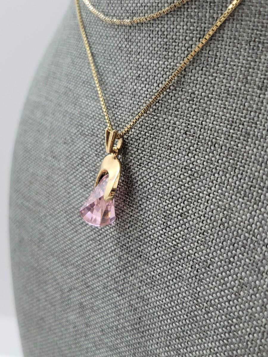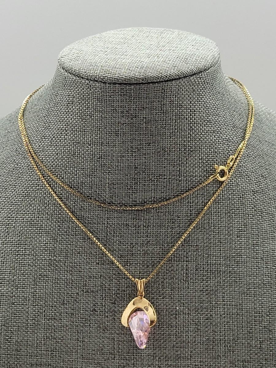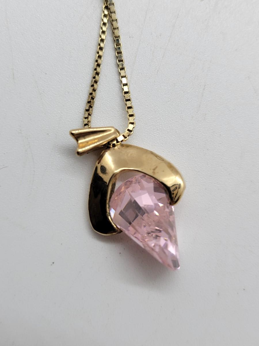 LOT 99: Gold Tone Crystal Pendant on 23" Gold Vermeil Sterling Chain