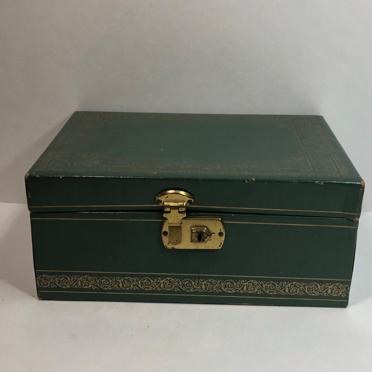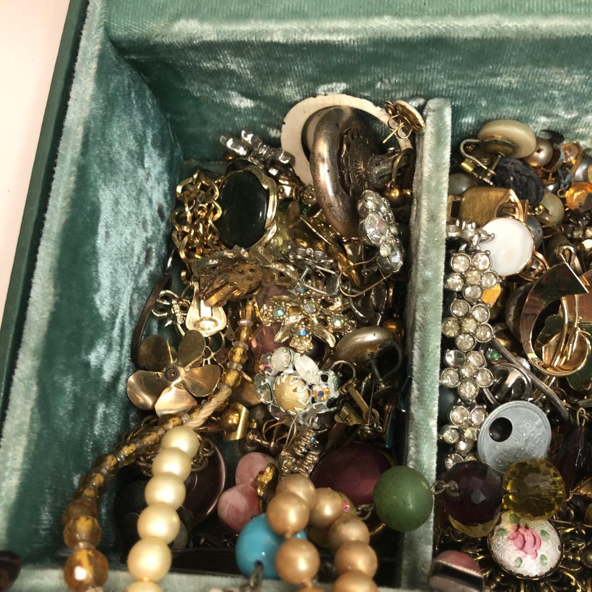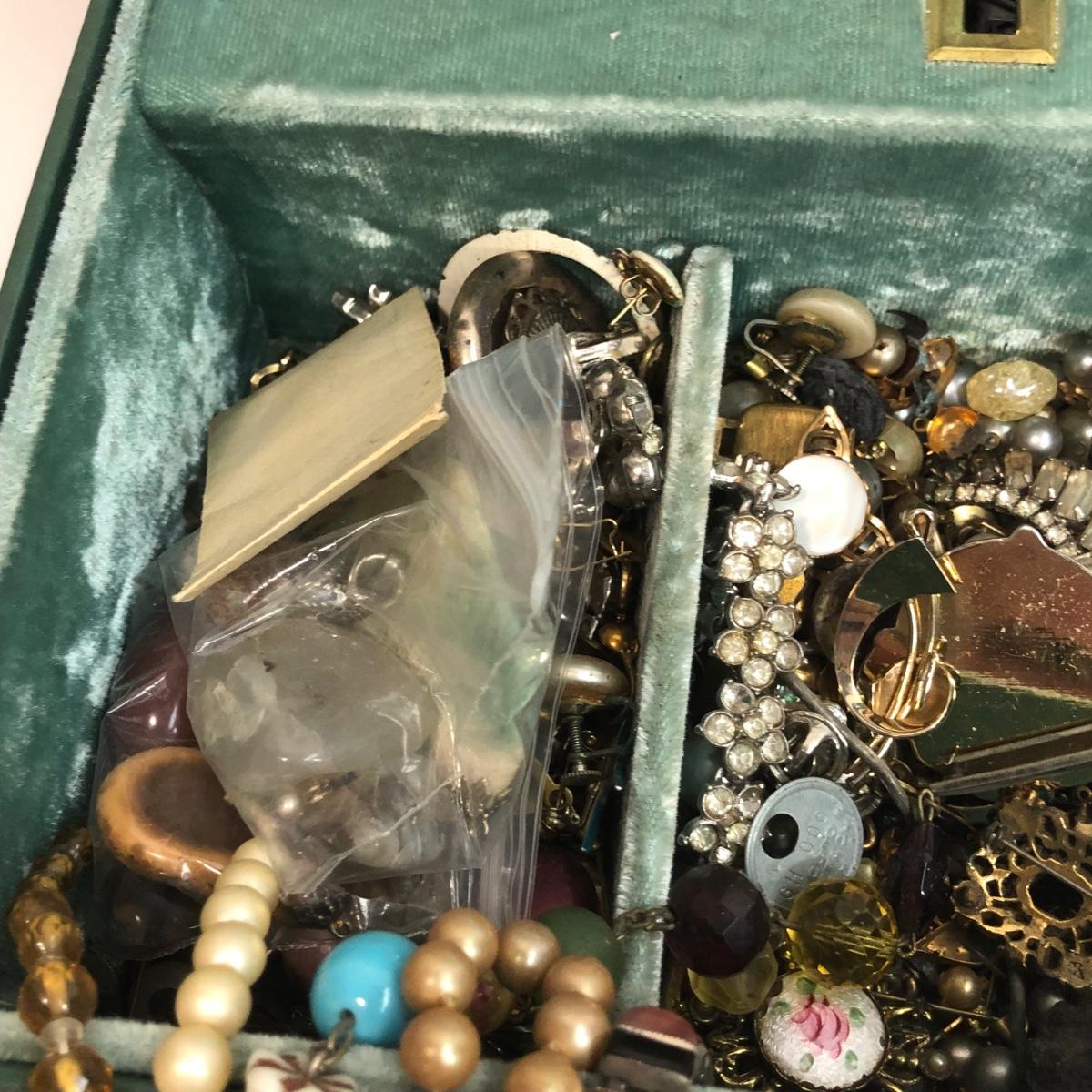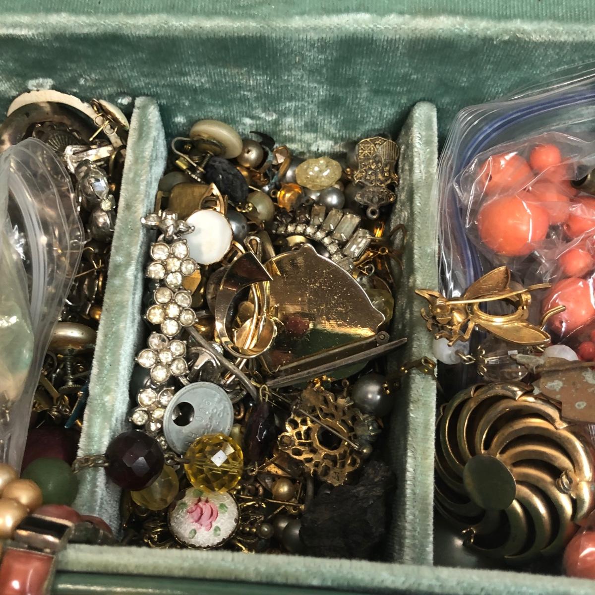 LOT 102: Vintage Jewelry Box w/ Mixed Jewelry & Crafting Pieces
