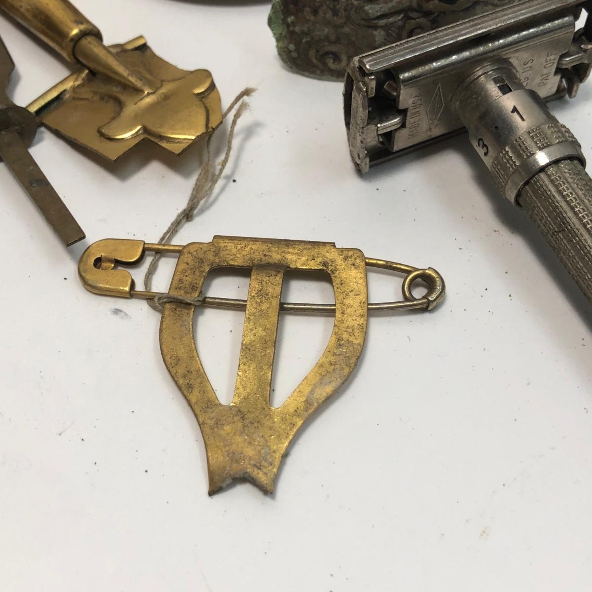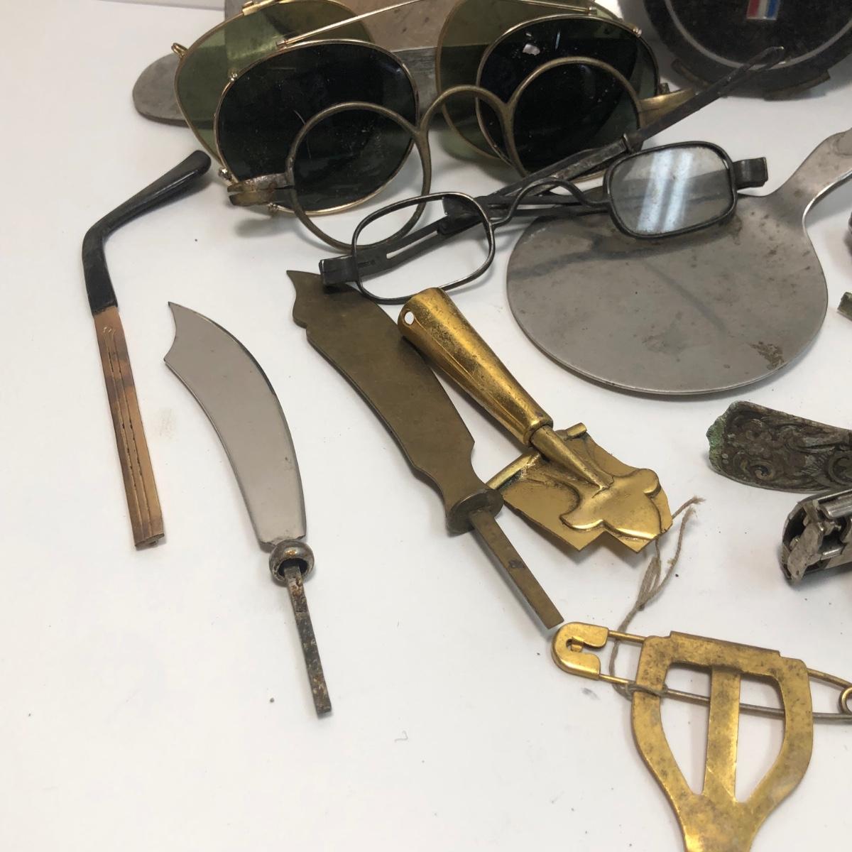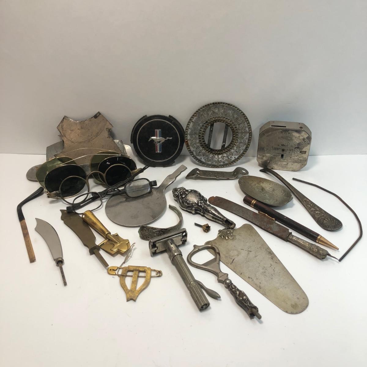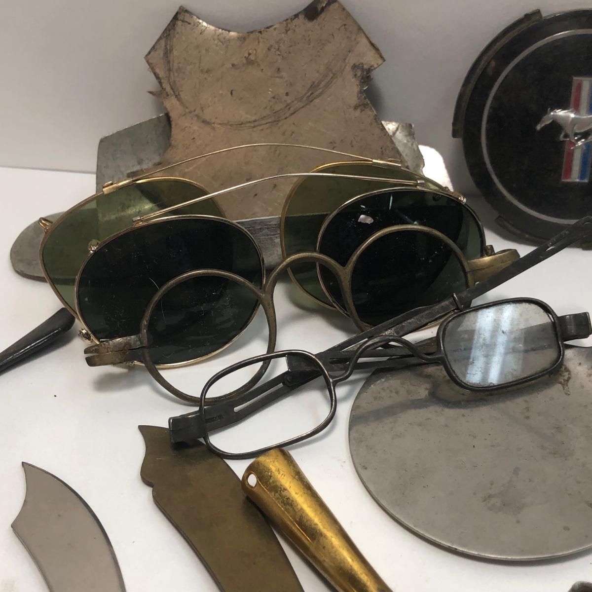 LOT 109: Junk Drawer Finds - Glasses, Vintage Razor, Car Emblems & More